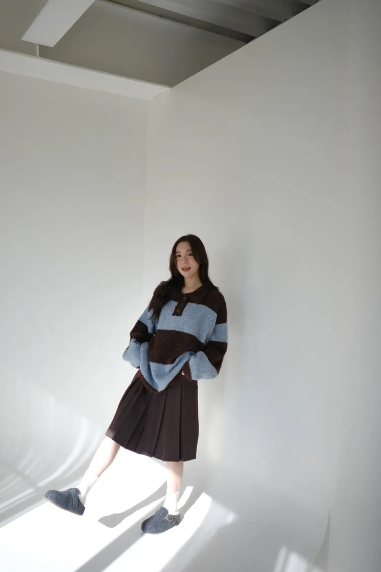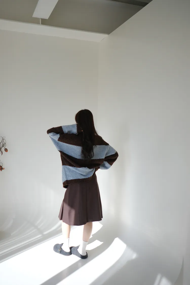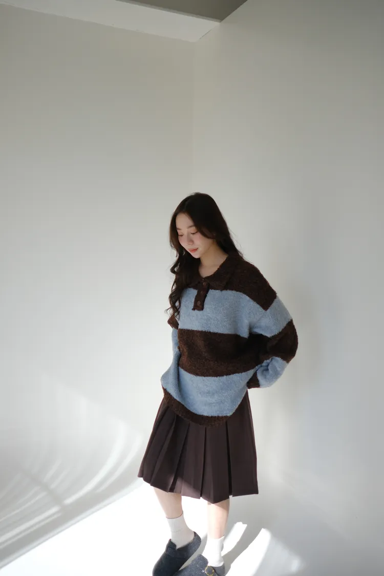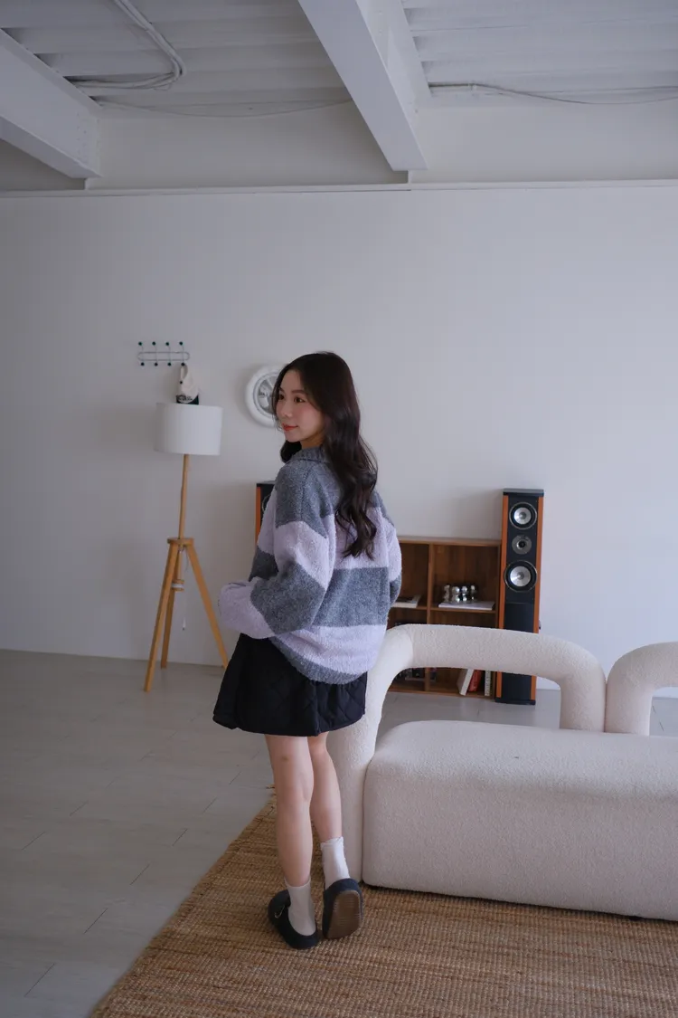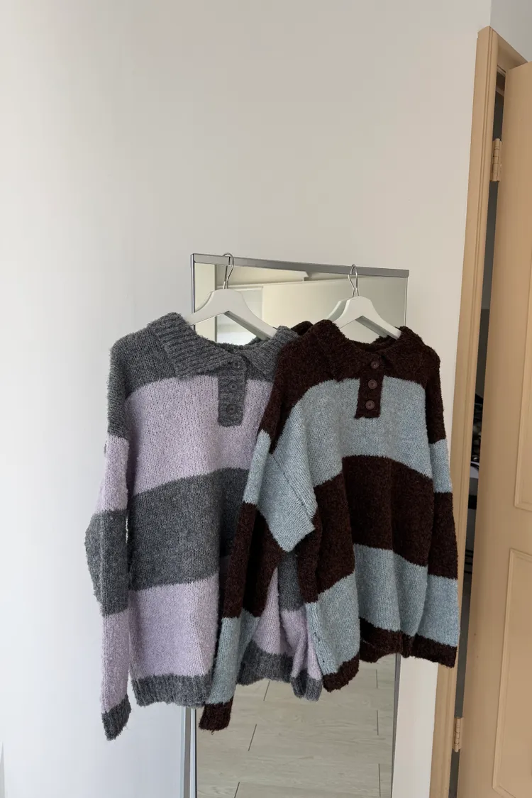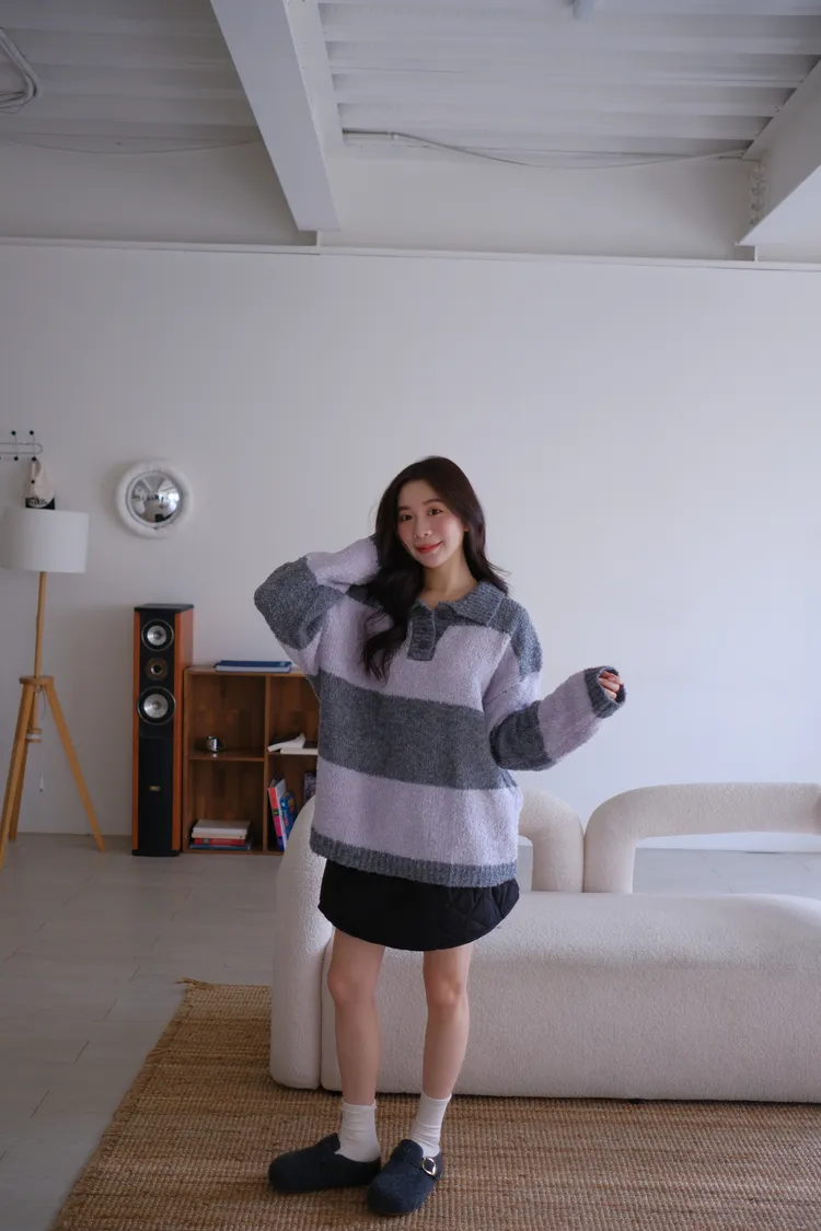 ふんわり日常撞色條紋毛衣