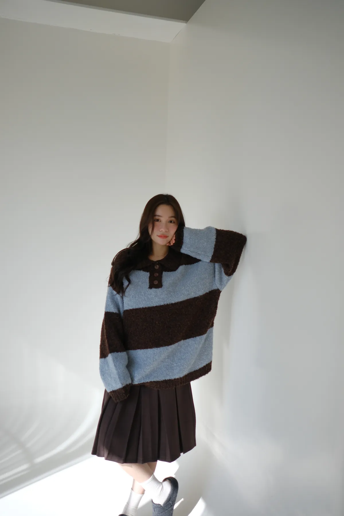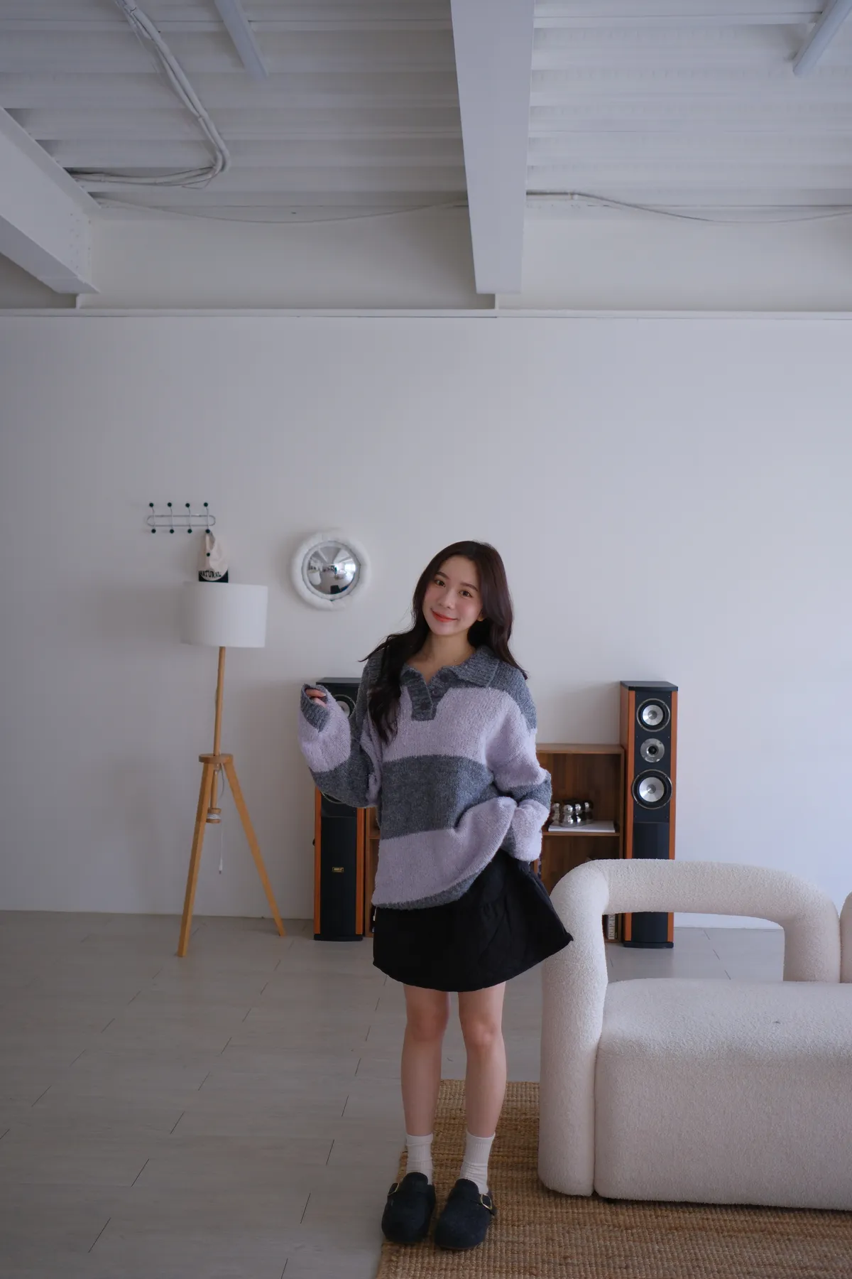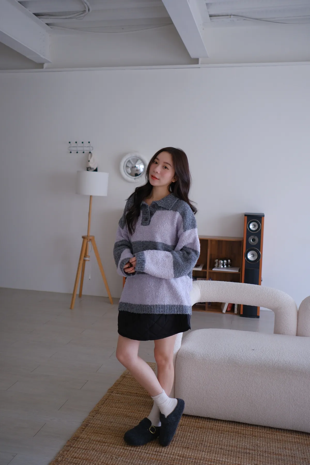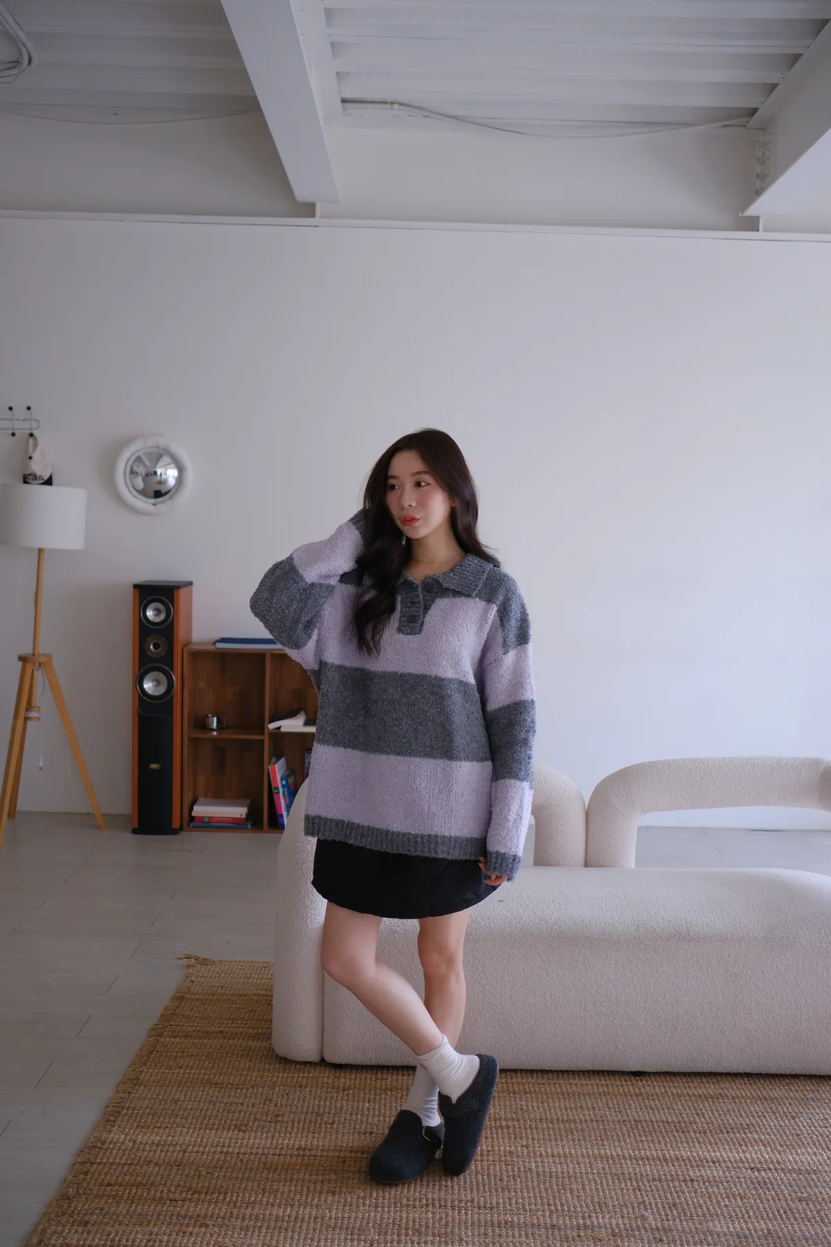 ふんわり日常撞色條紋毛衣