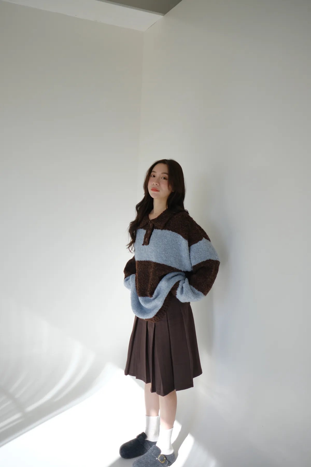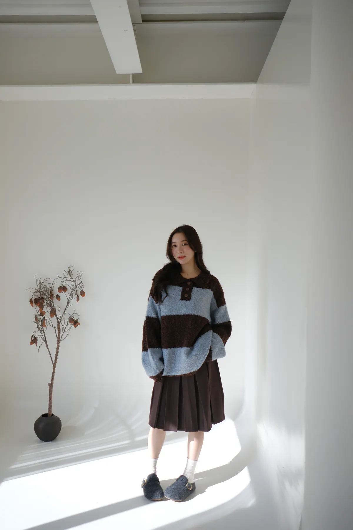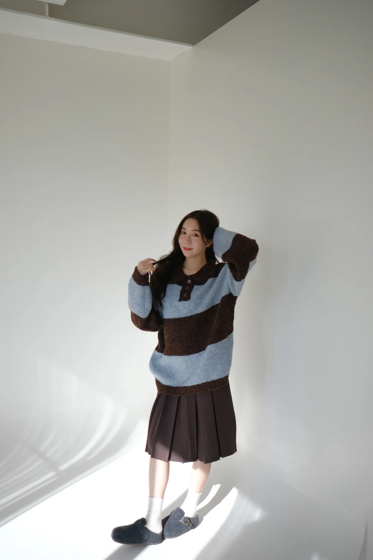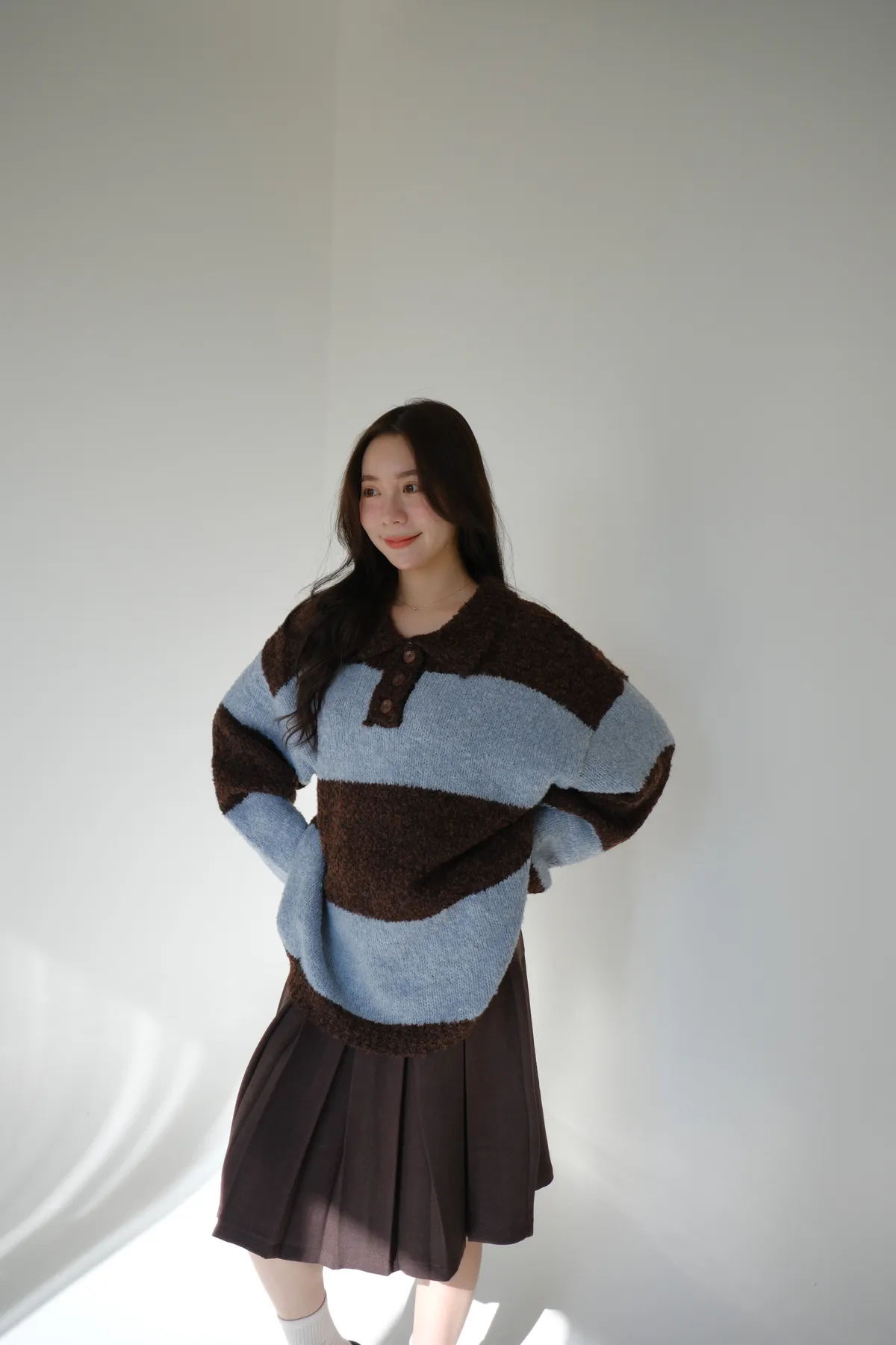 ふんわり日常撞色條紋毛衣