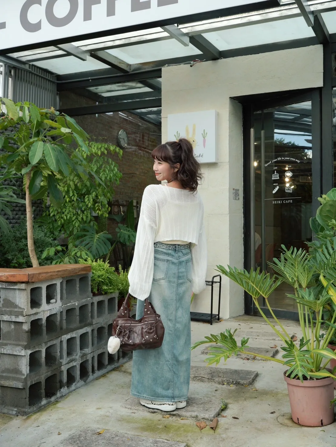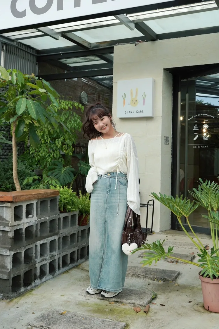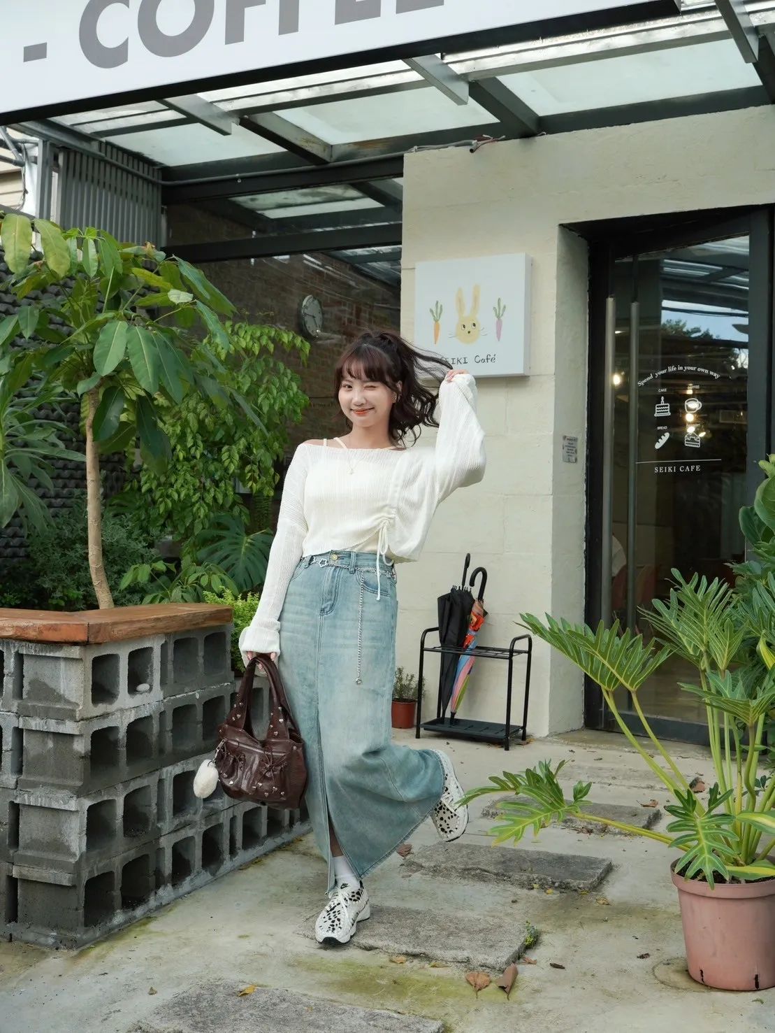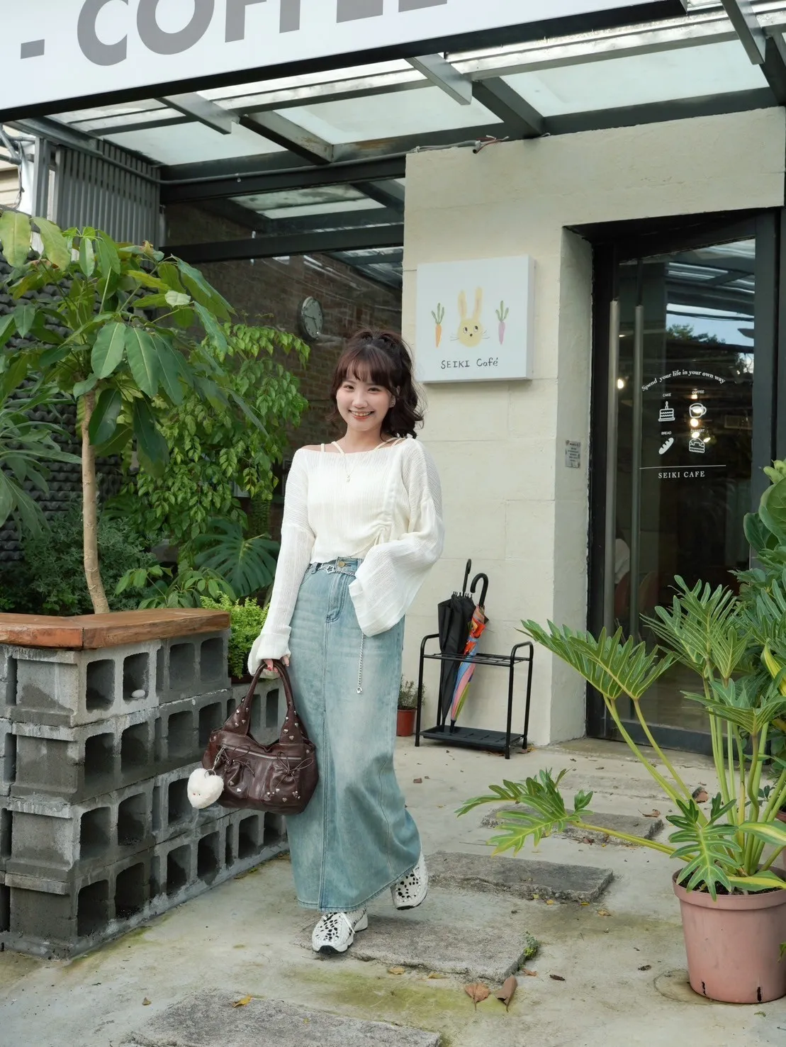 牛仔裙是 [闆娘摯愛超瘦復古感牛仔開衩裙 ]