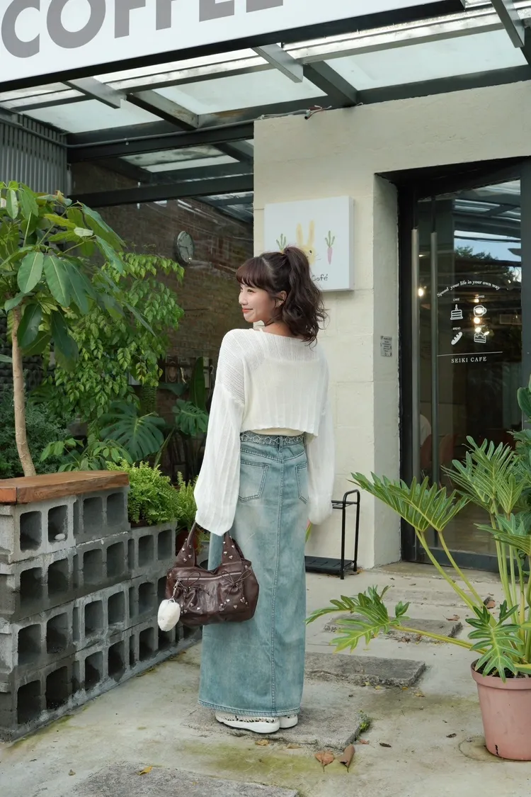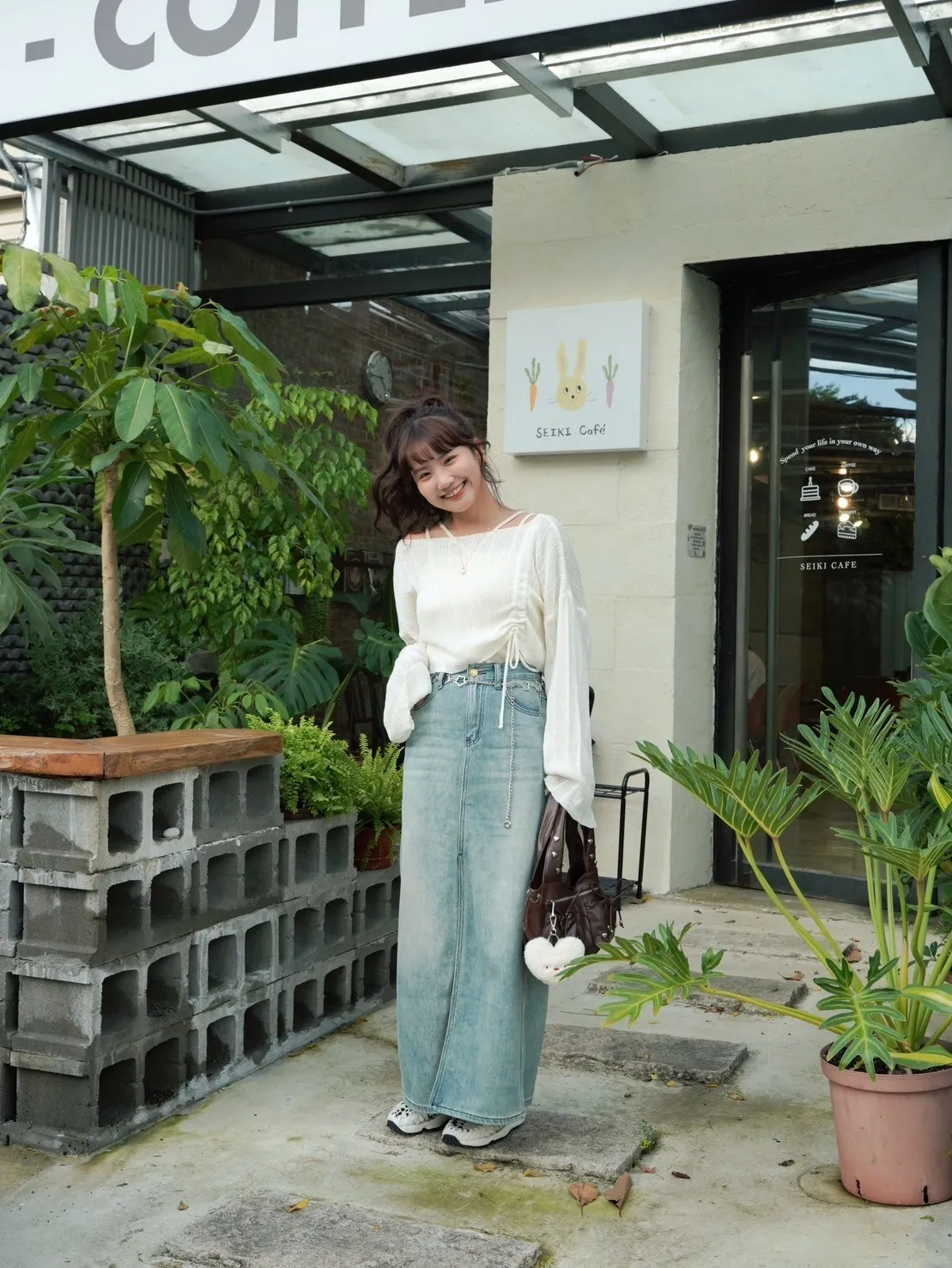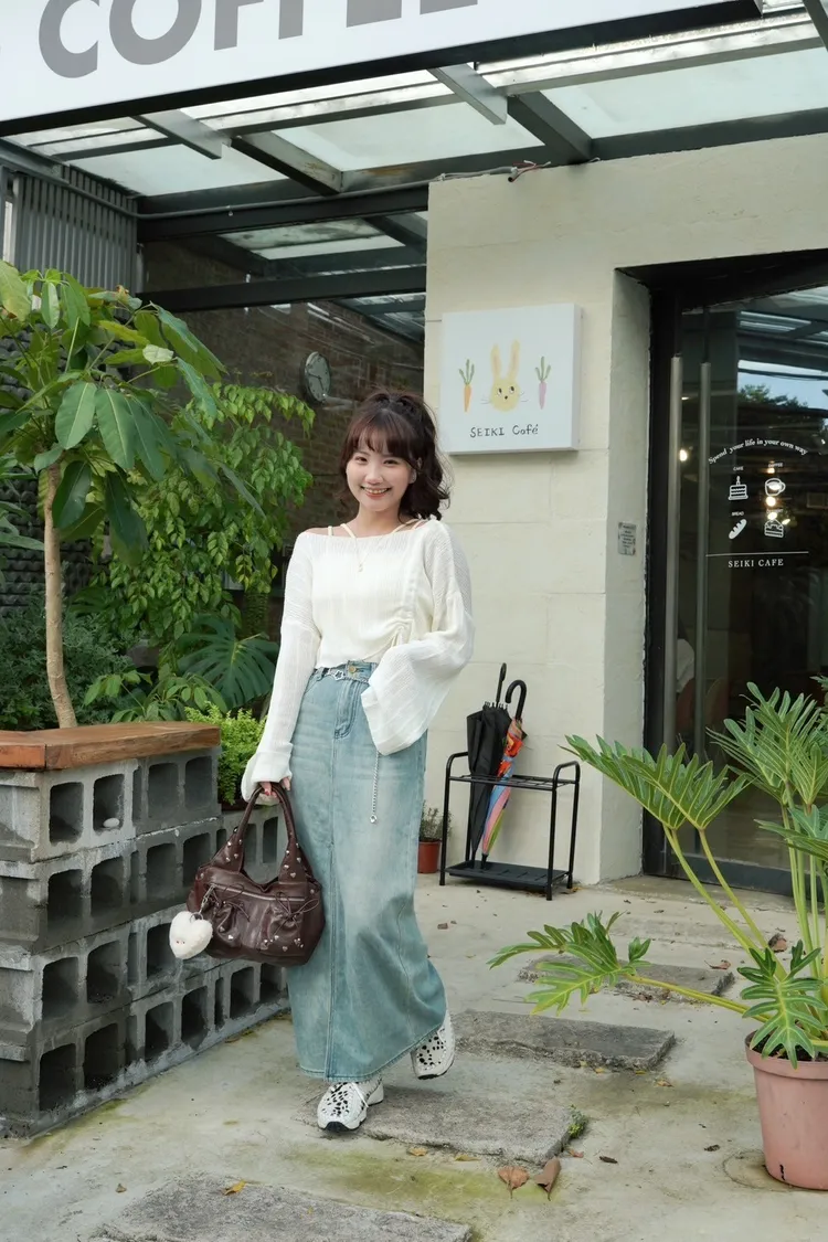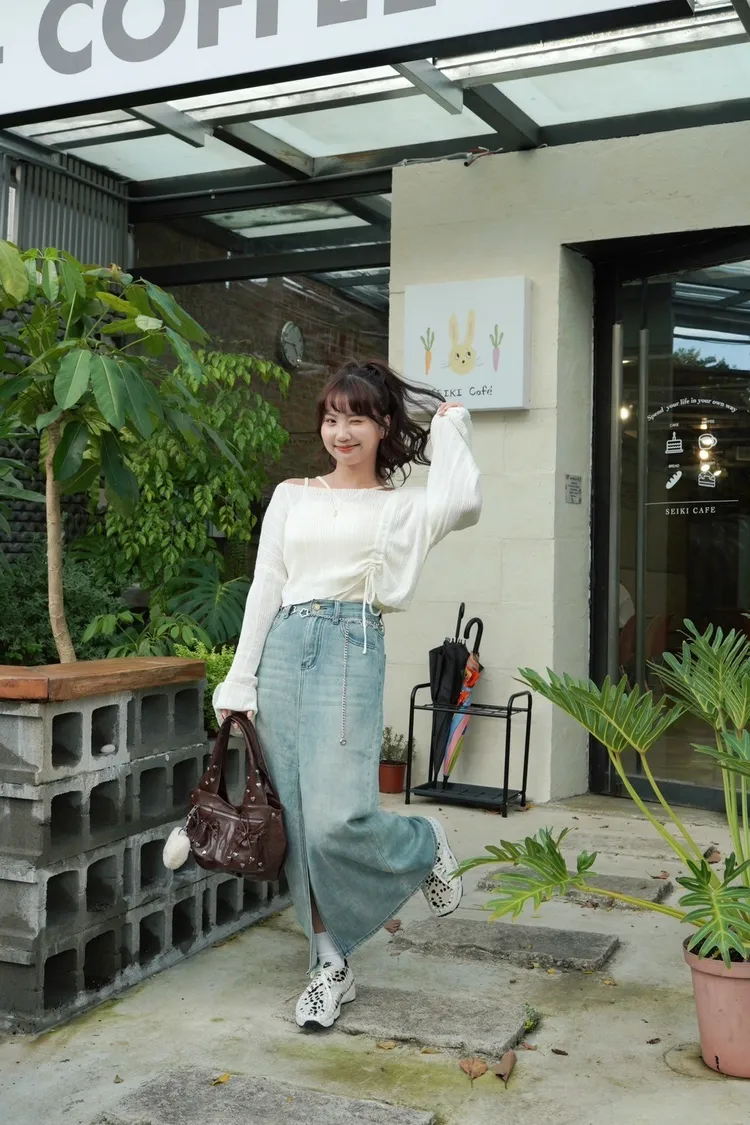 牛仔裙是 [闆娘摯愛超瘦復古感牛仔開衩裙 ]