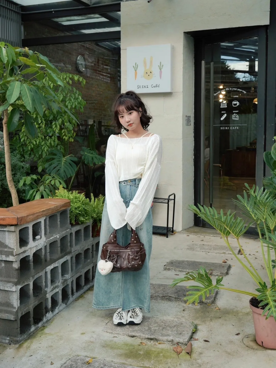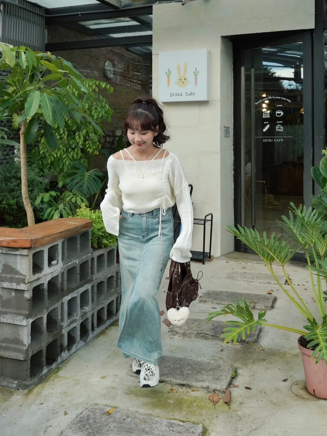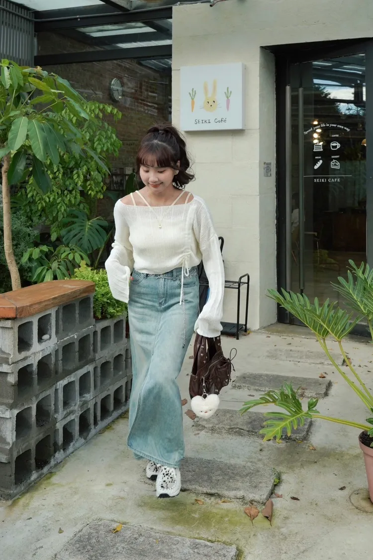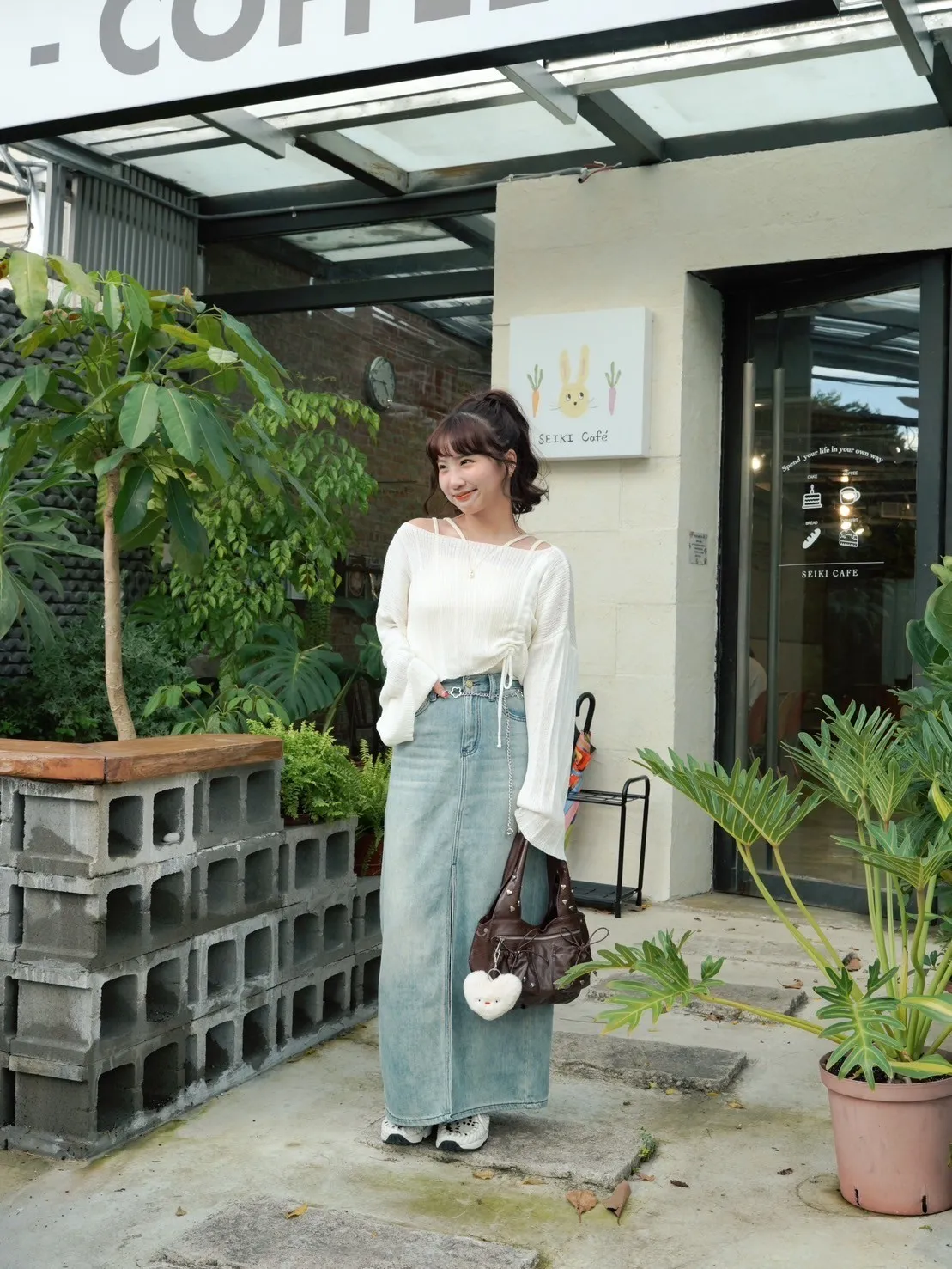 牛仔裙是 [闆娘摯愛超瘦復古感牛仔開衩裙 ]