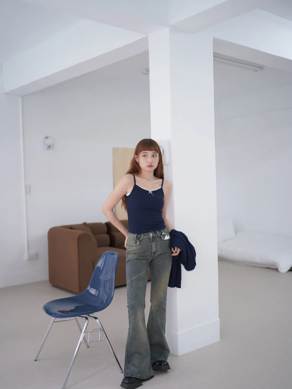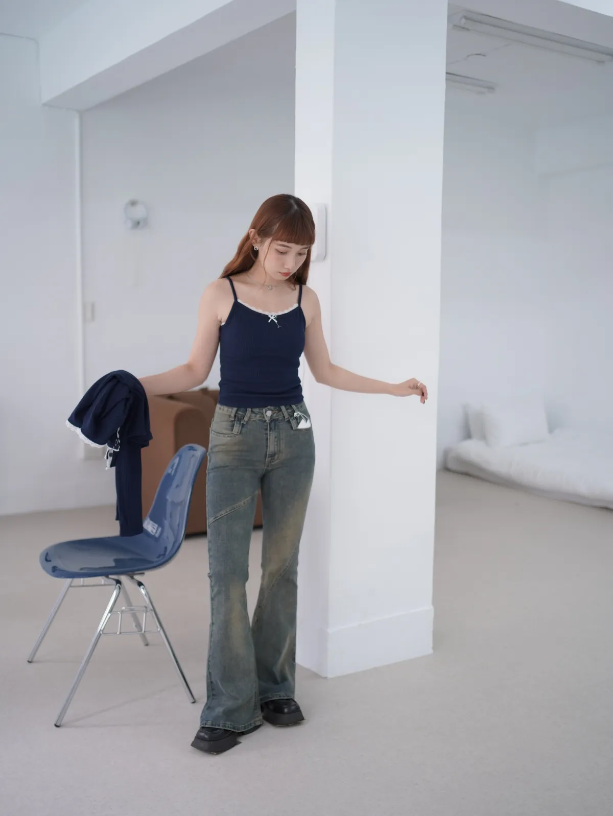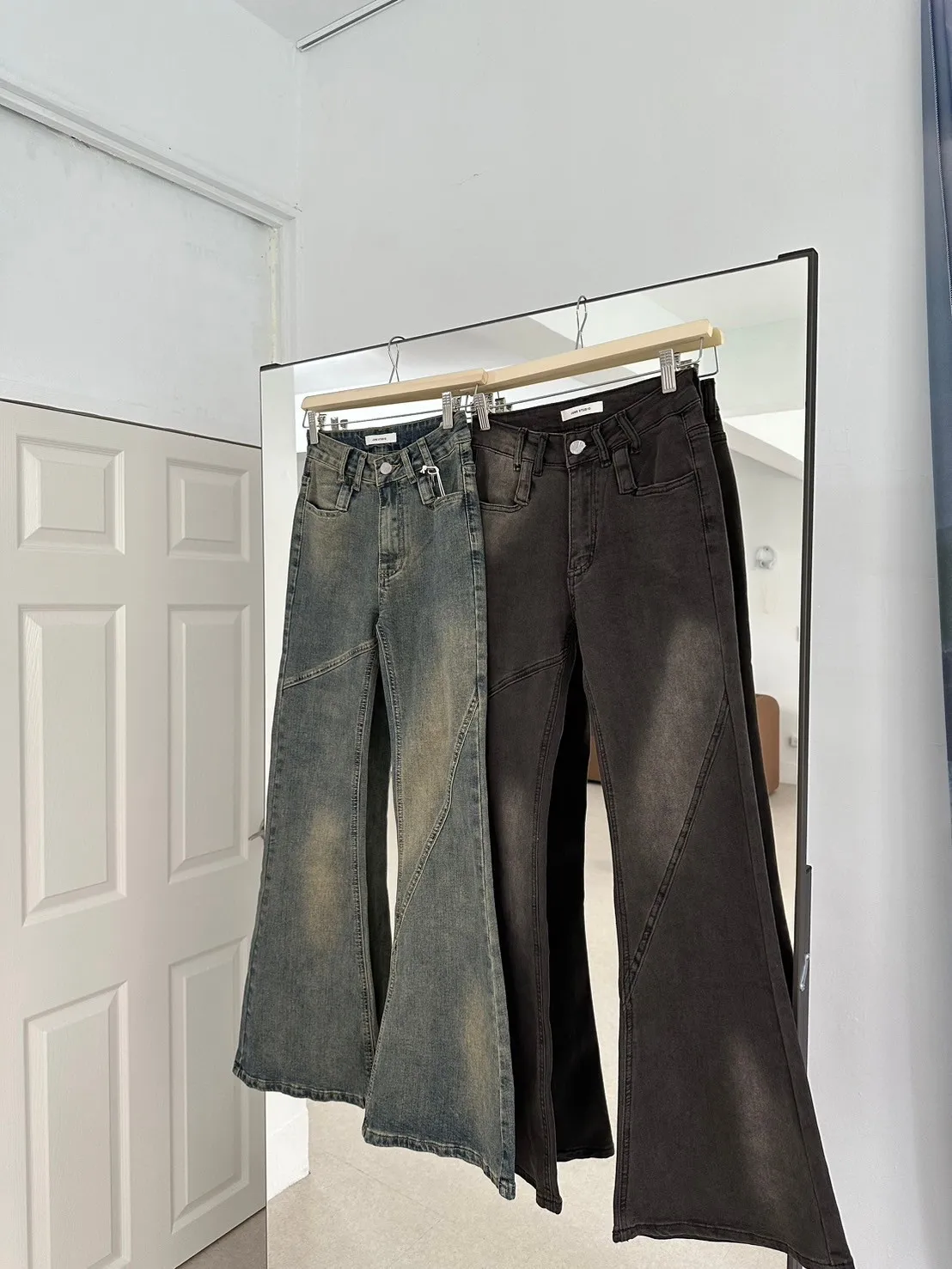 直奔高個子2!復古拼接線條牛仔褲