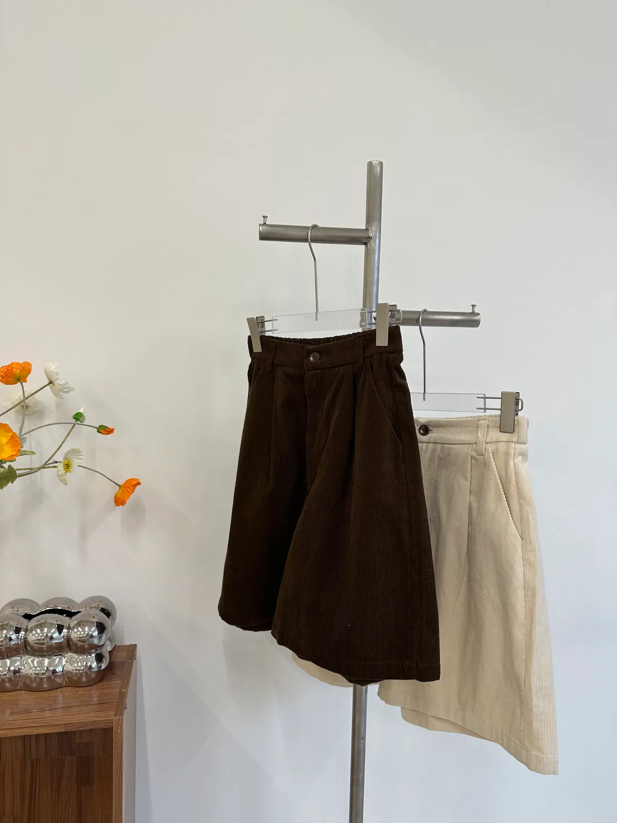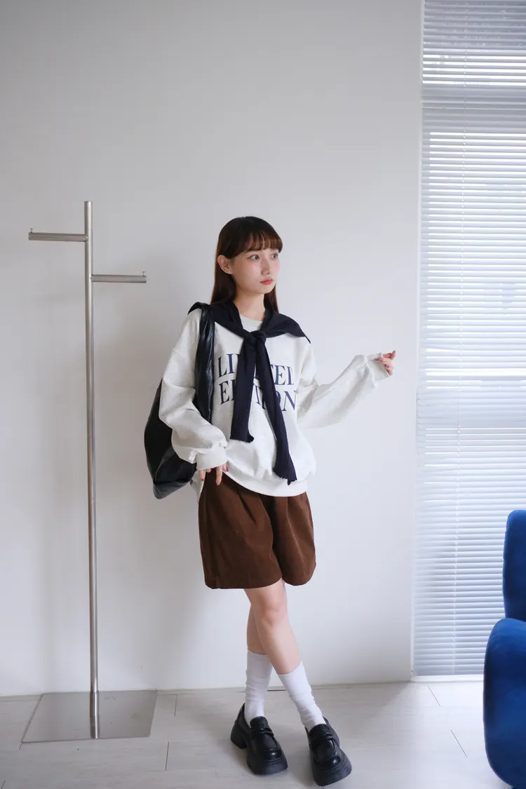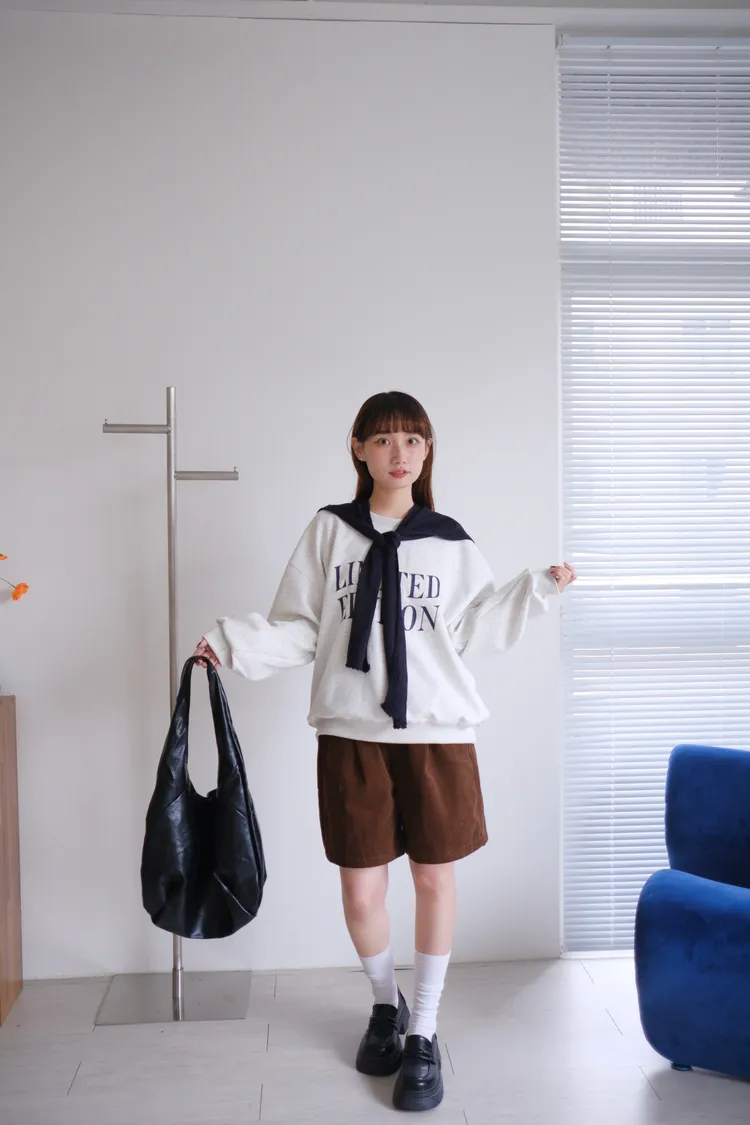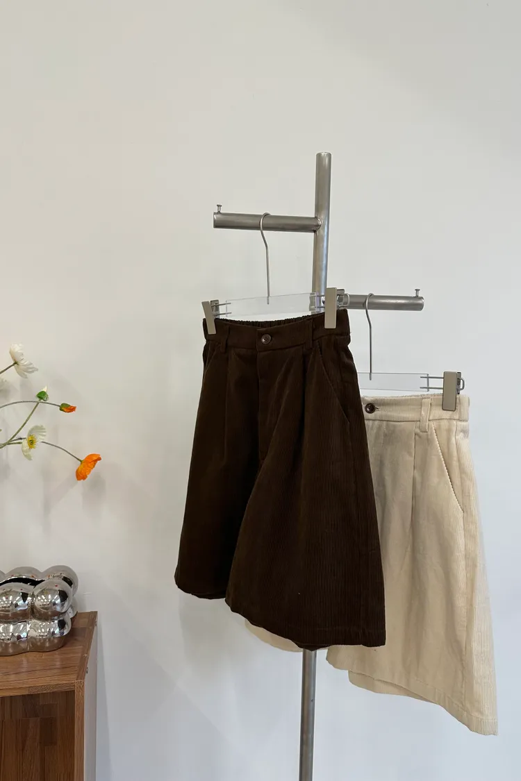休閒氛圍後鬆緊燈芯絨短褲