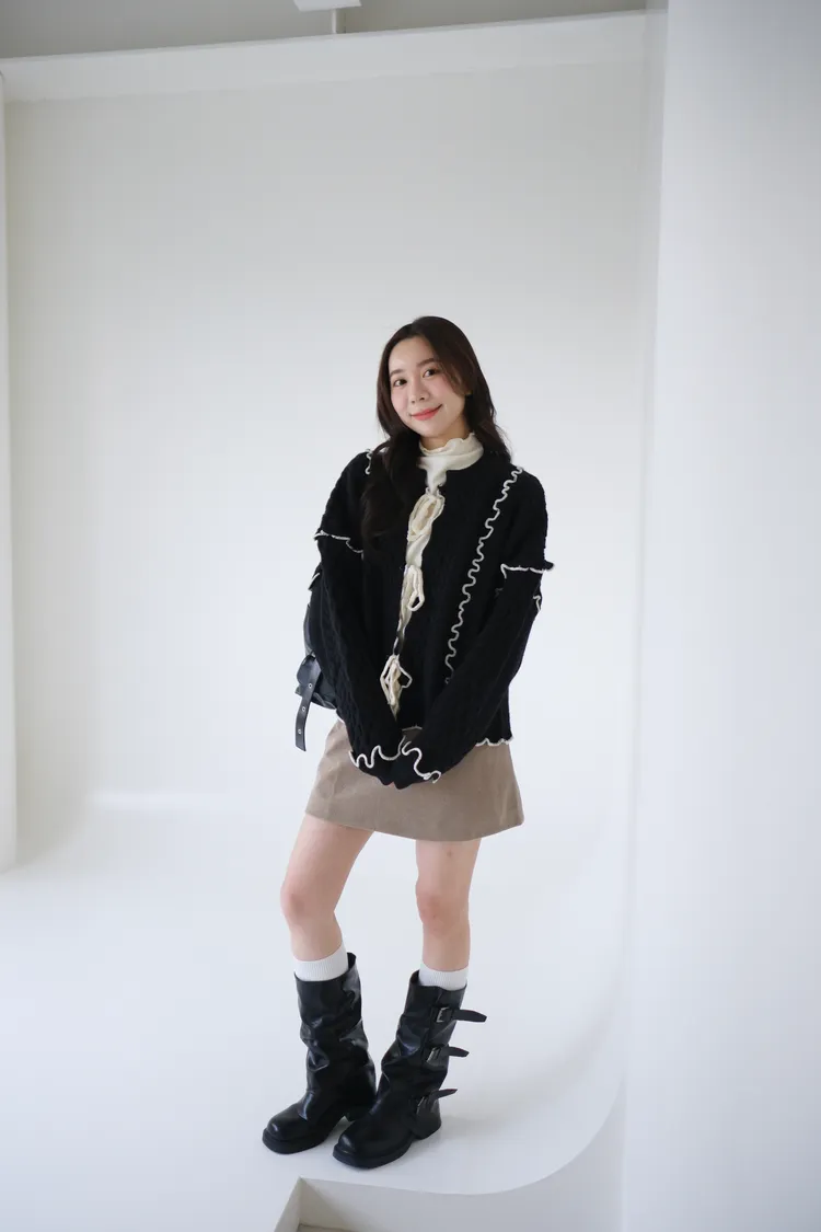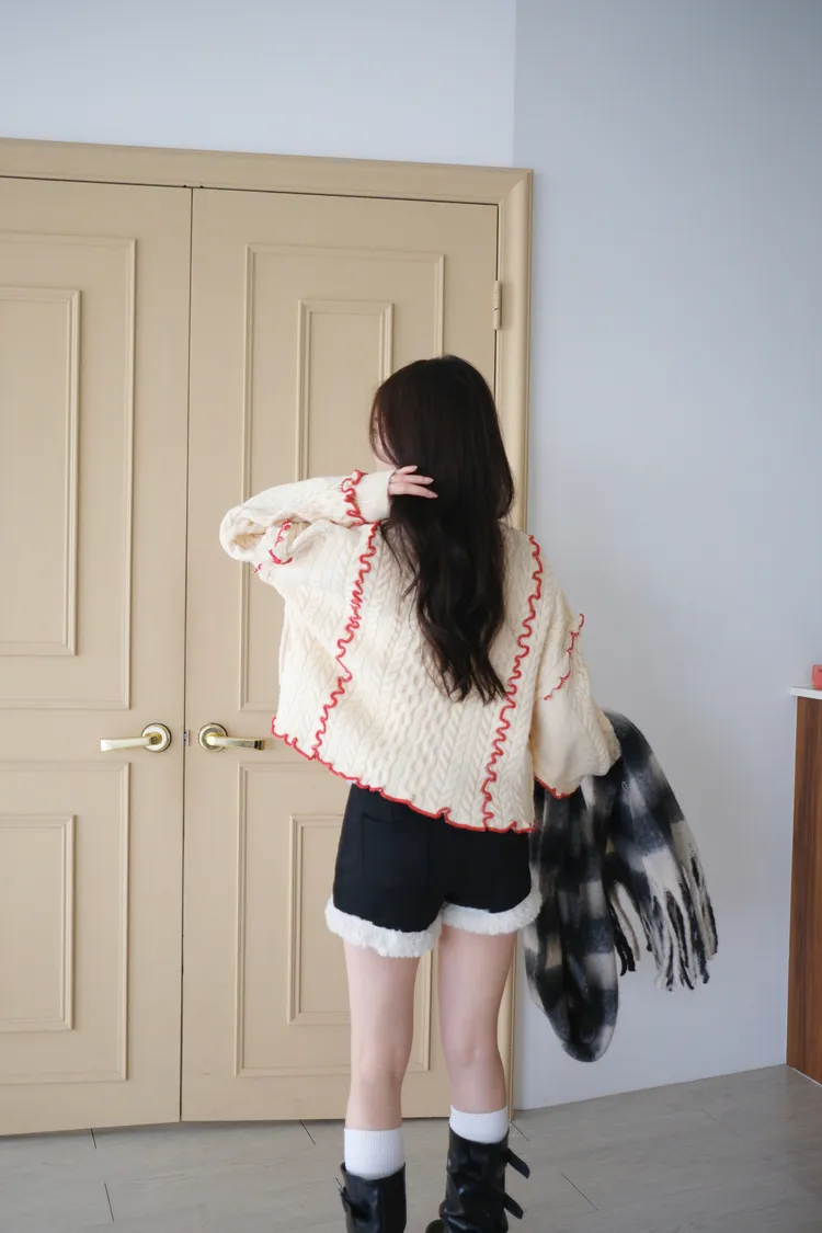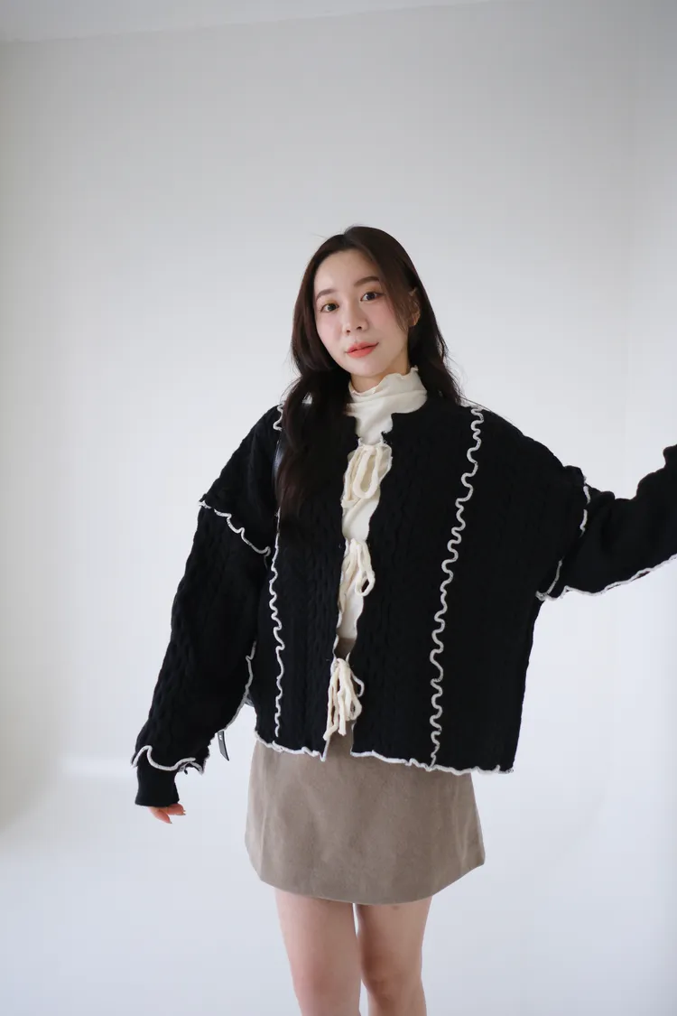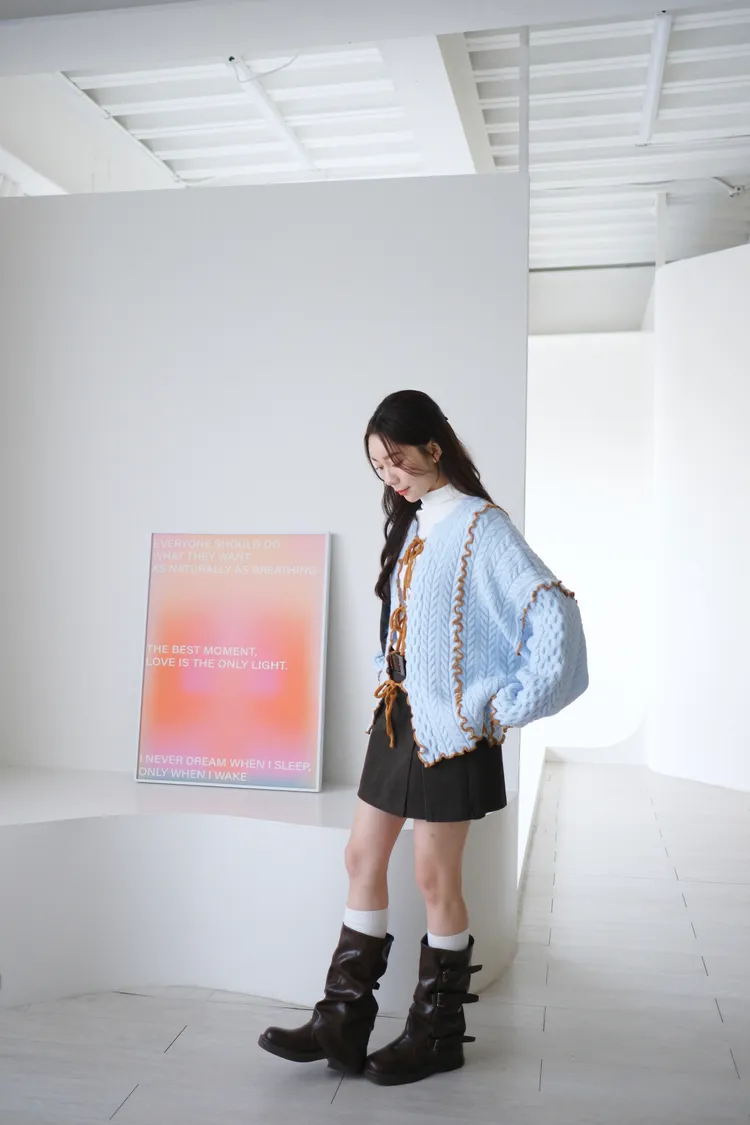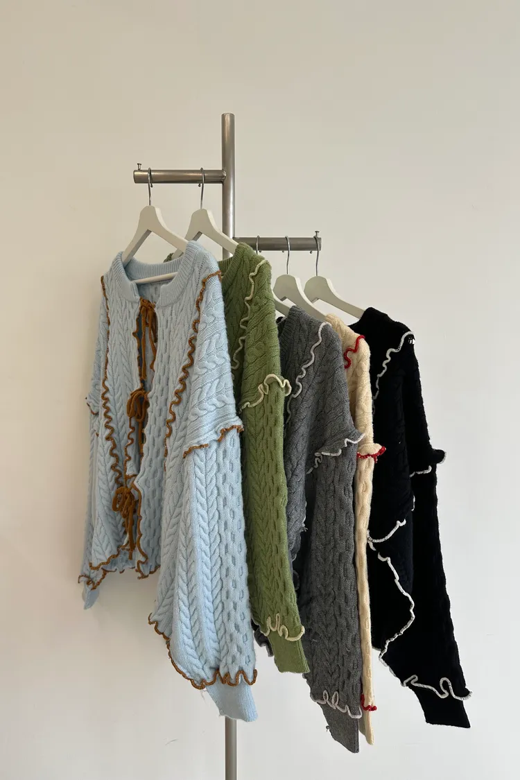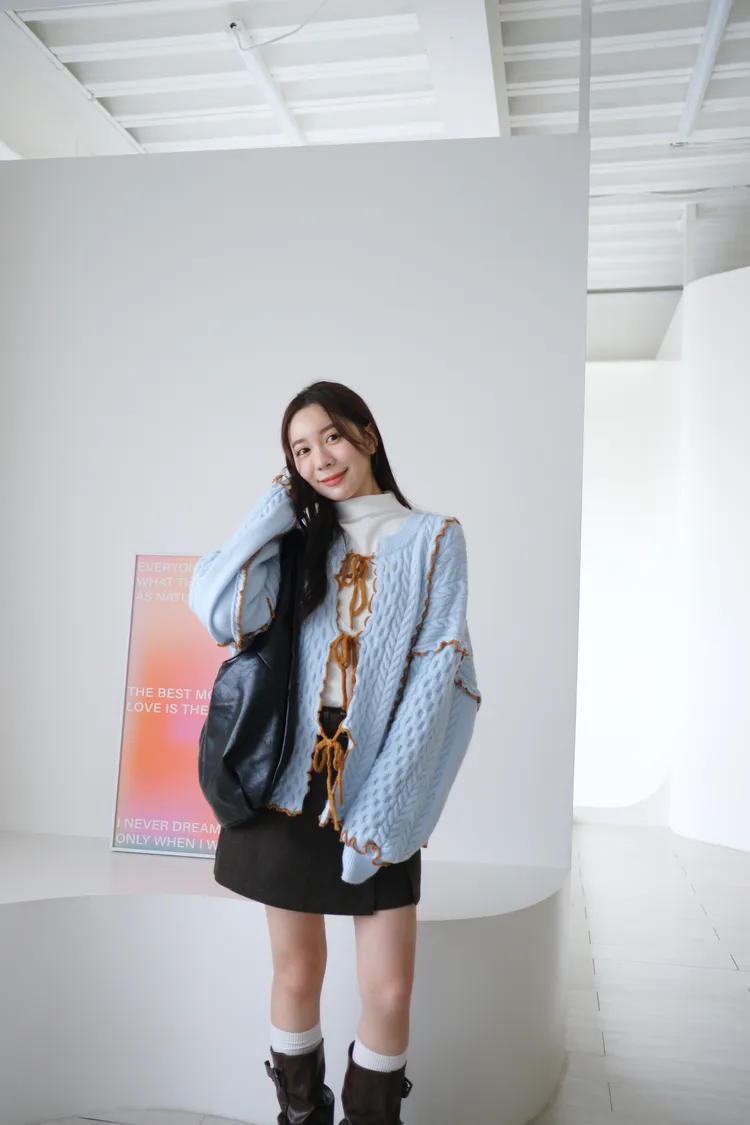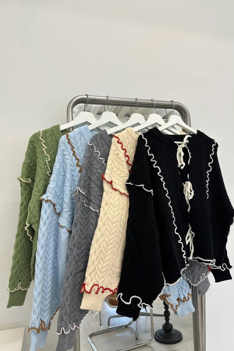 浪漫漩渦撞色綁帶毛衣