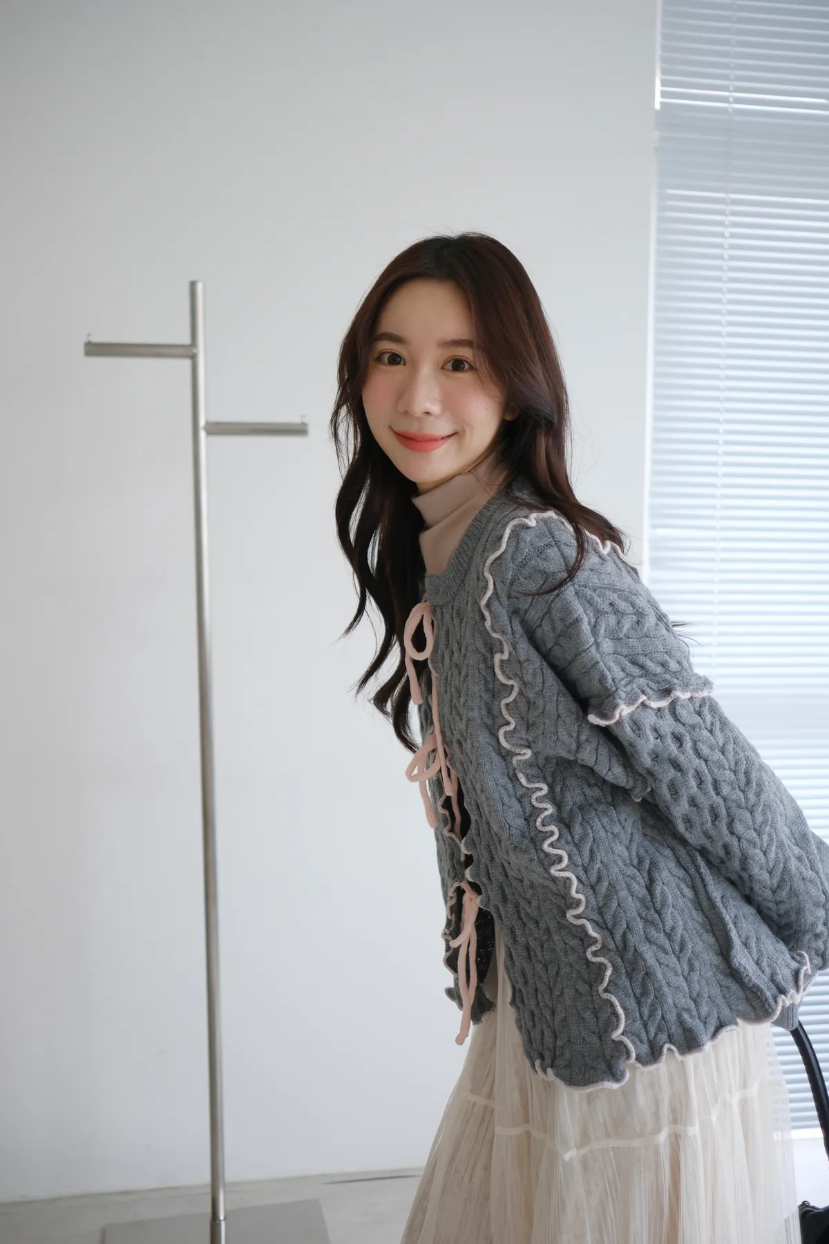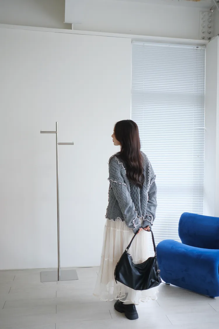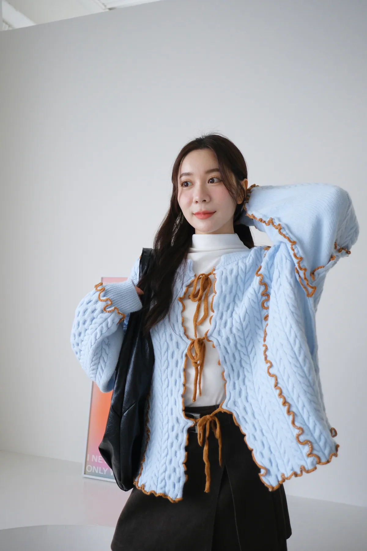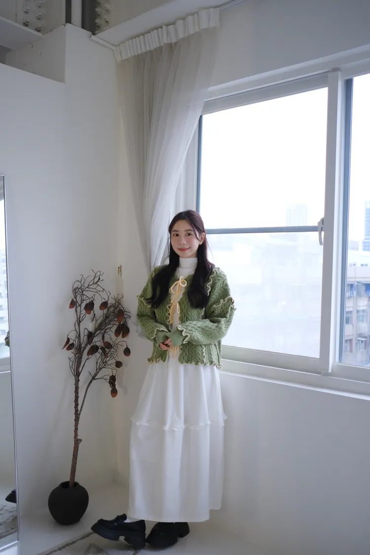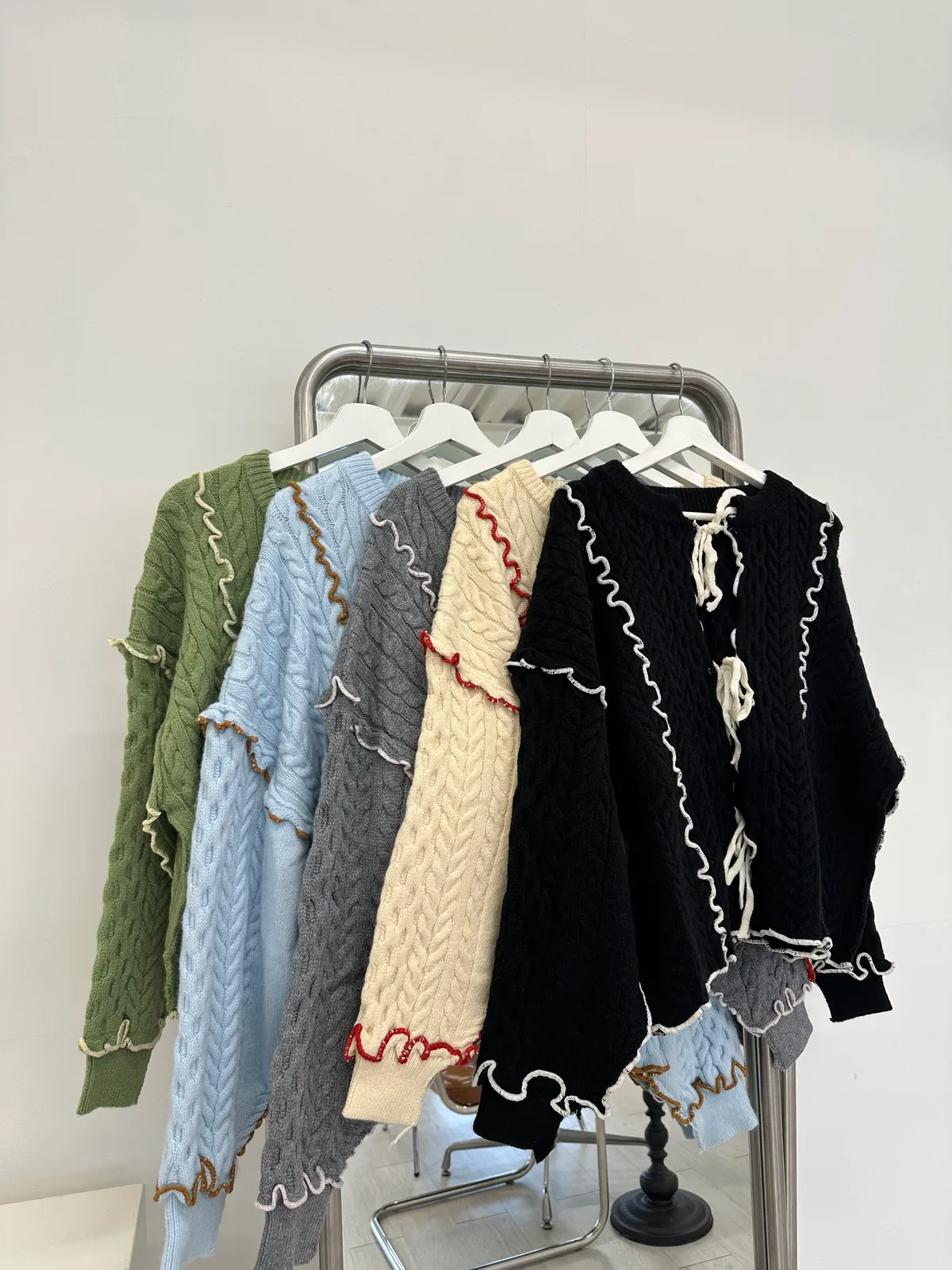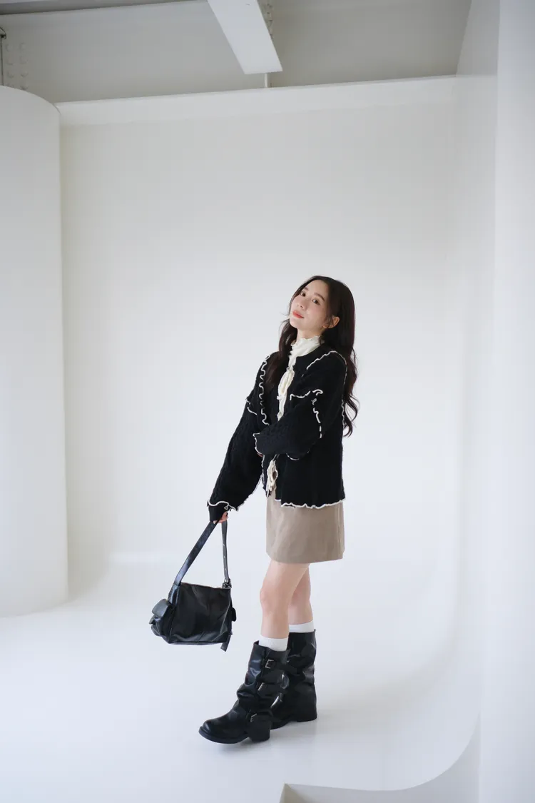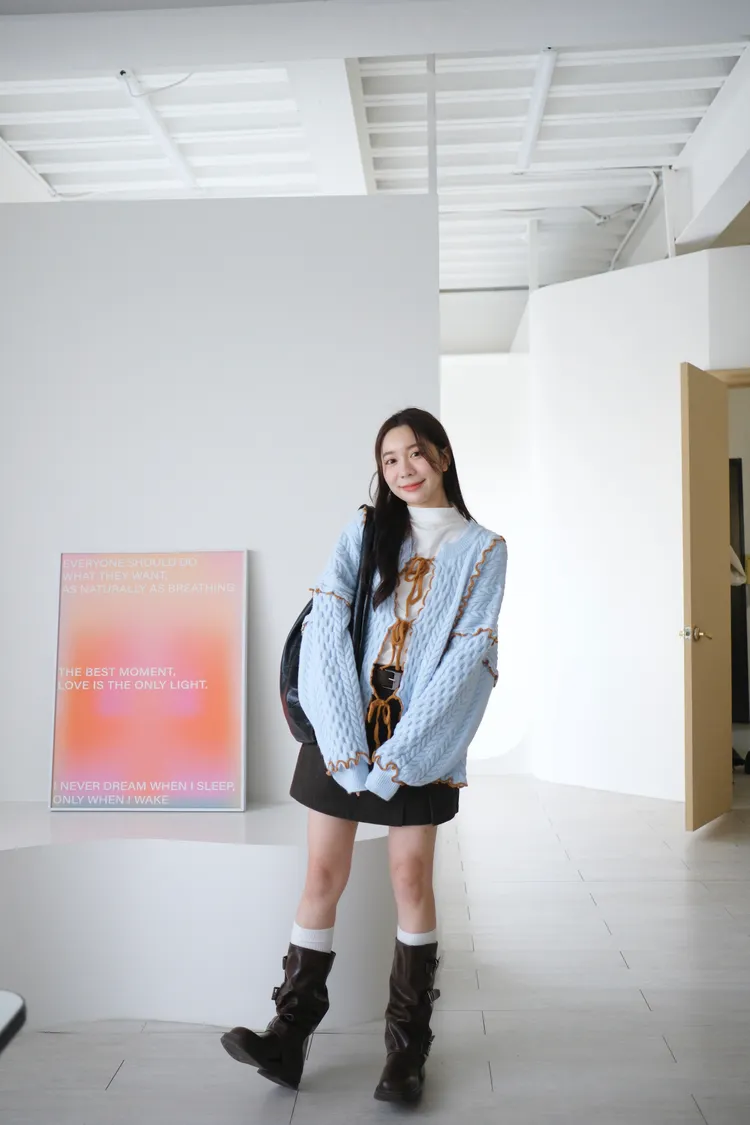 浪漫漩渦撞色綁帶毛衣