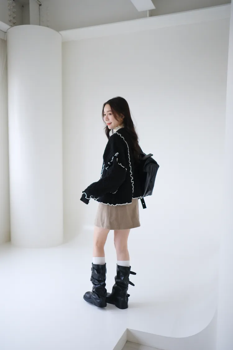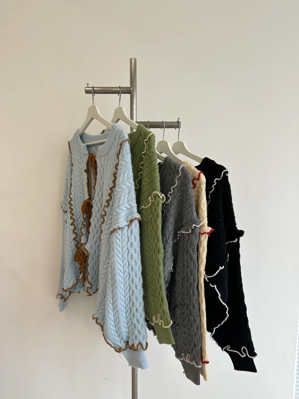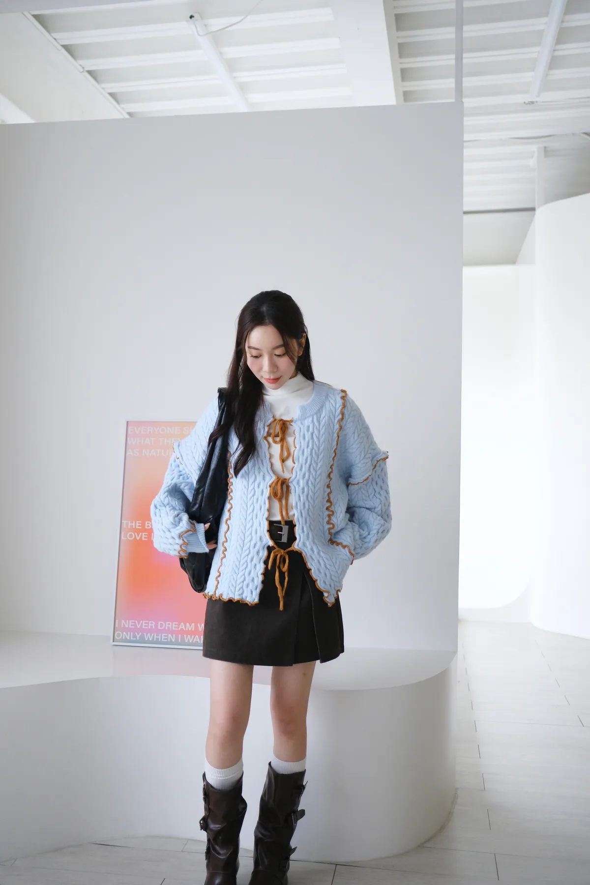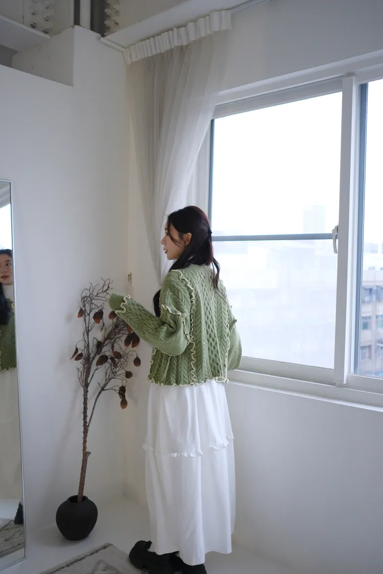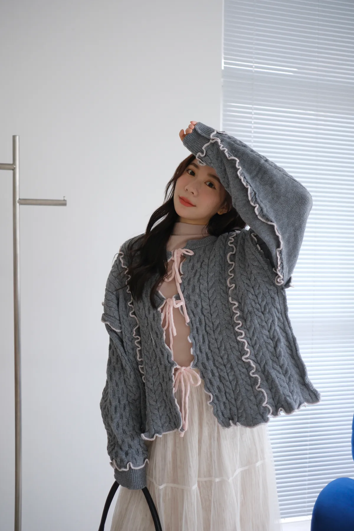 浪漫漩渦撞色綁帶毛衣