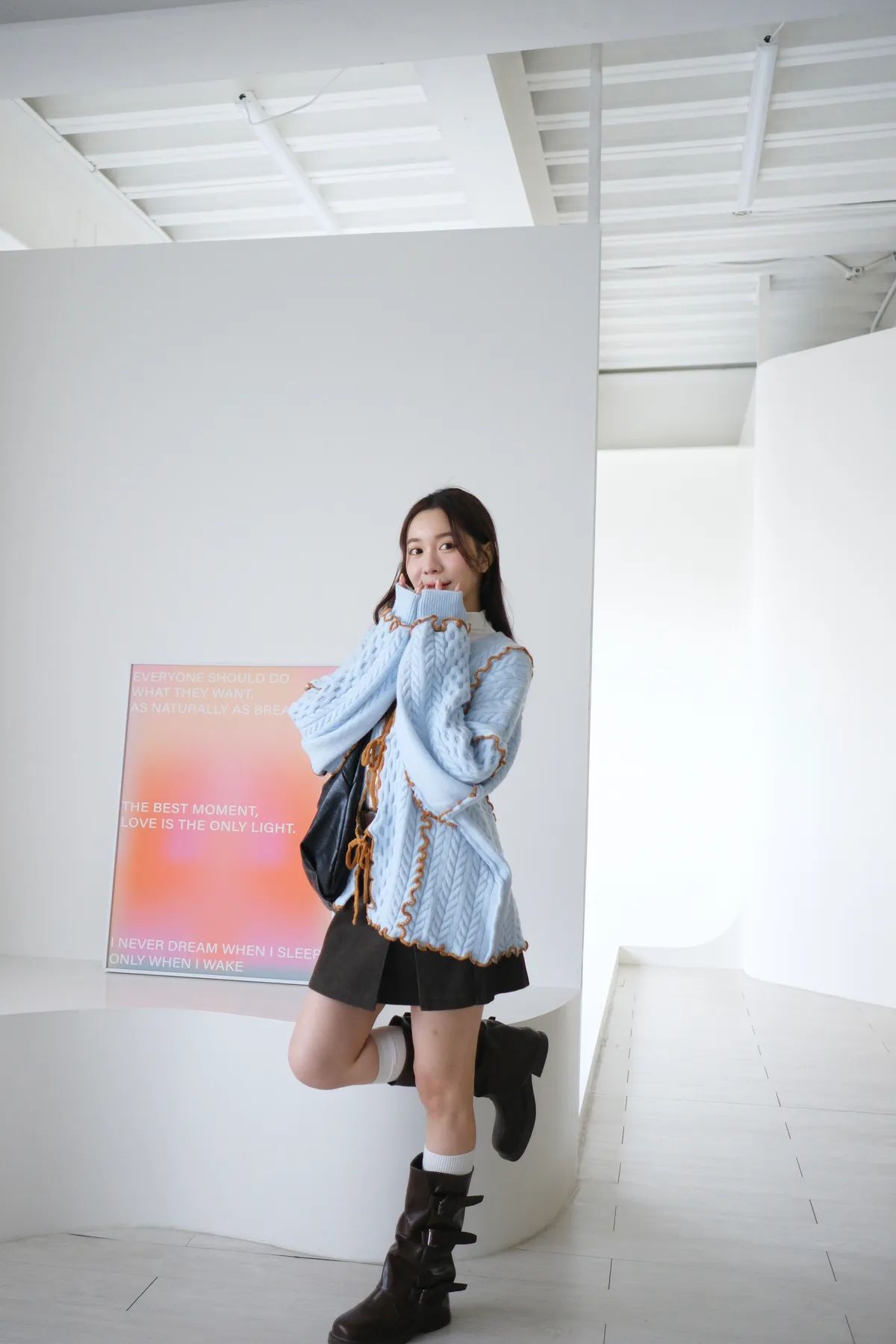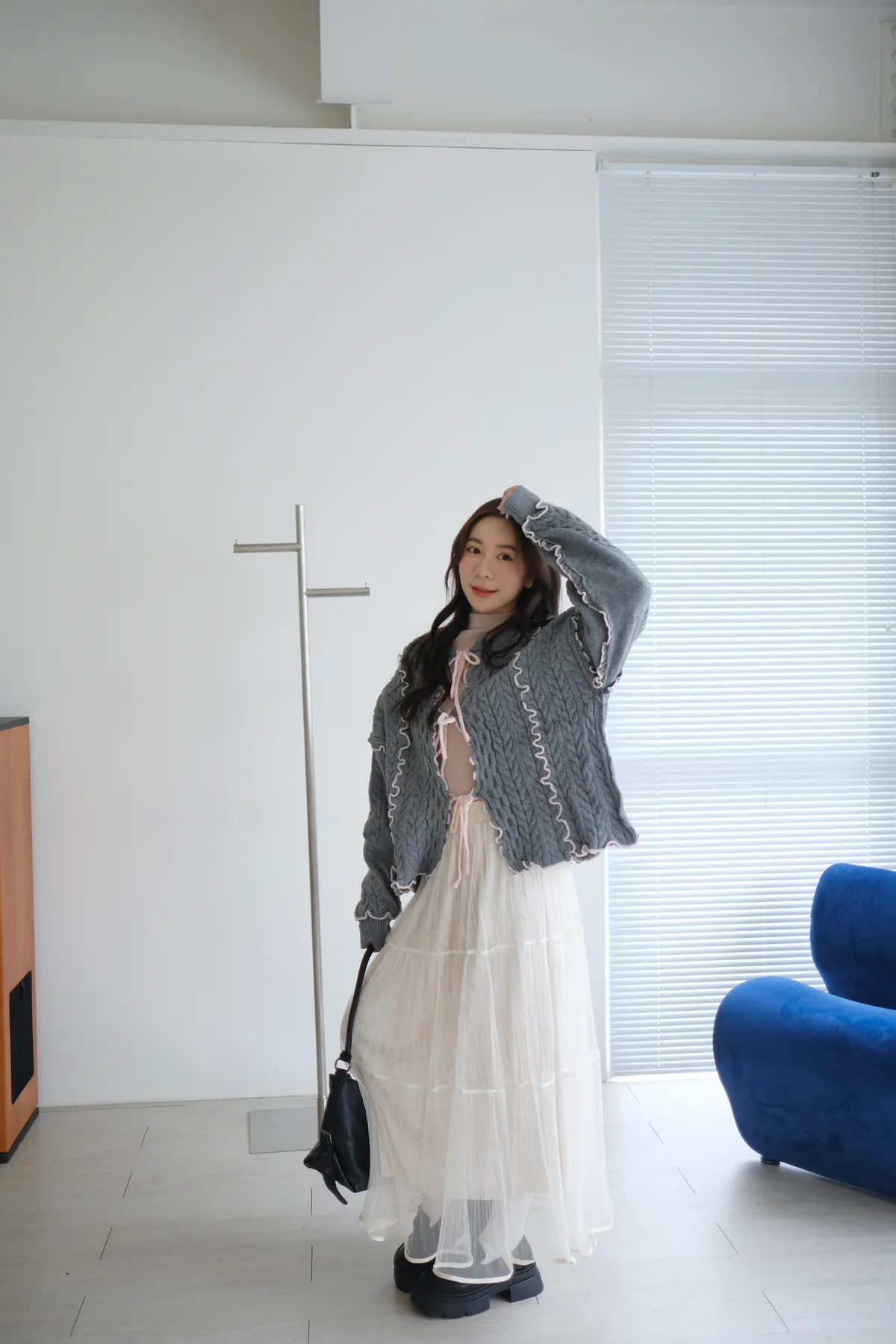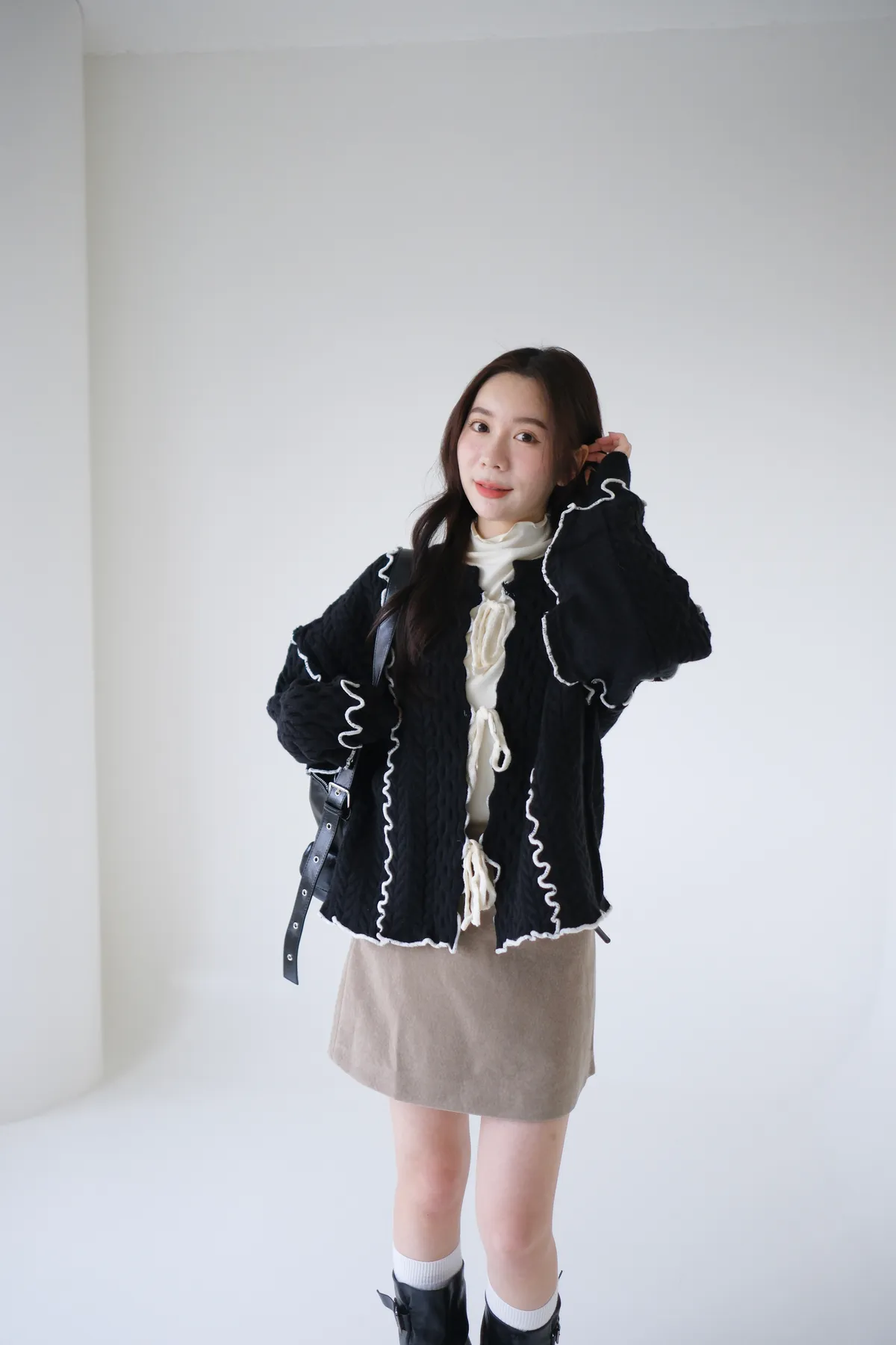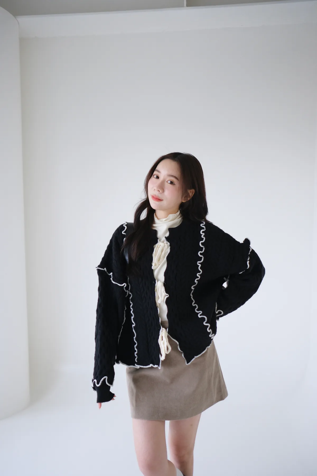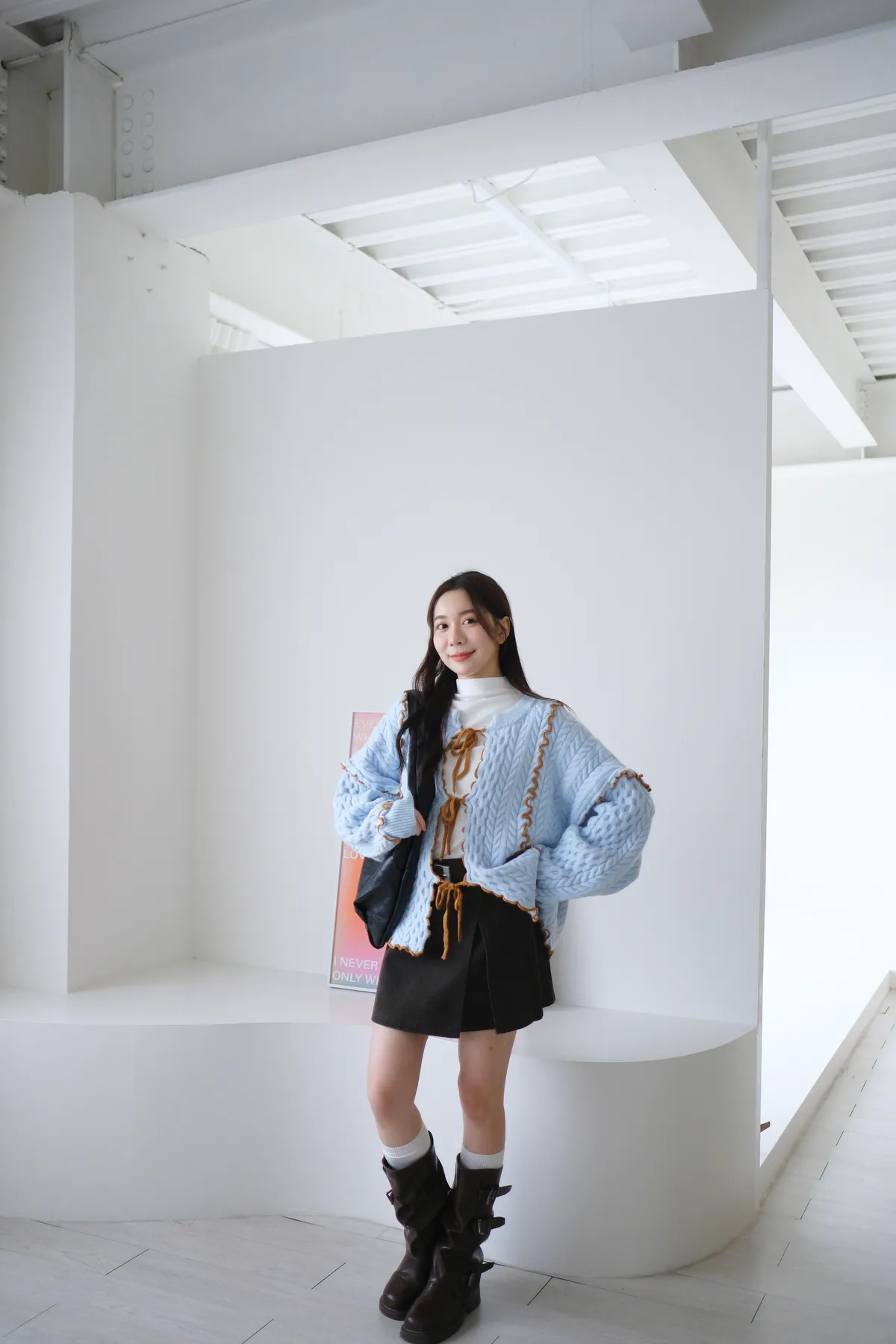 浪漫漩渦撞色綁帶毛衣