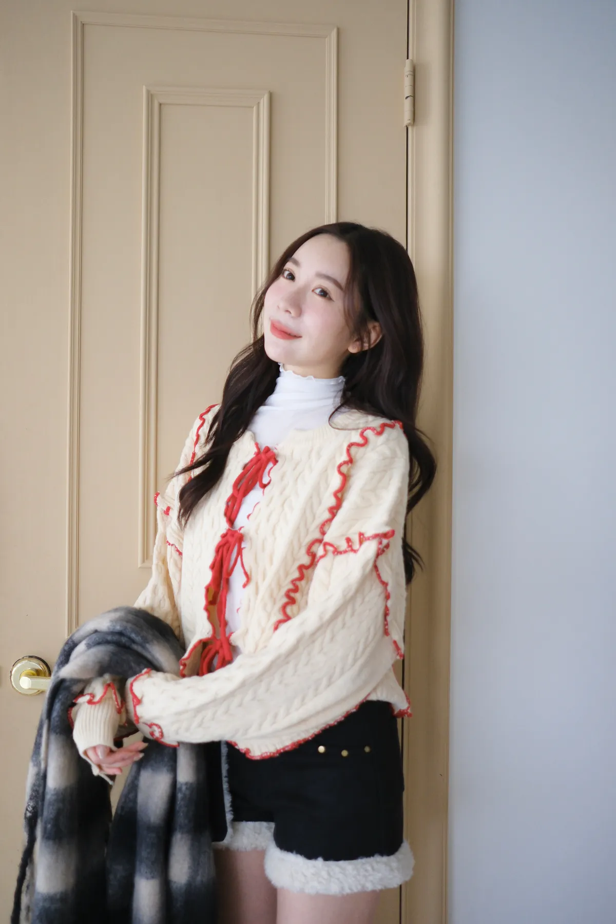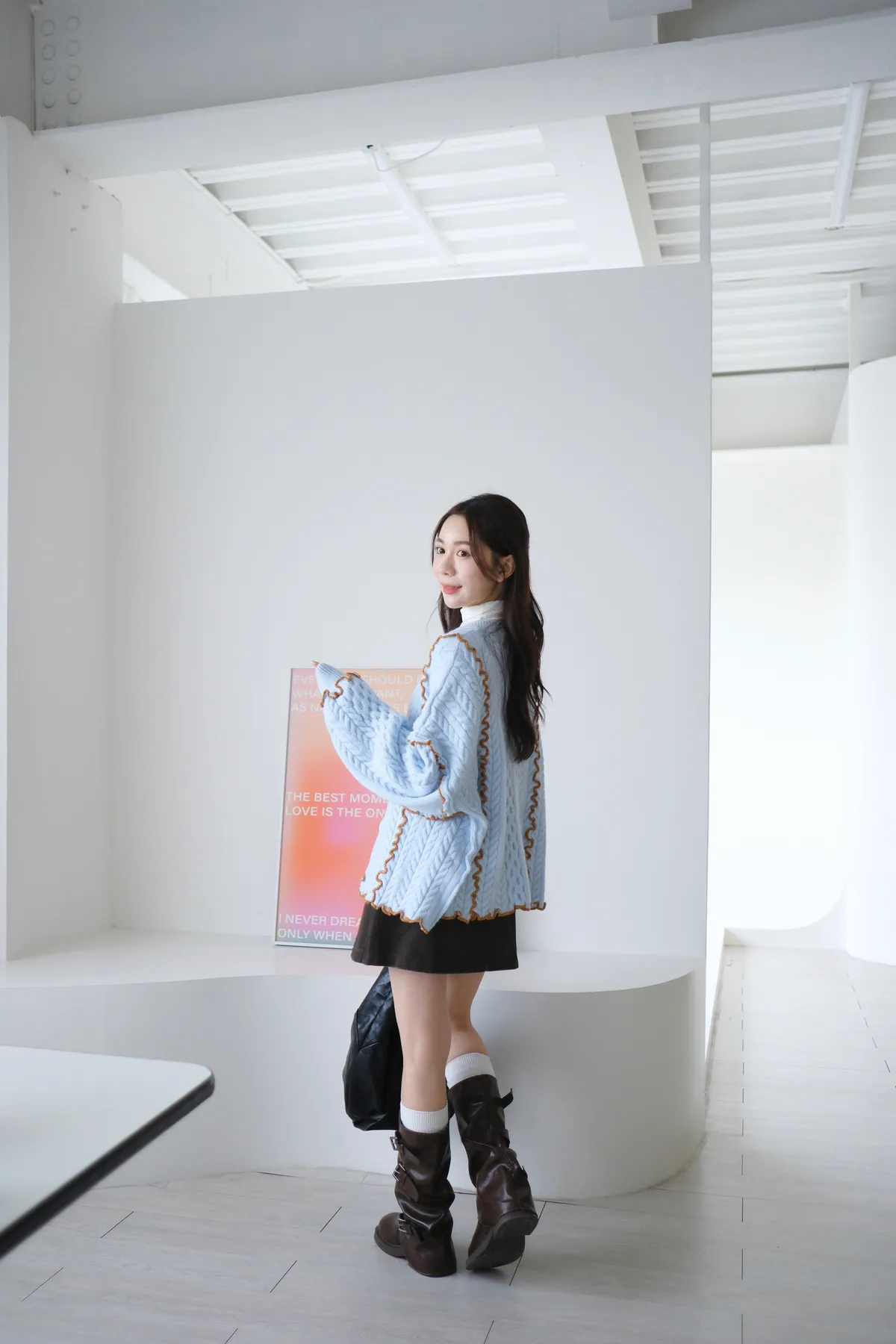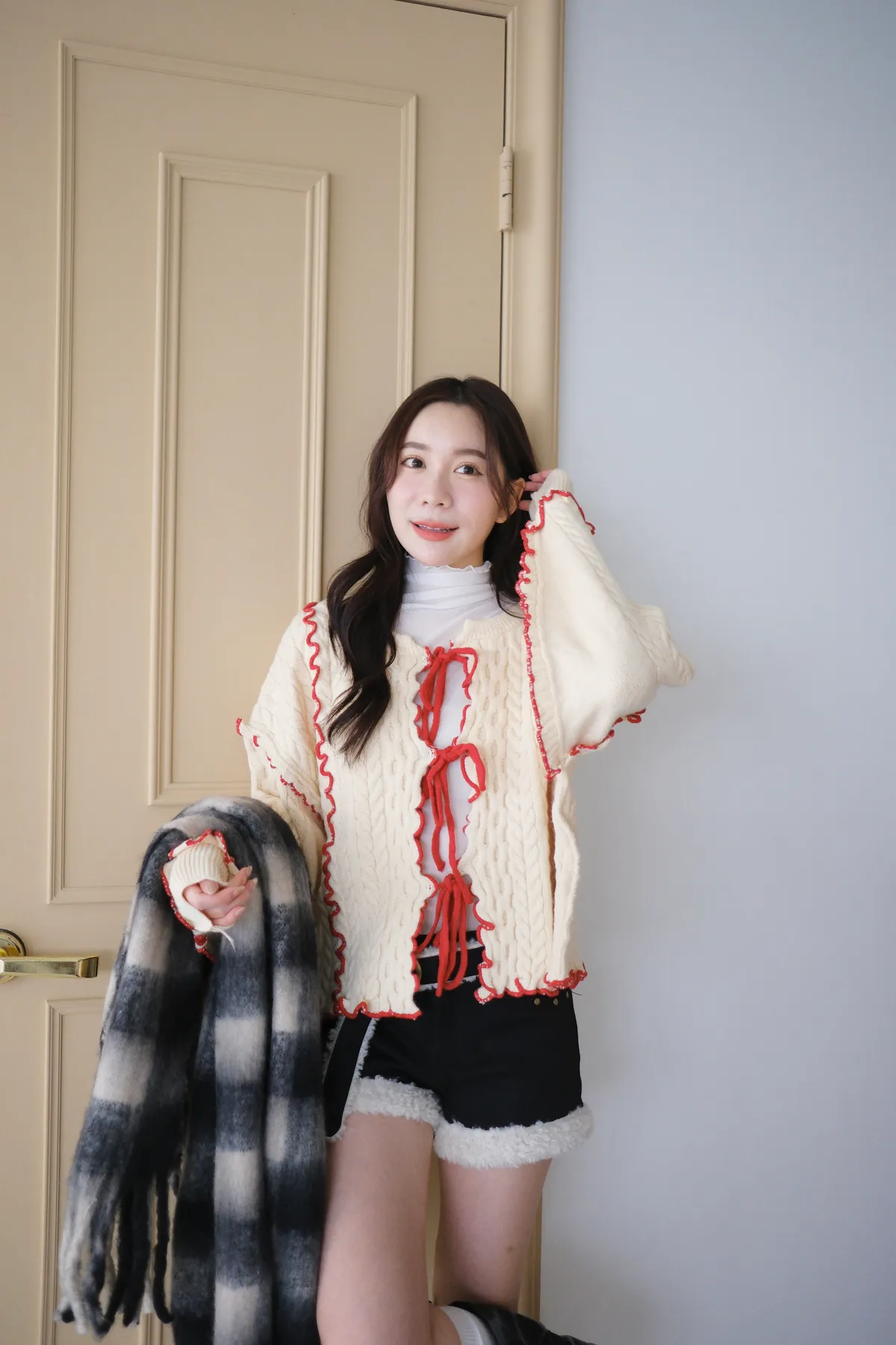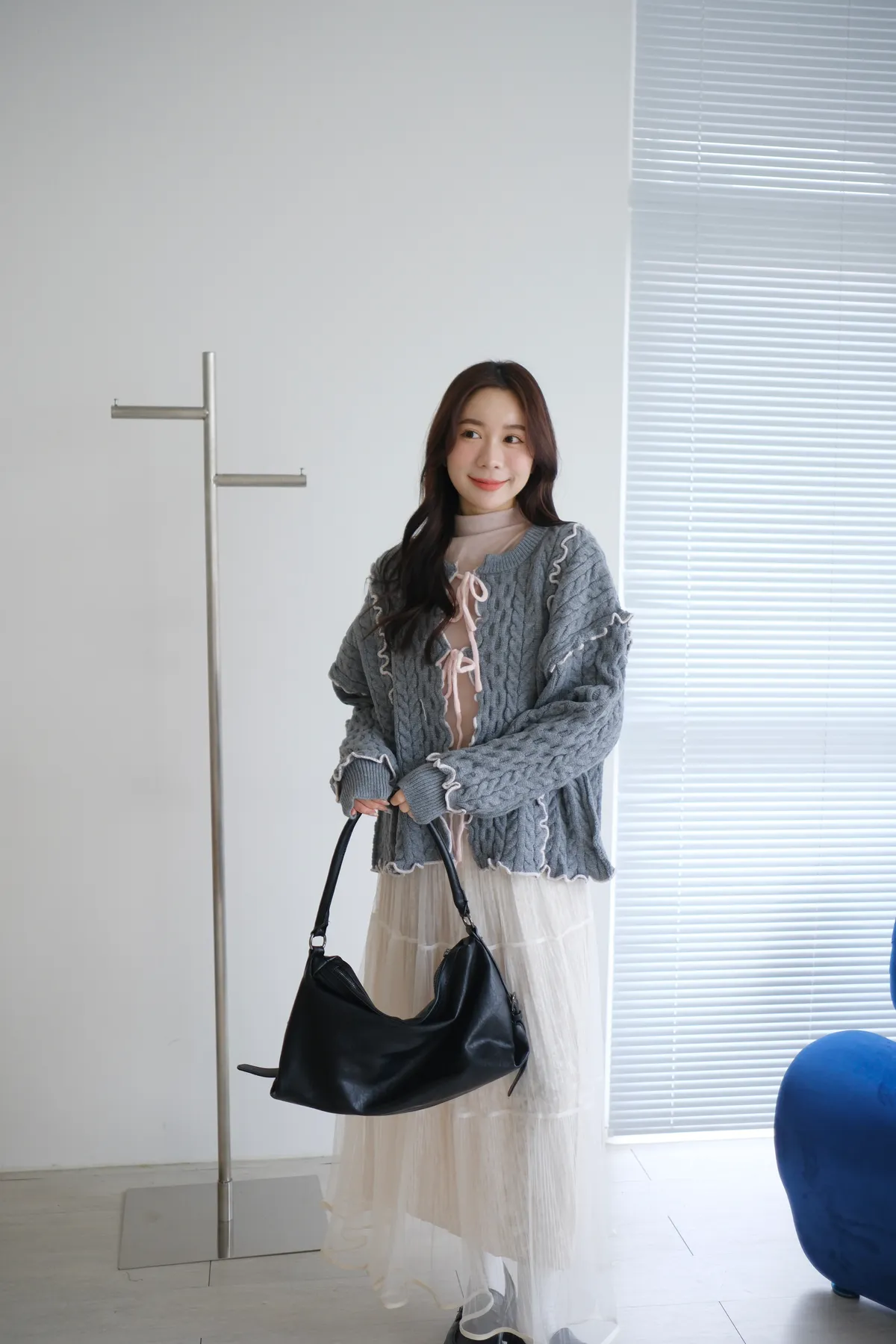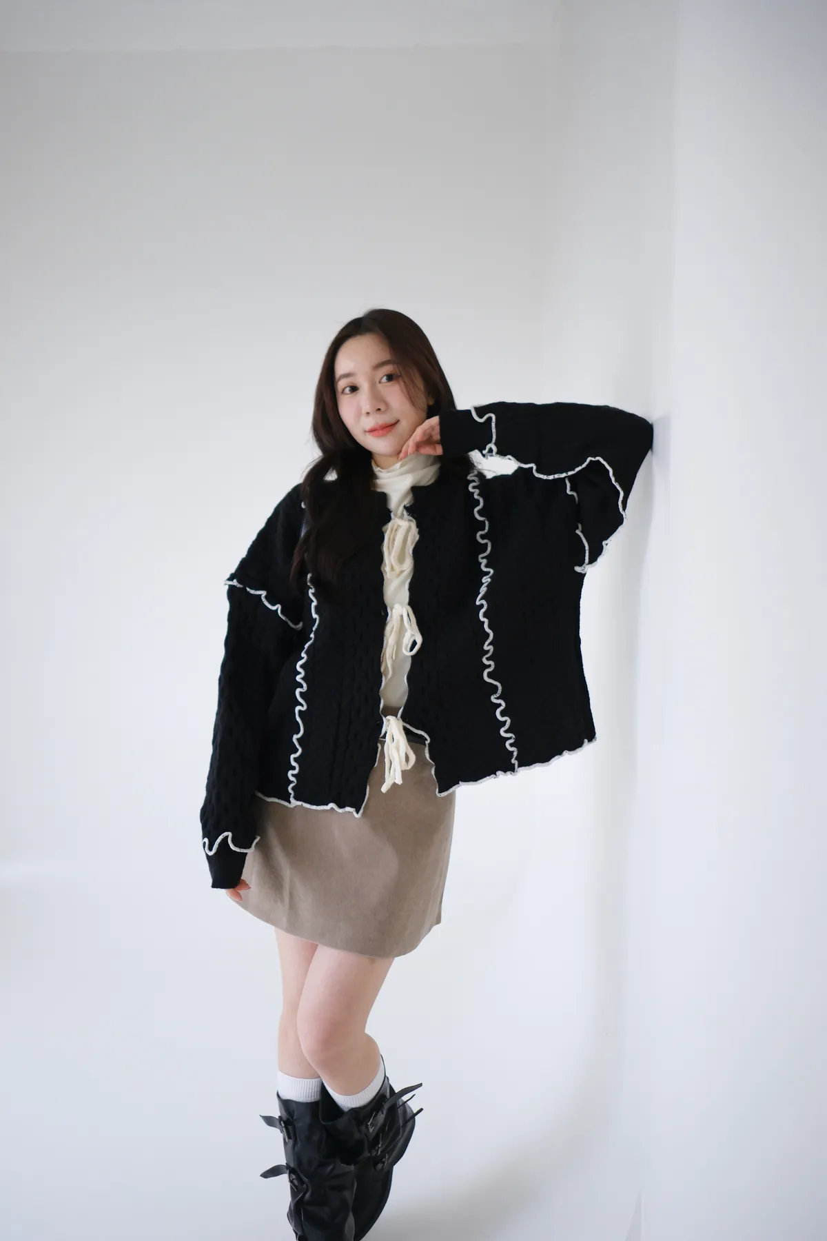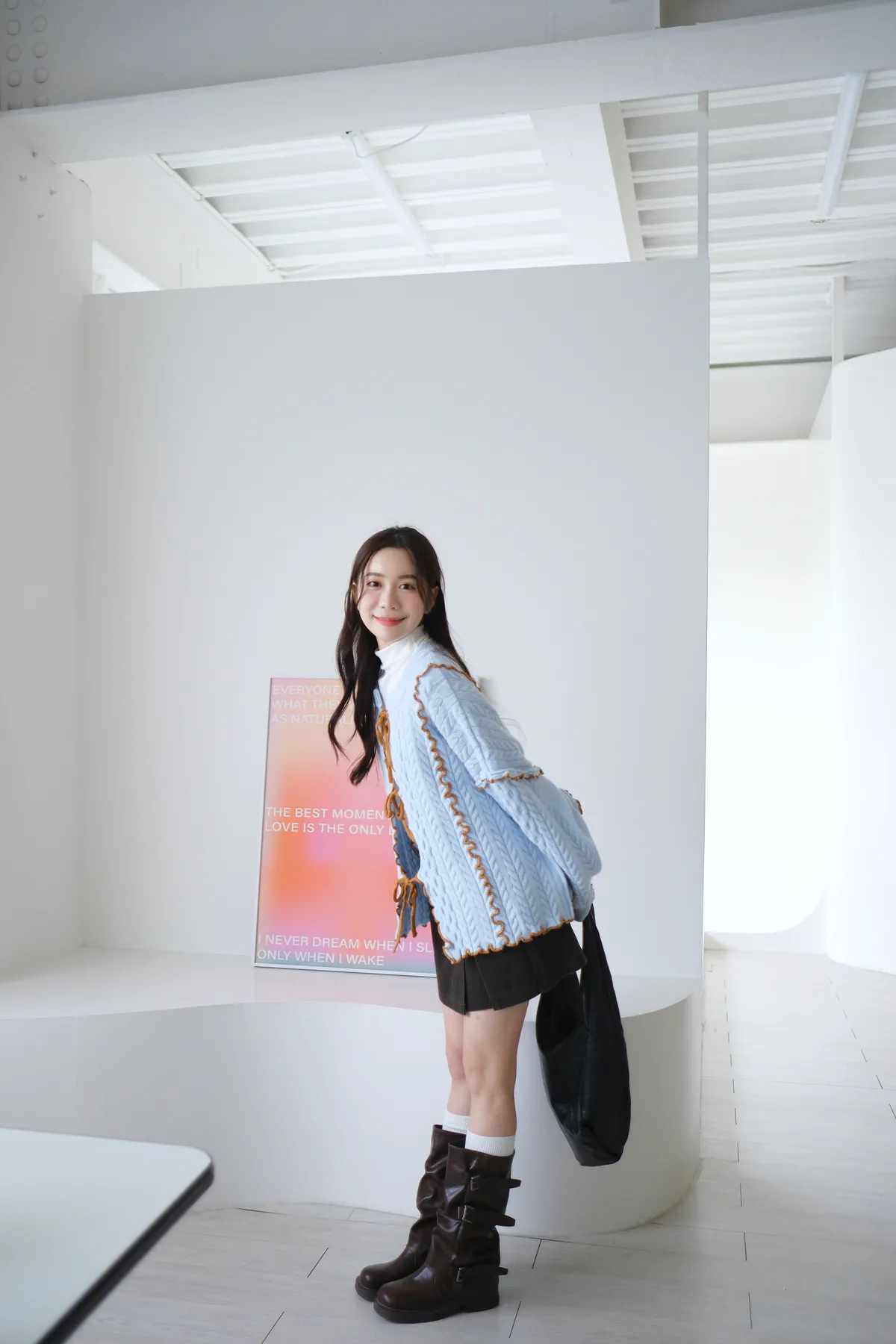 浪漫漩渦撞色綁帶毛衣