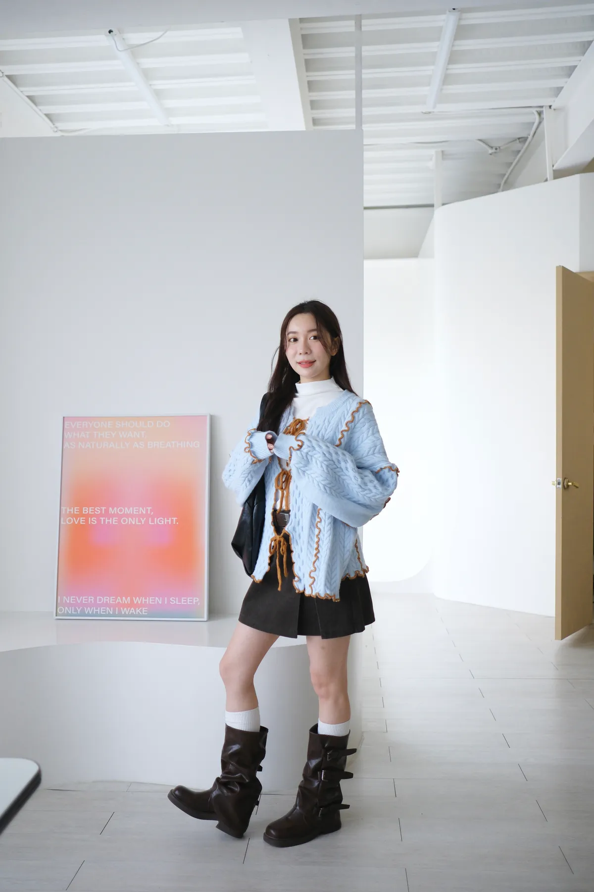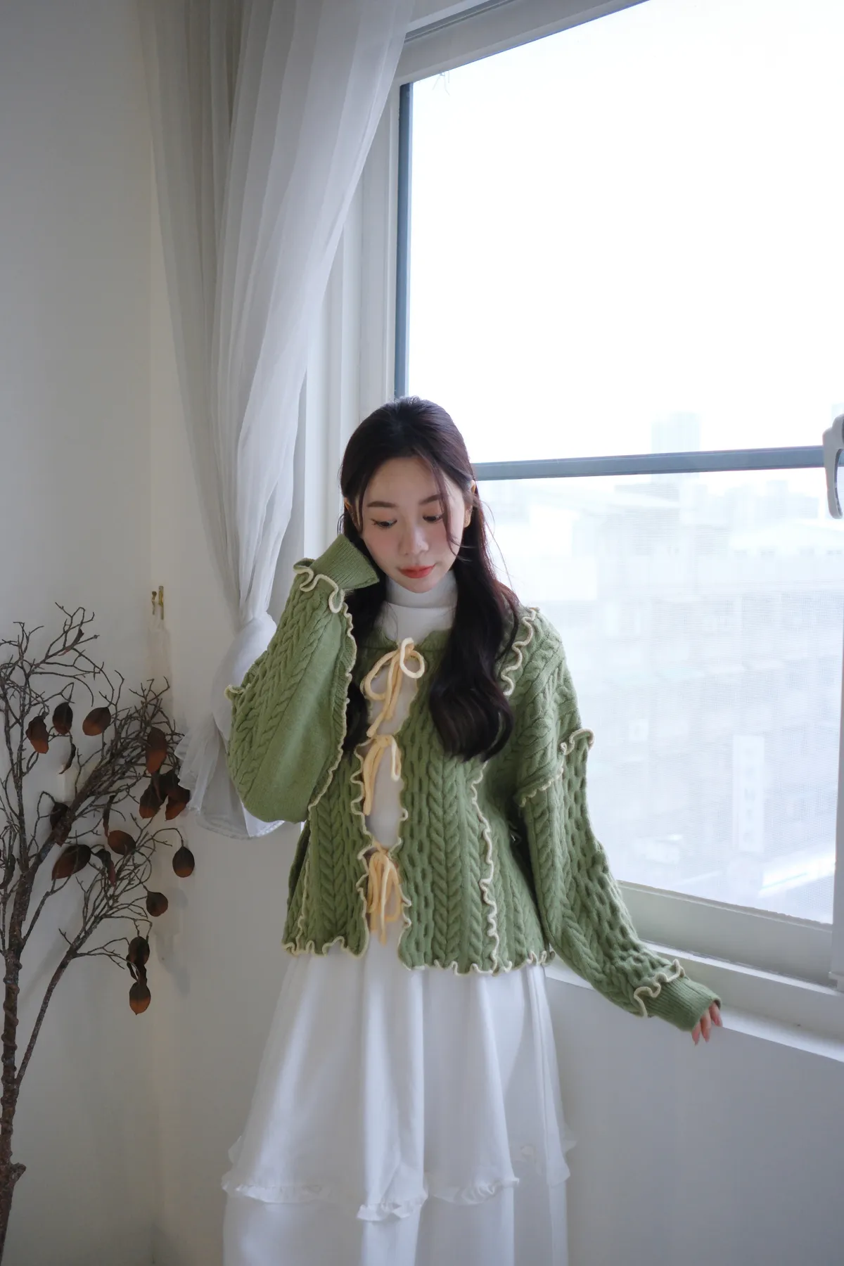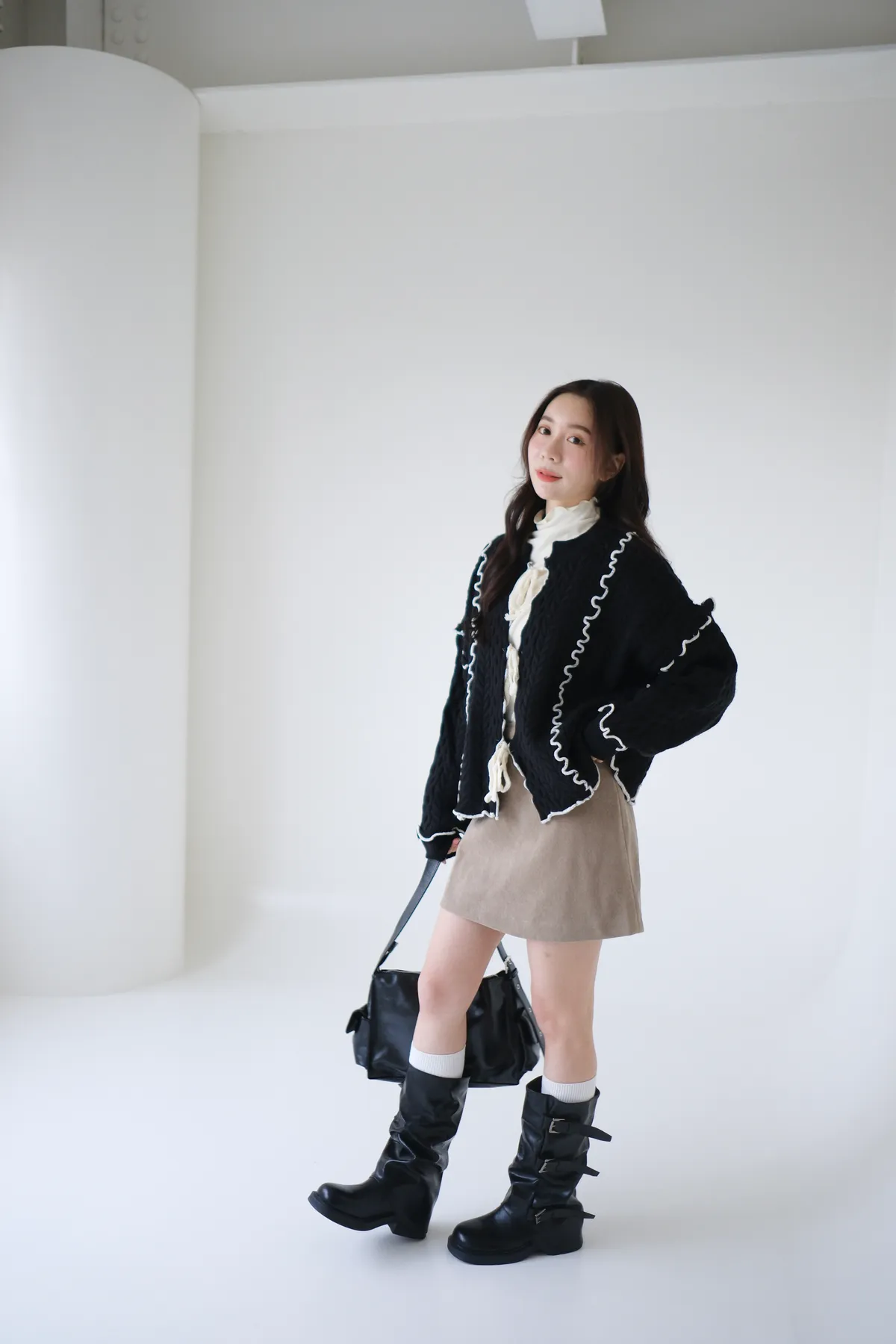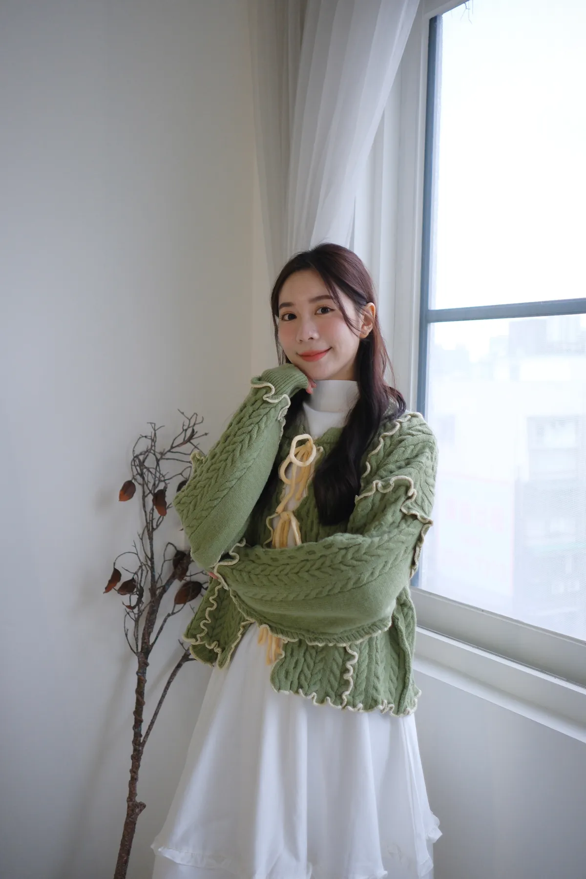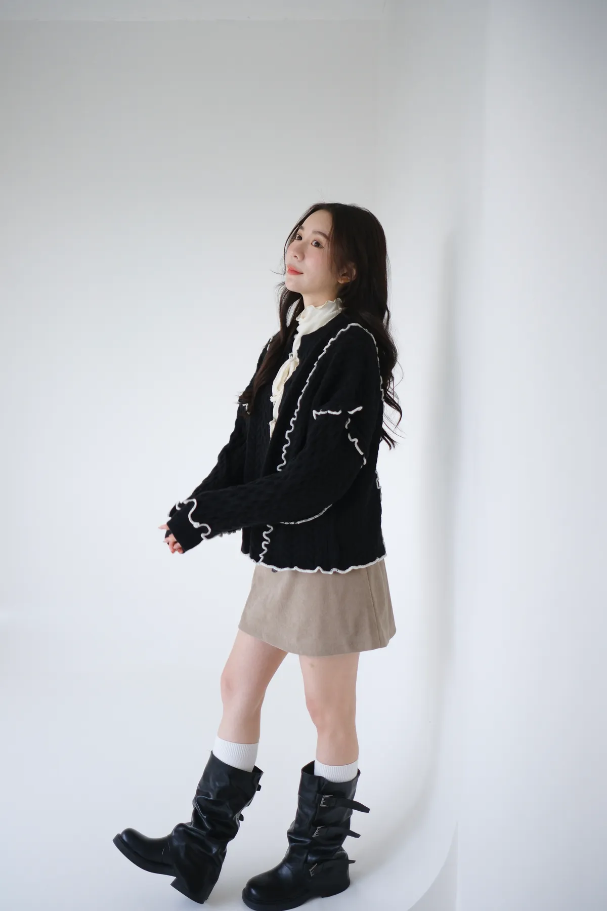 浪漫漩渦撞色綁帶毛衣