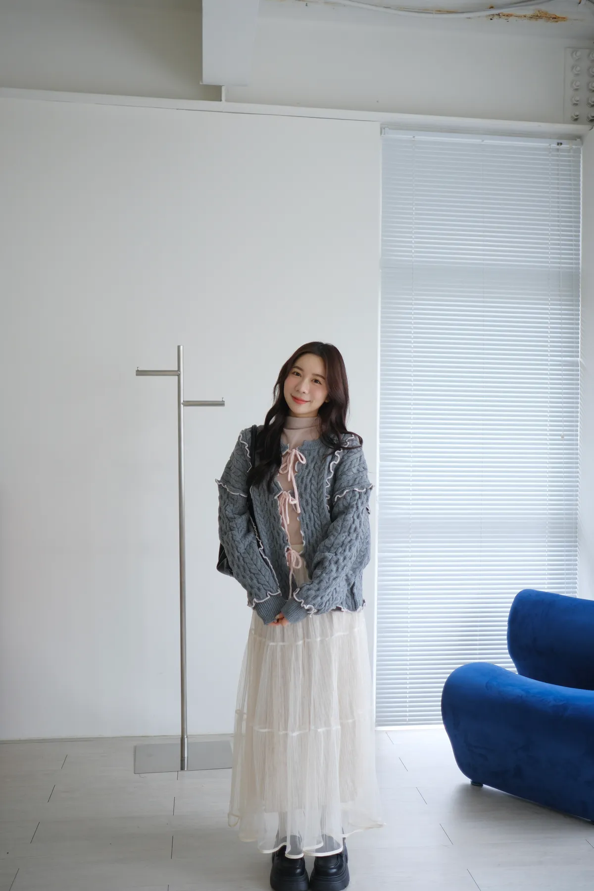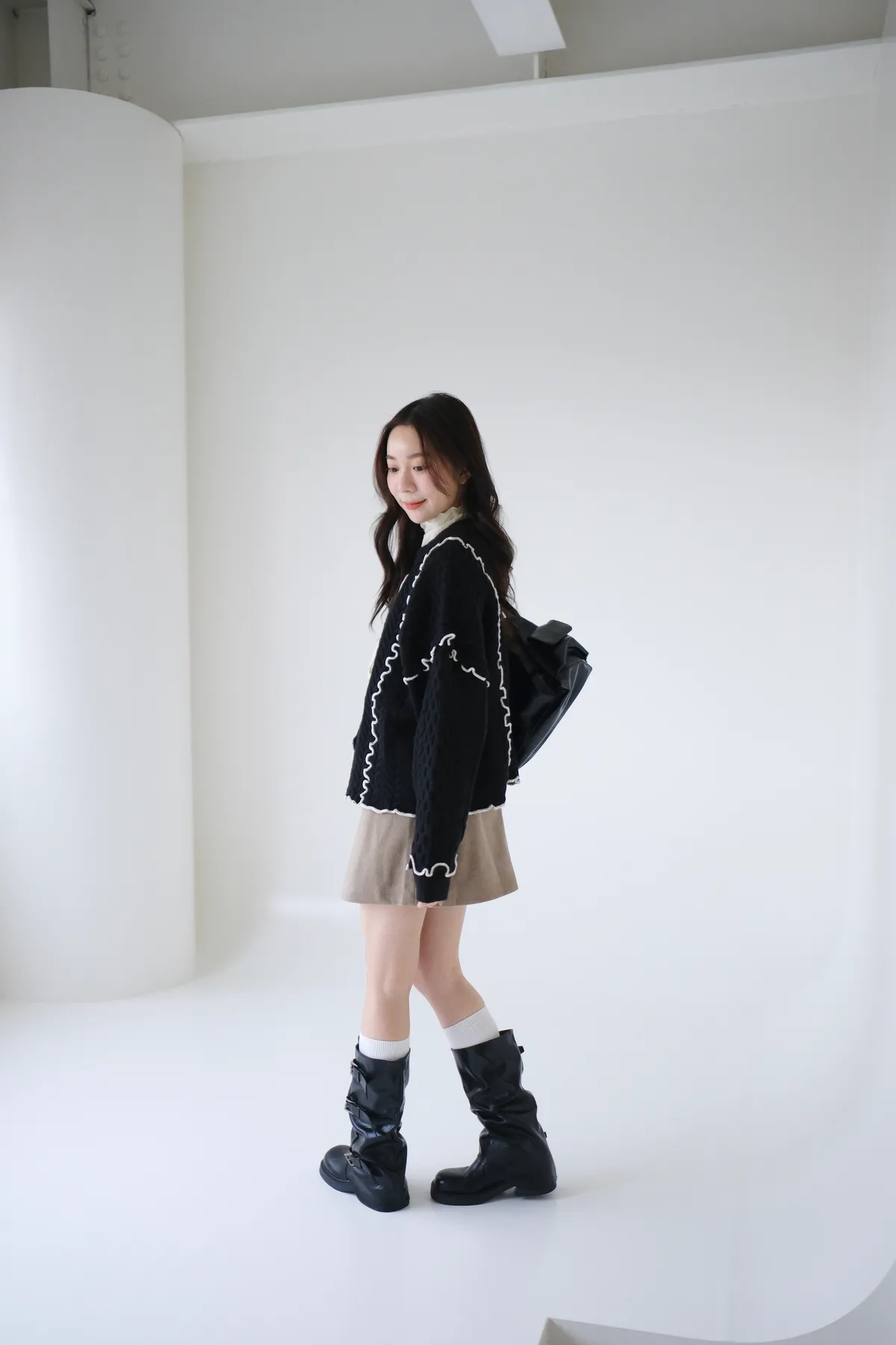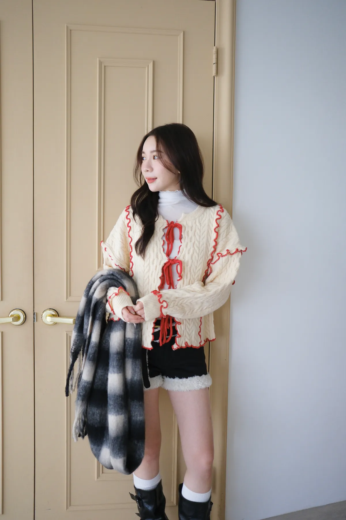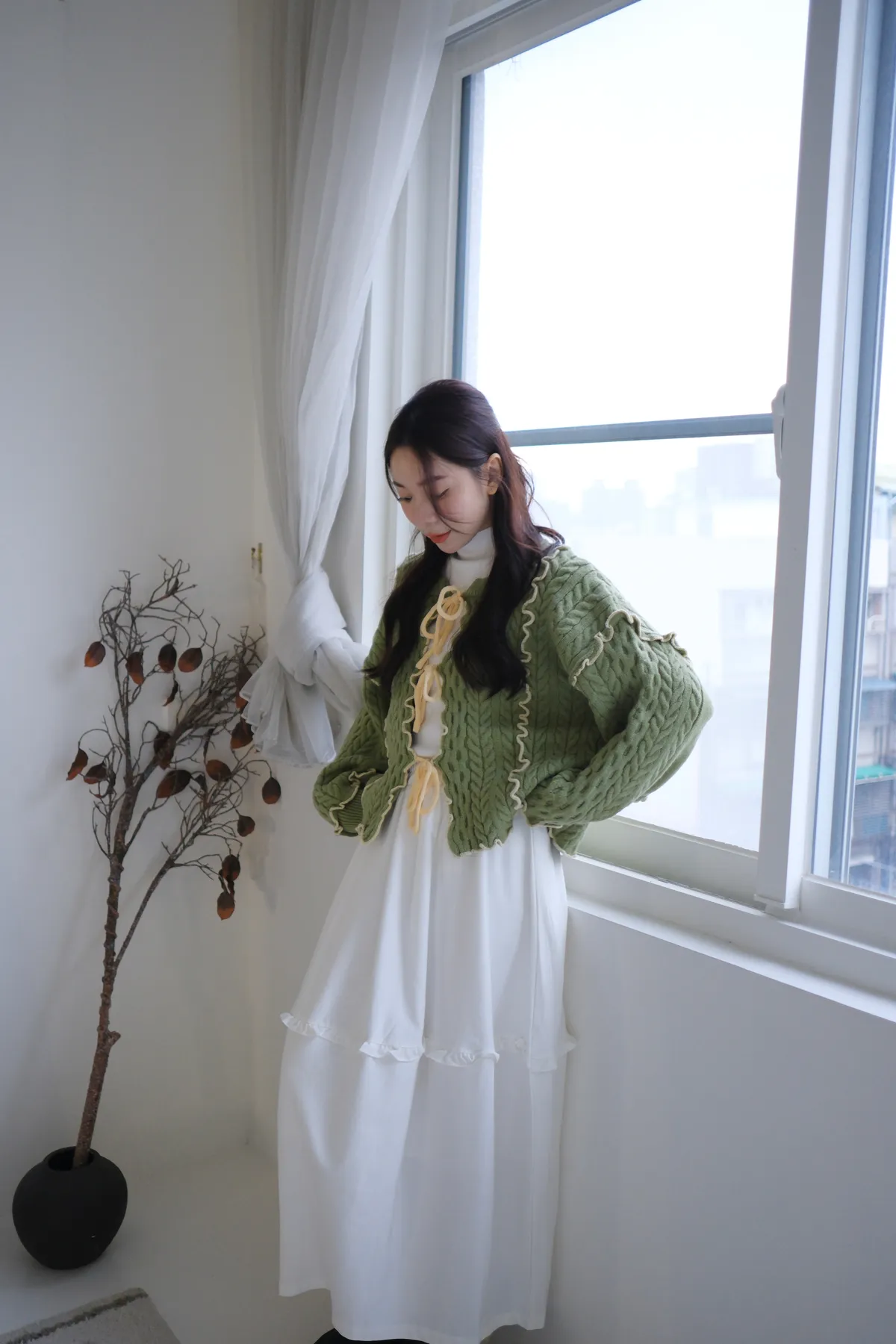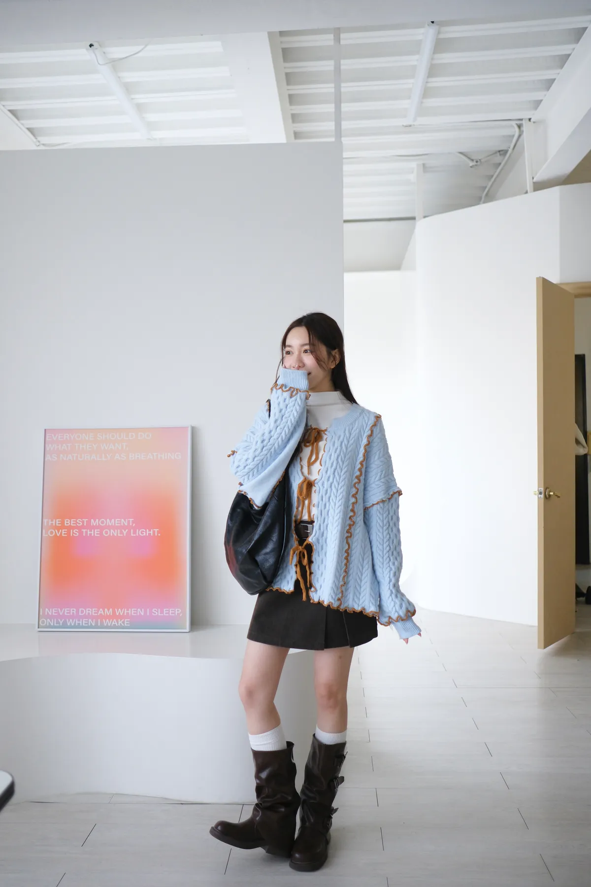 浪漫漩渦撞色綁帶毛衣