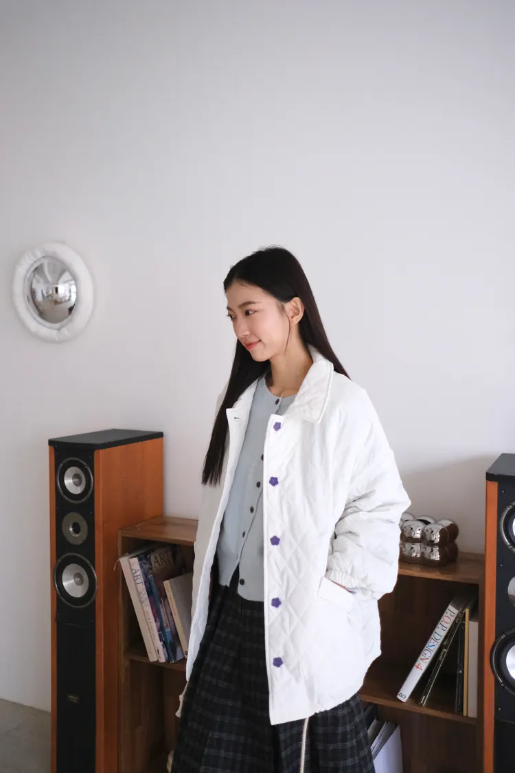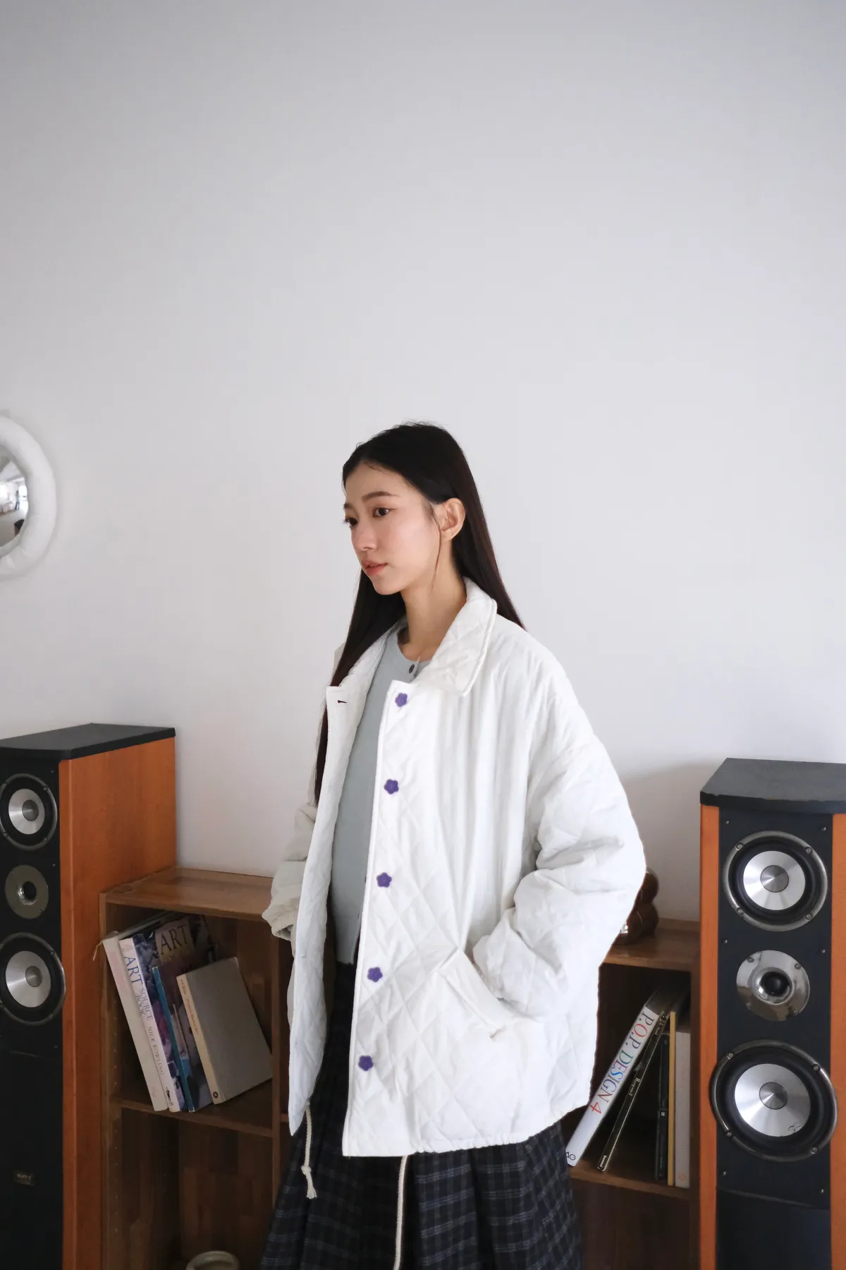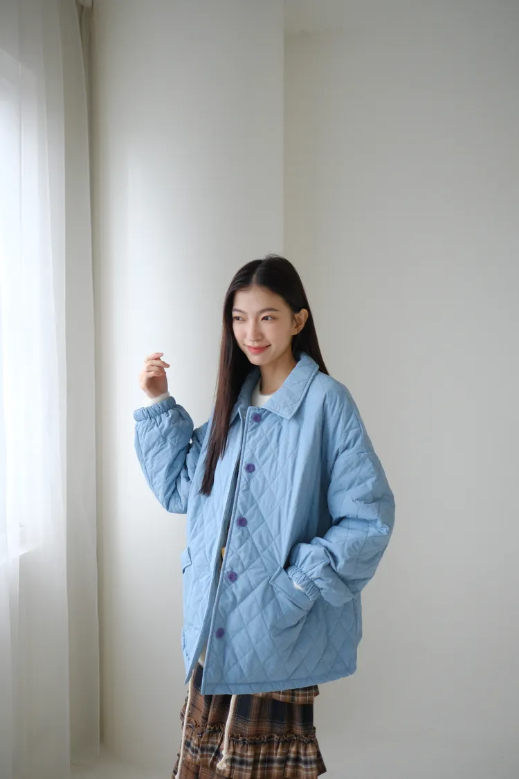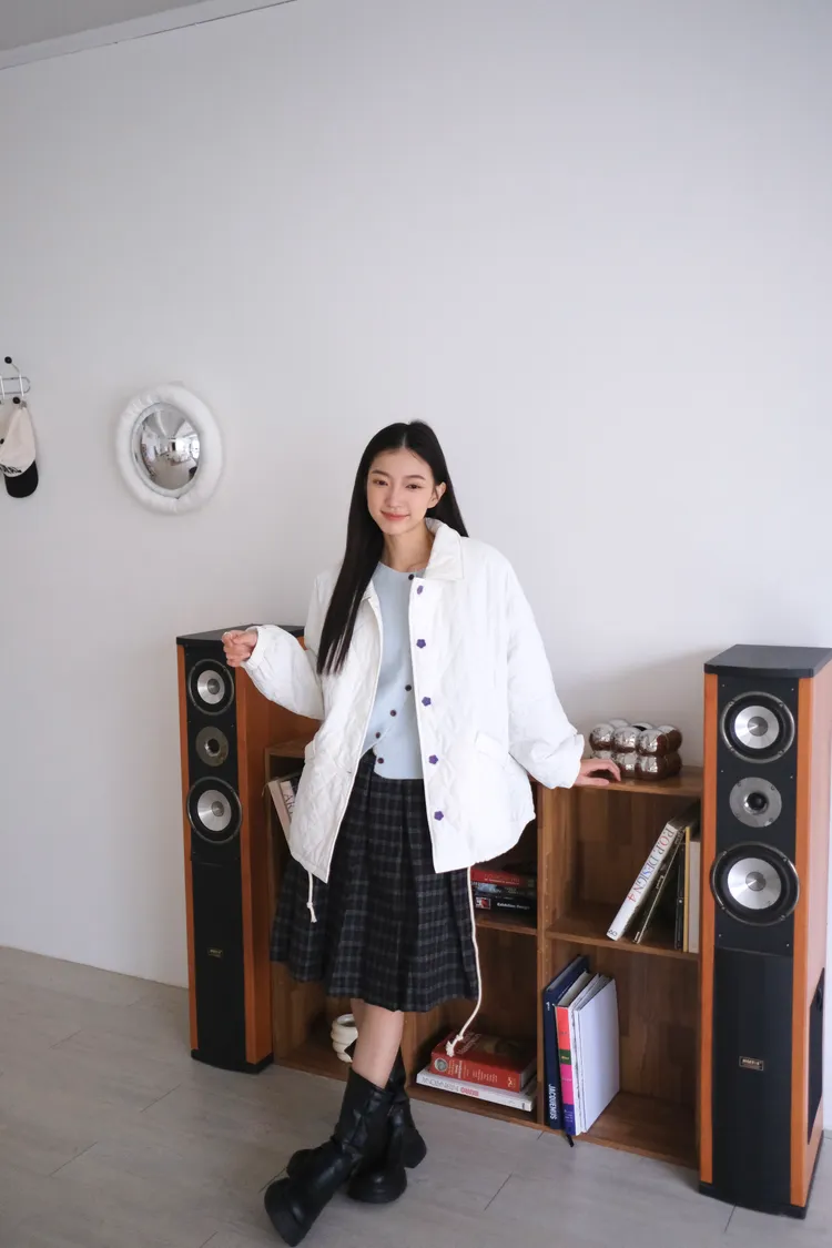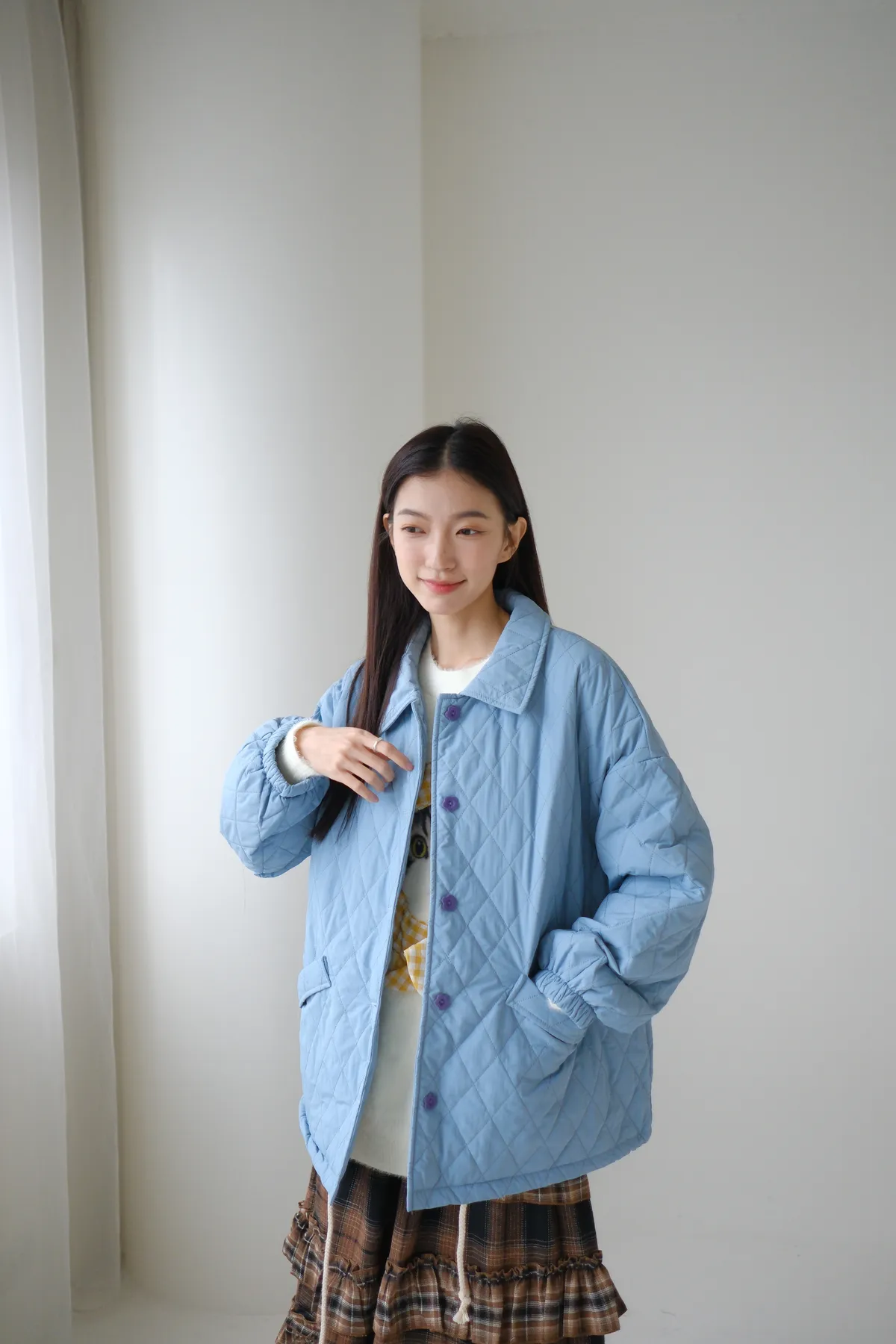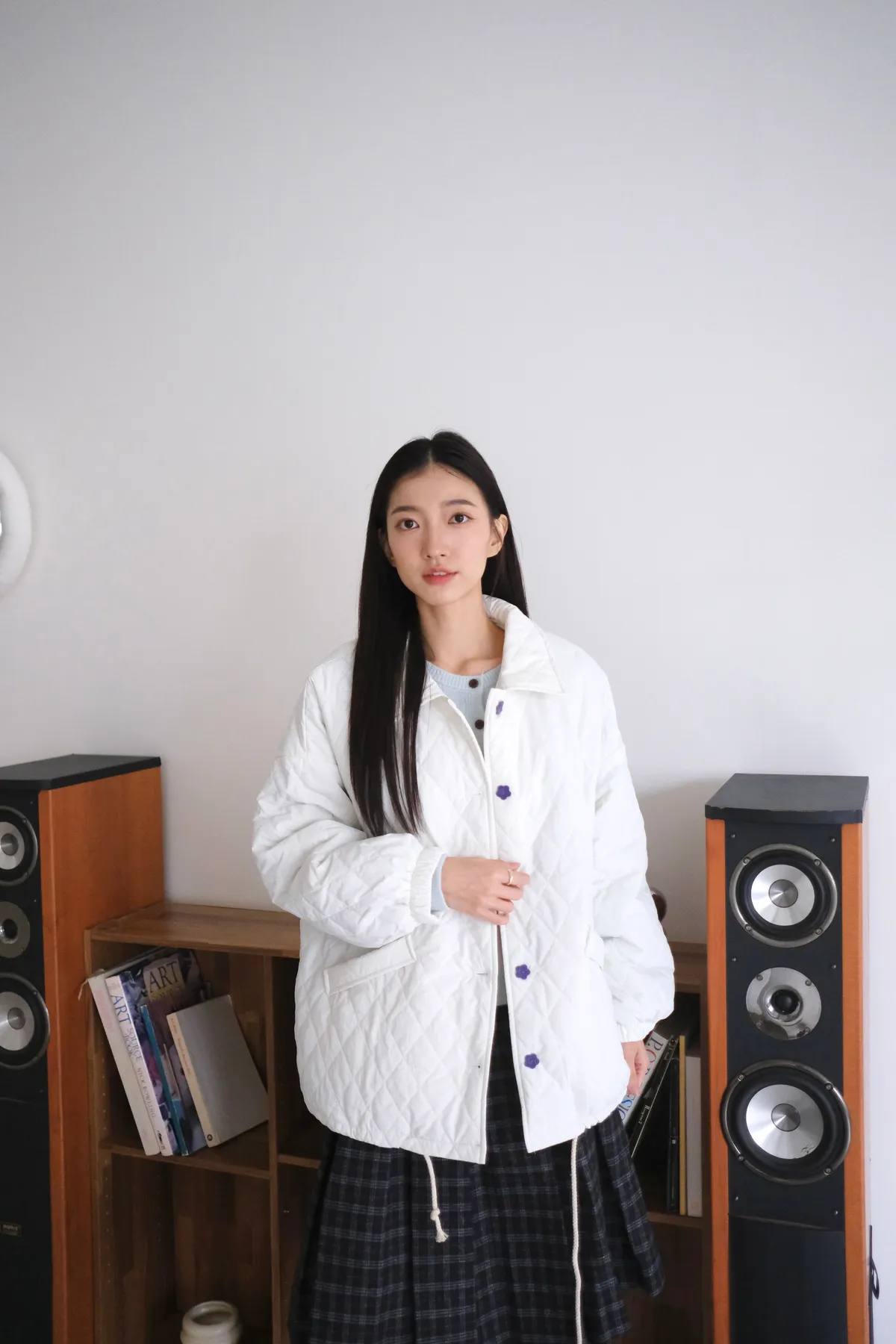 (單筆一件)小亮點✨小花釦菱格紋鋪棉外套