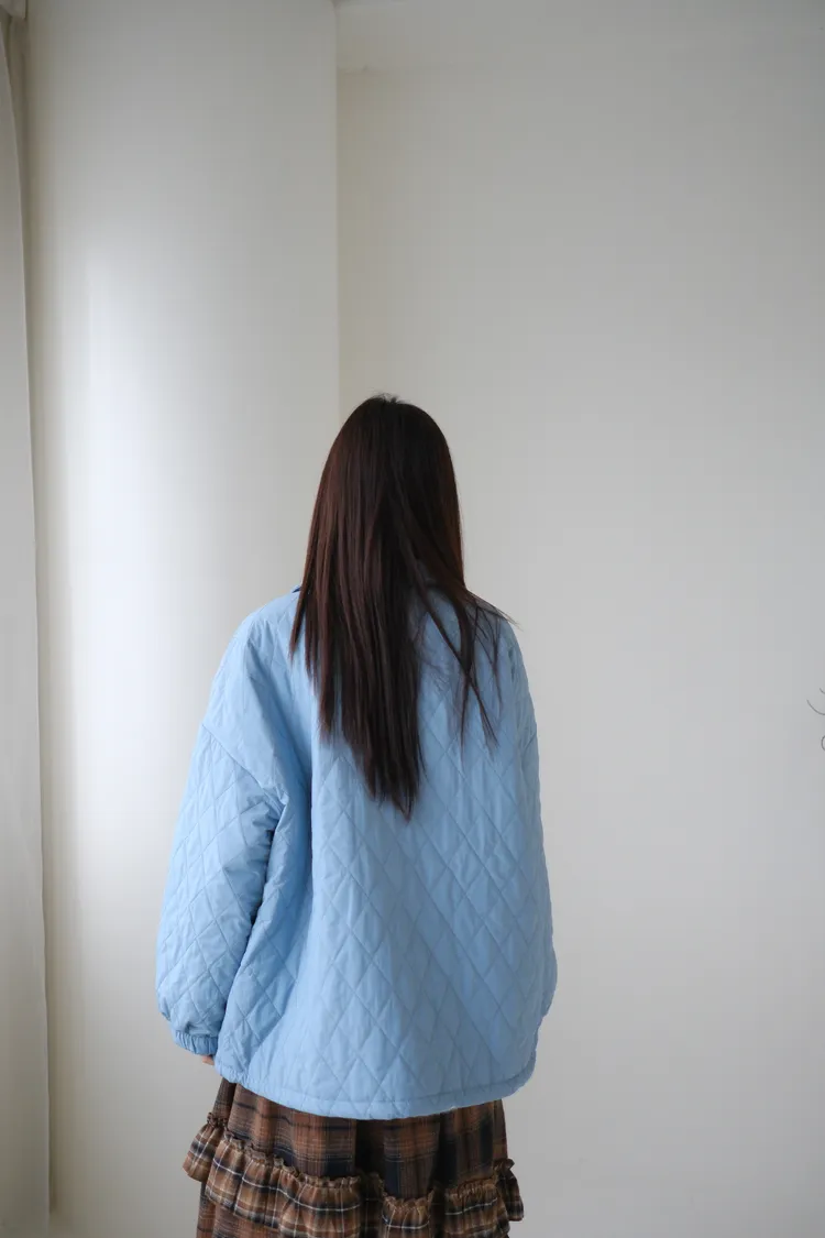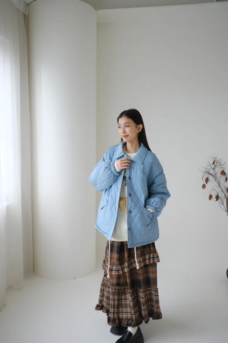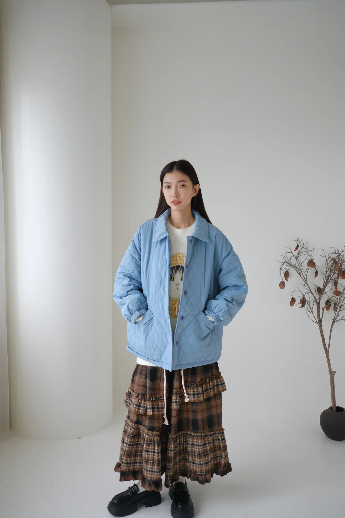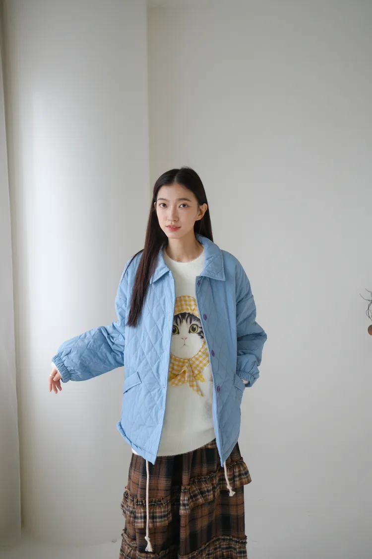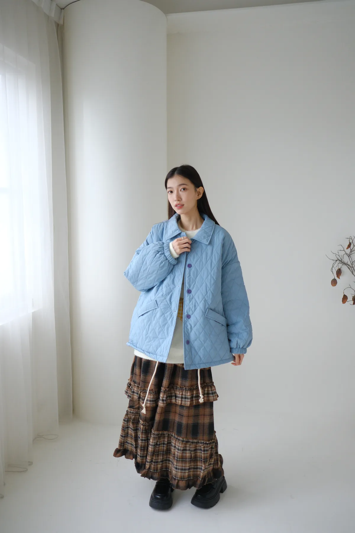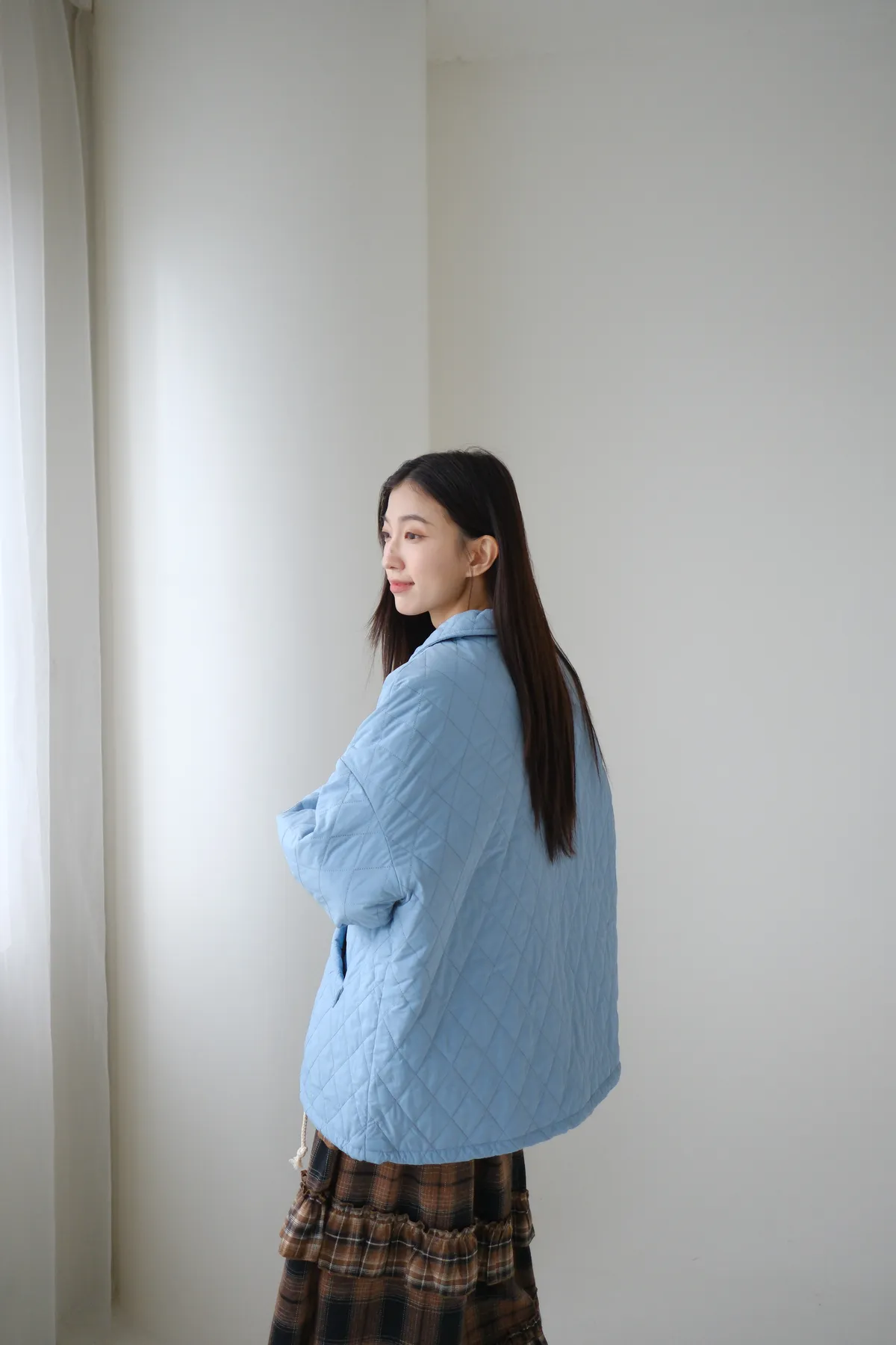 (單筆一件)小亮點✨小花釦菱格紋鋪棉外套