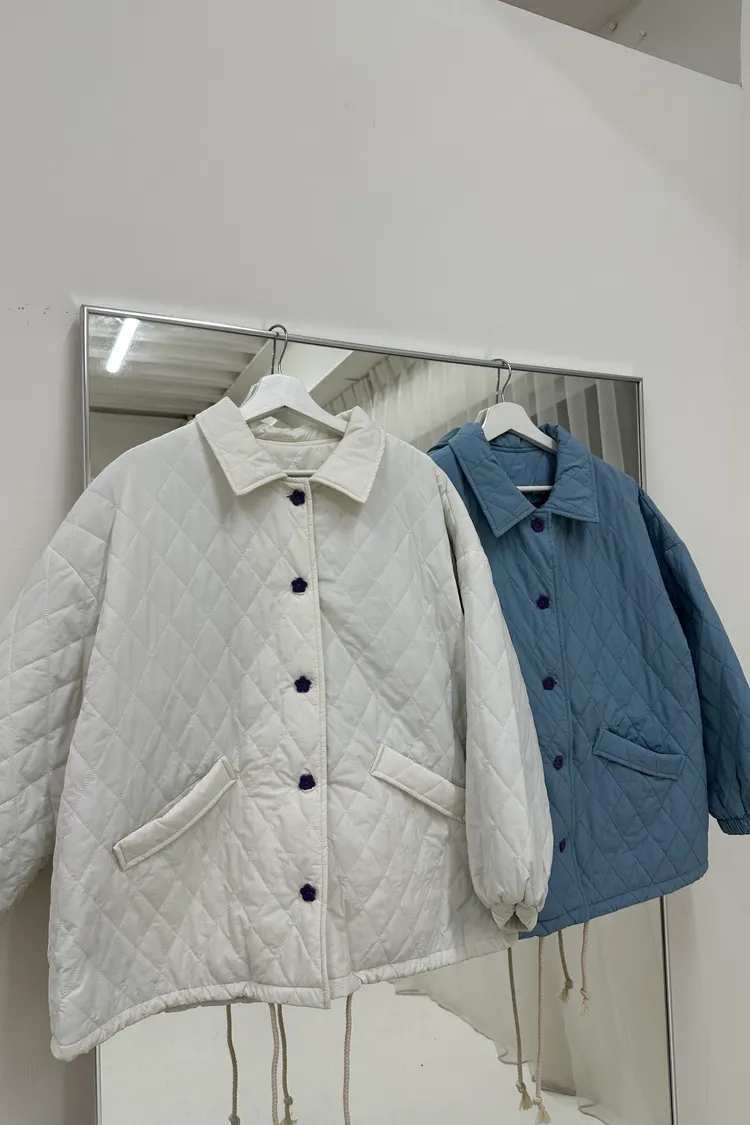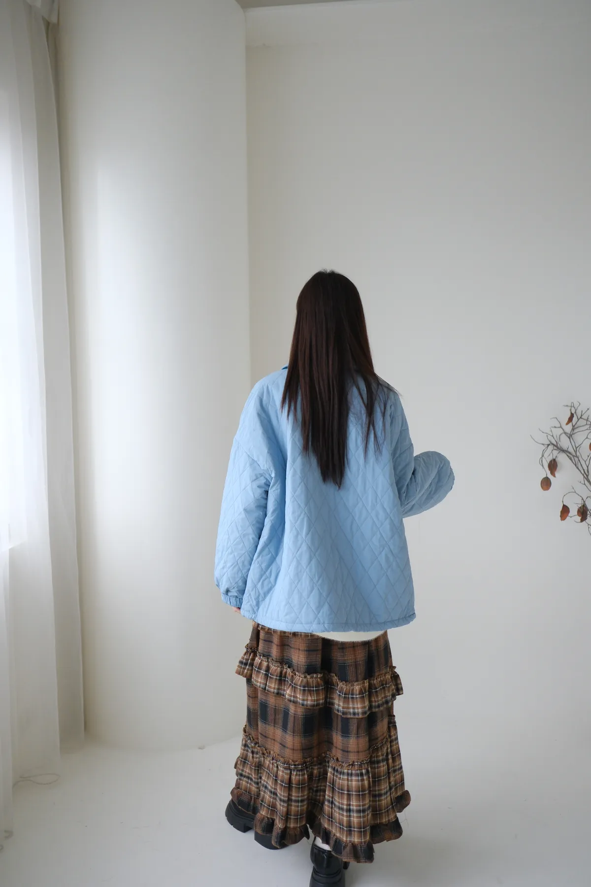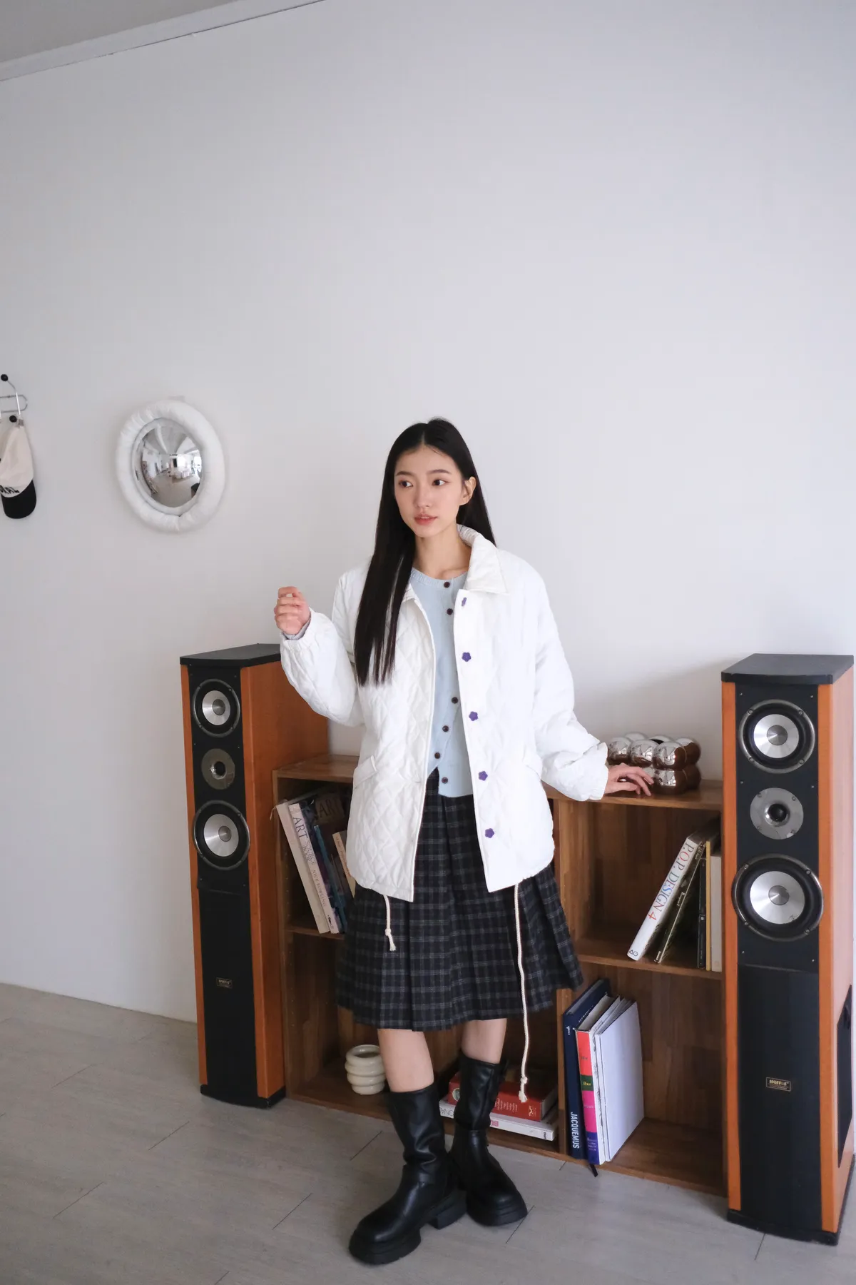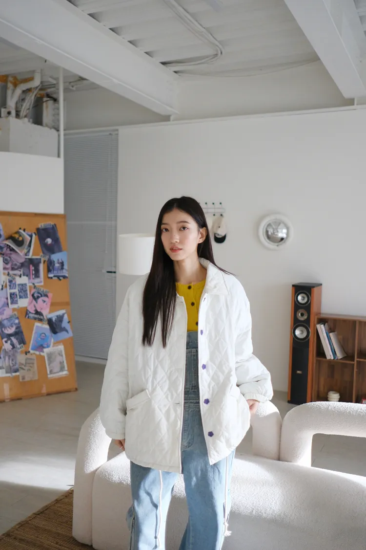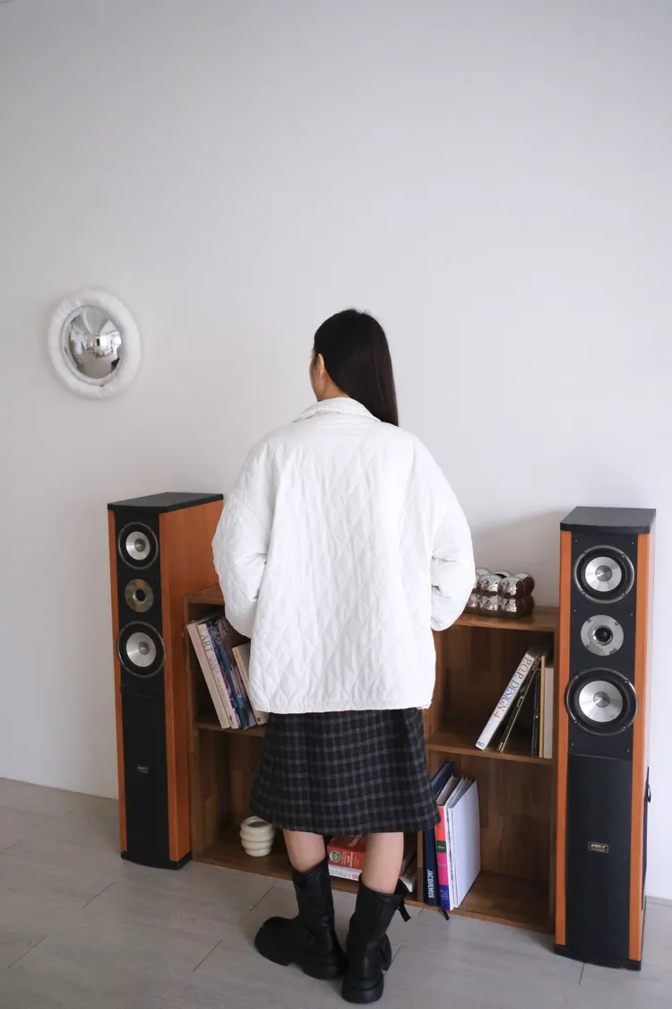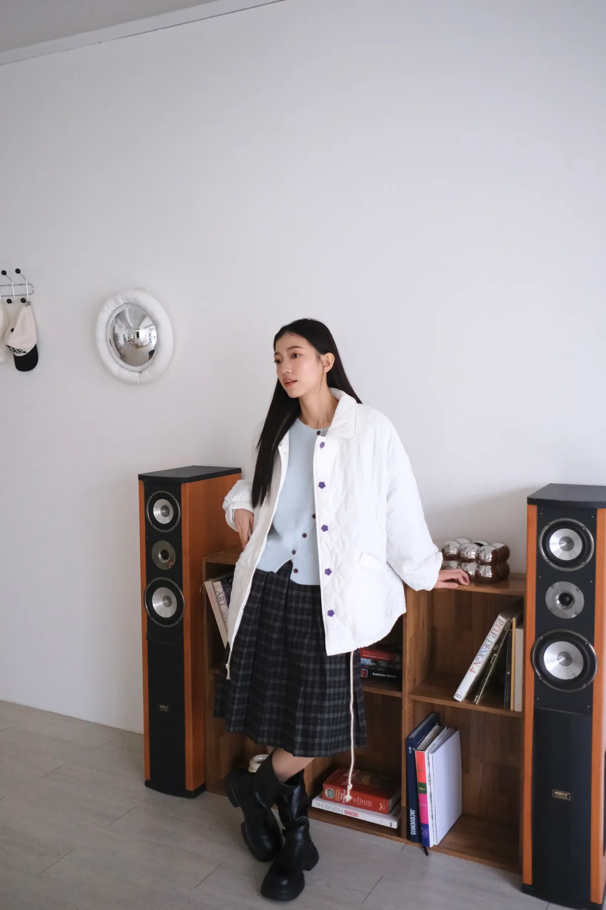 (單筆一件)小亮點✨小花釦菱格紋鋪棉外套