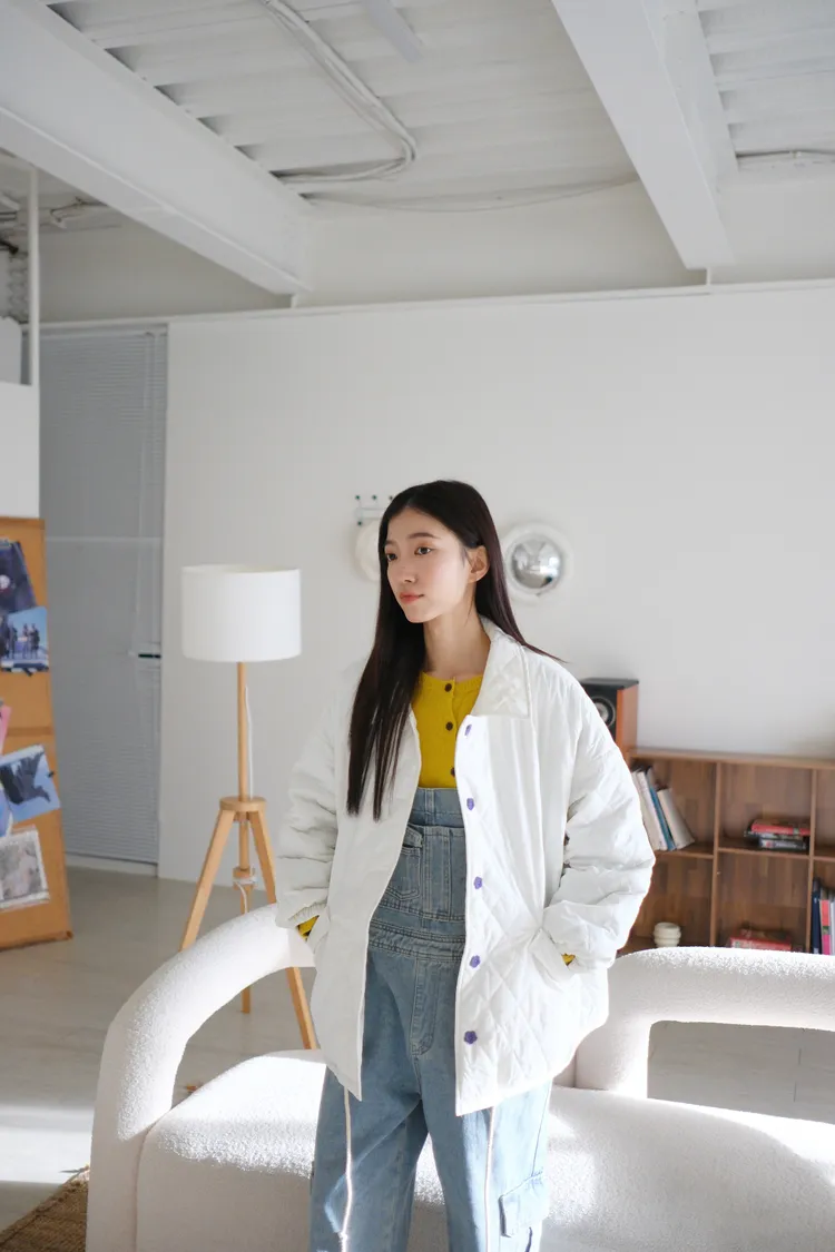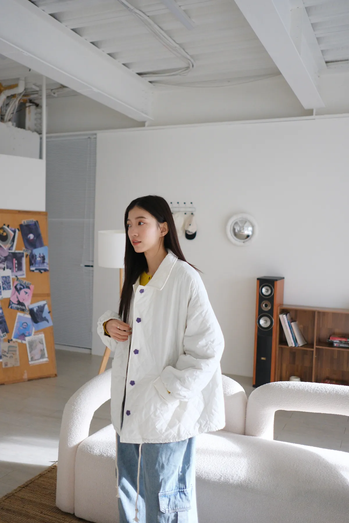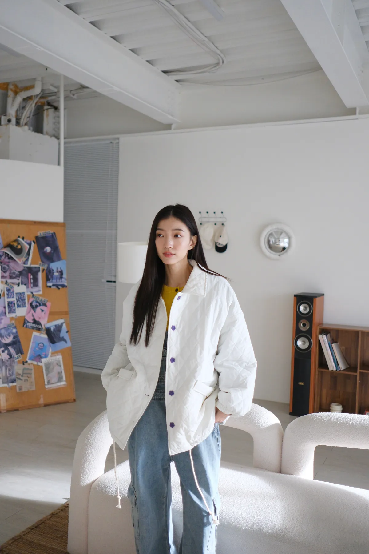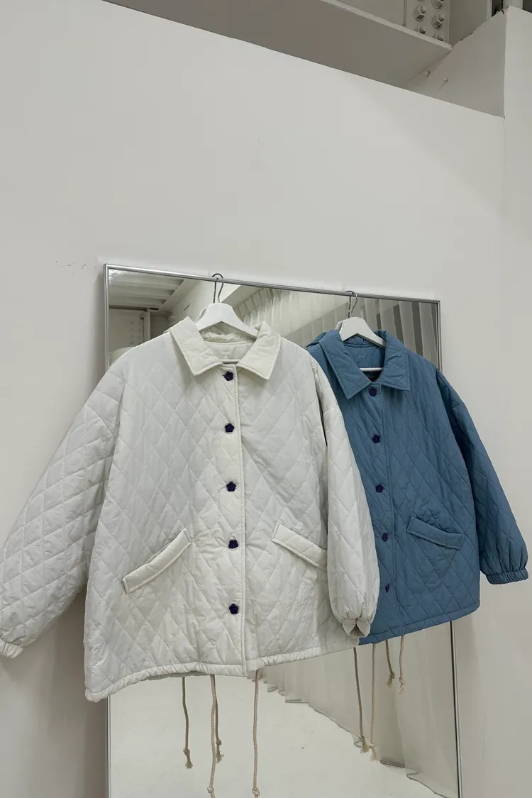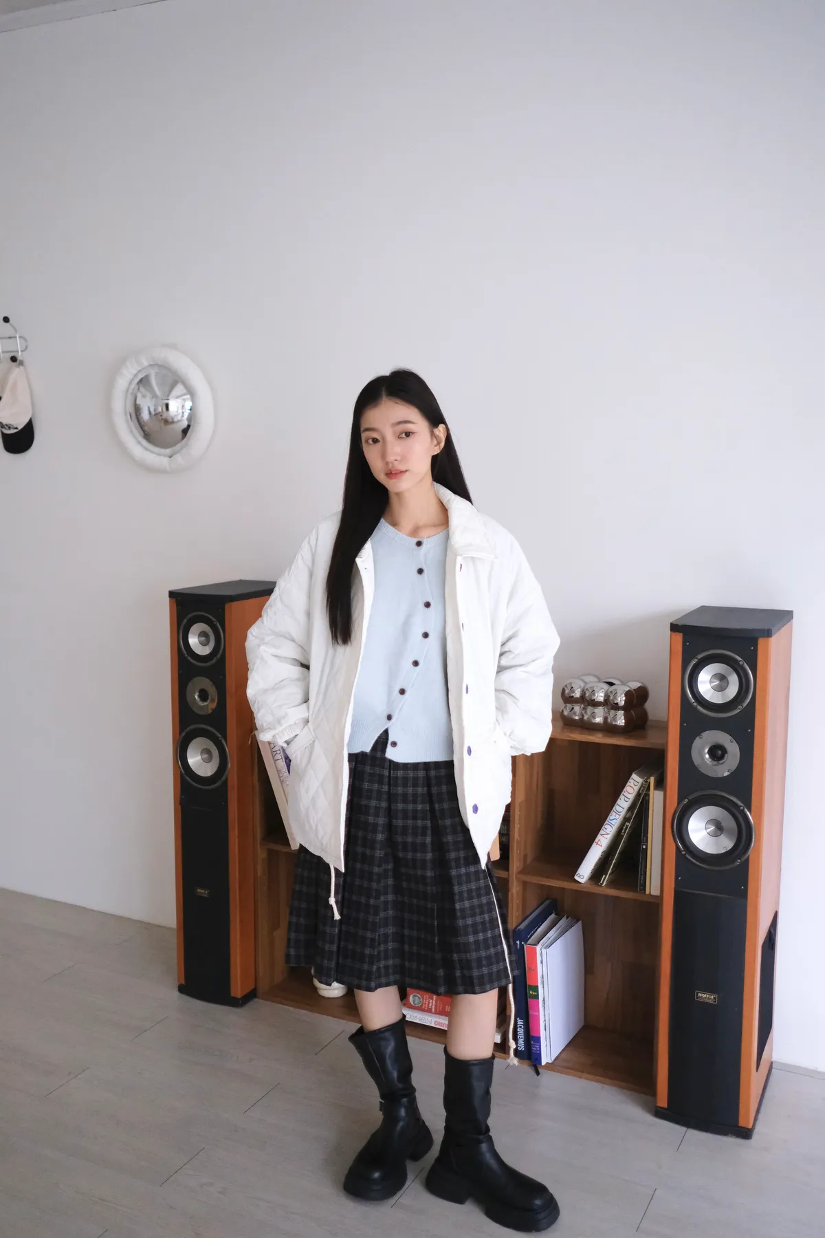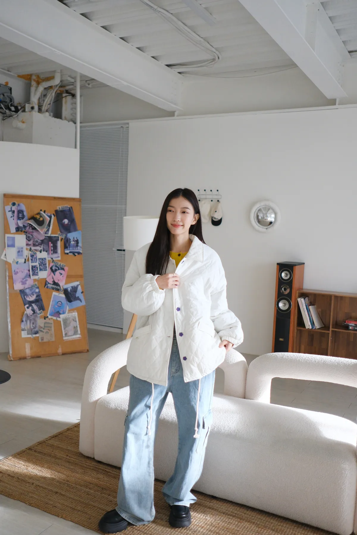 (單筆一件)小亮點✨小花釦菱格紋鋪棉外套