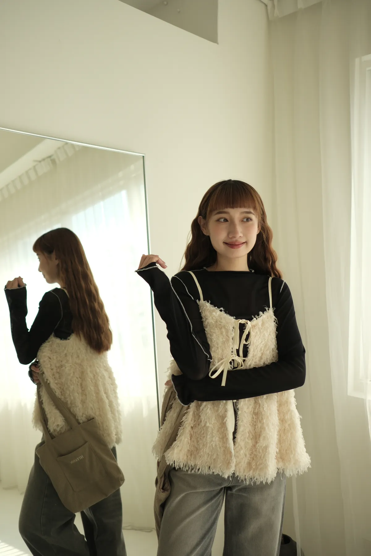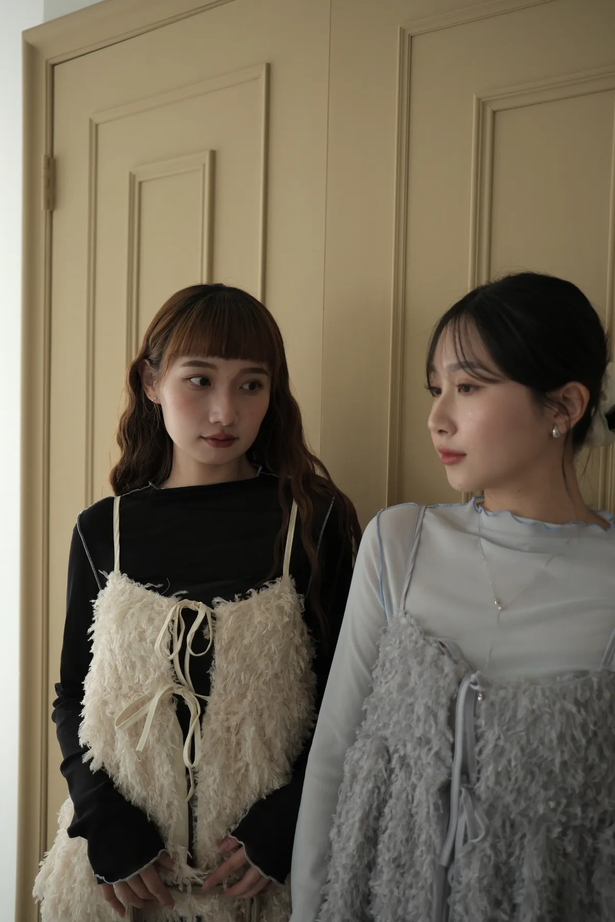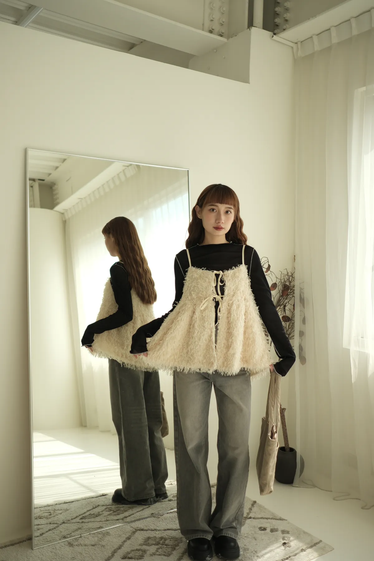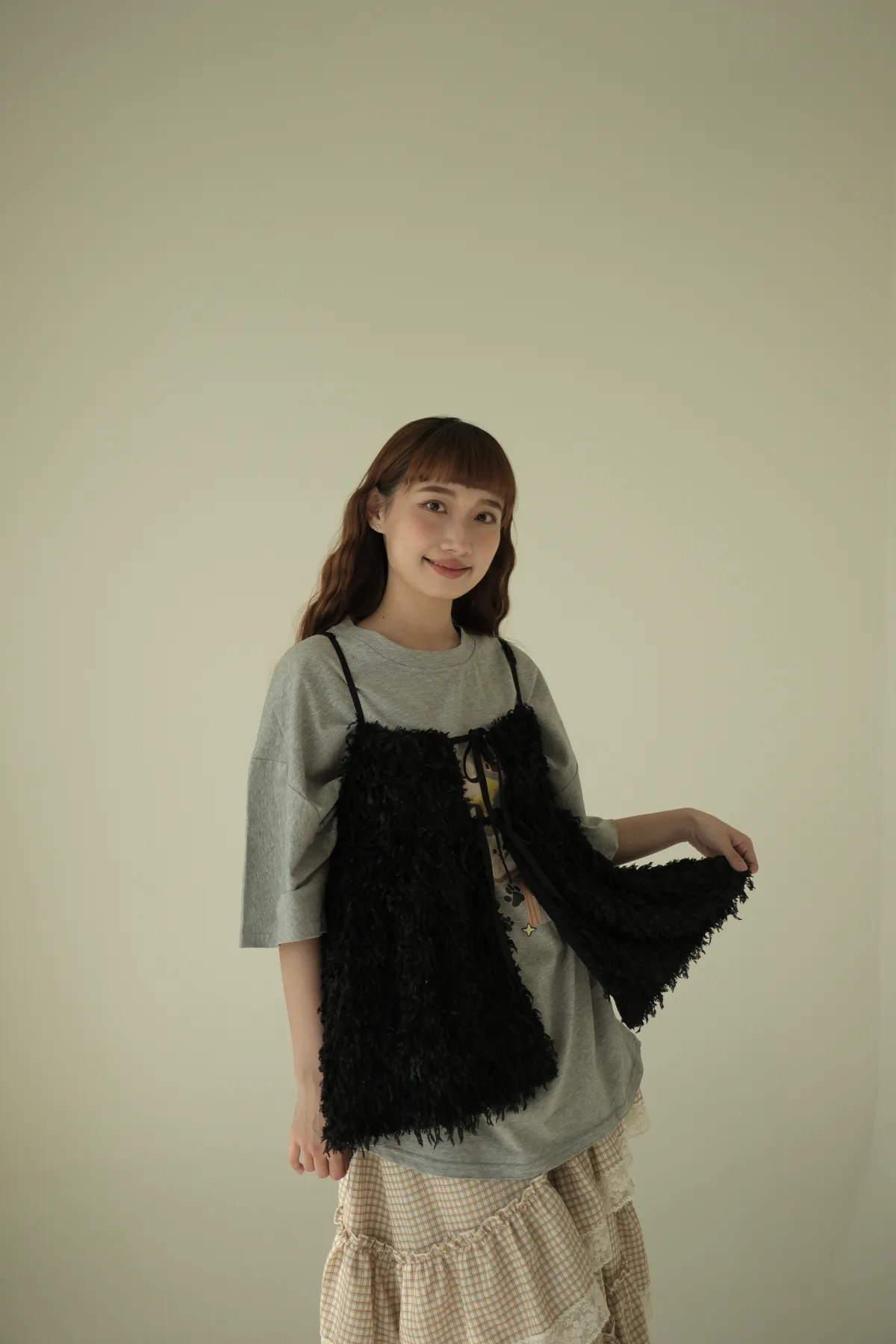 YY選品點綴浪漫羽毛系列[綁帶]長背心
