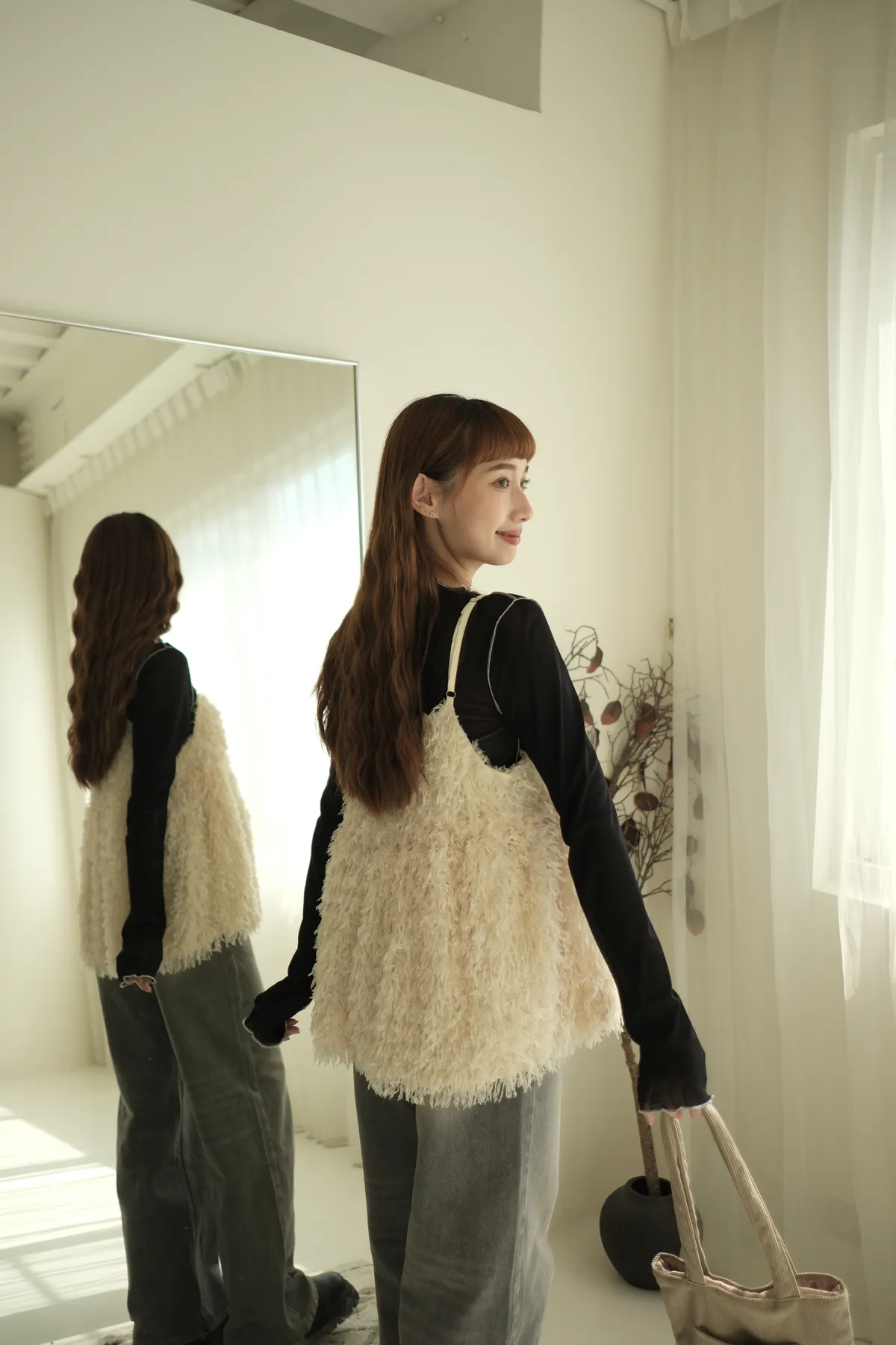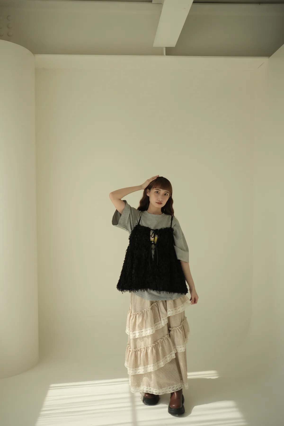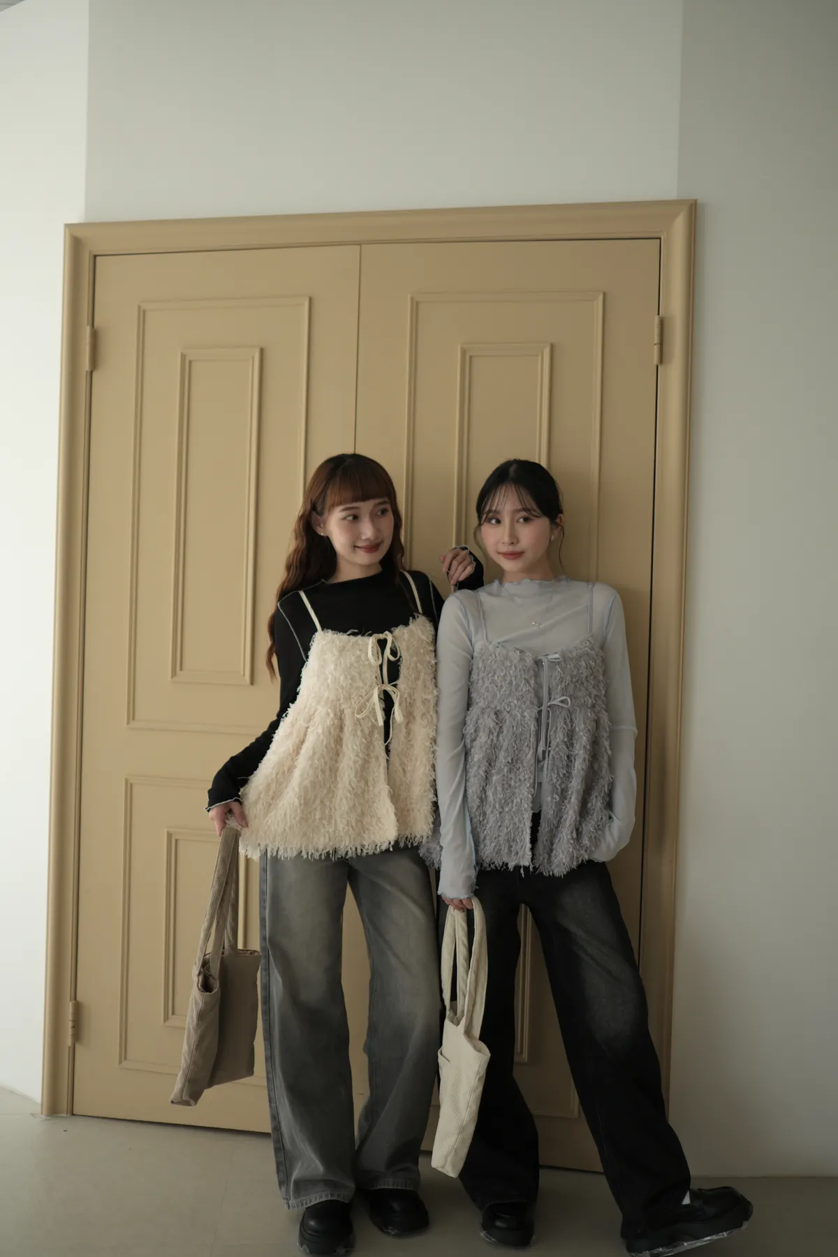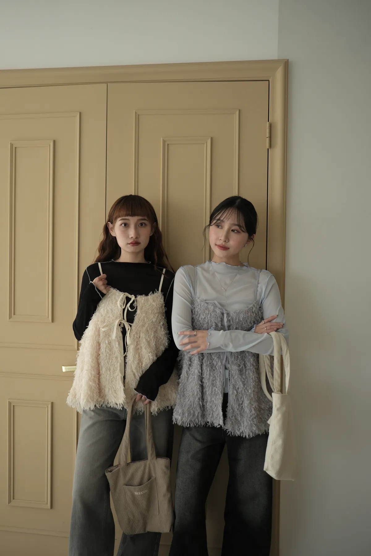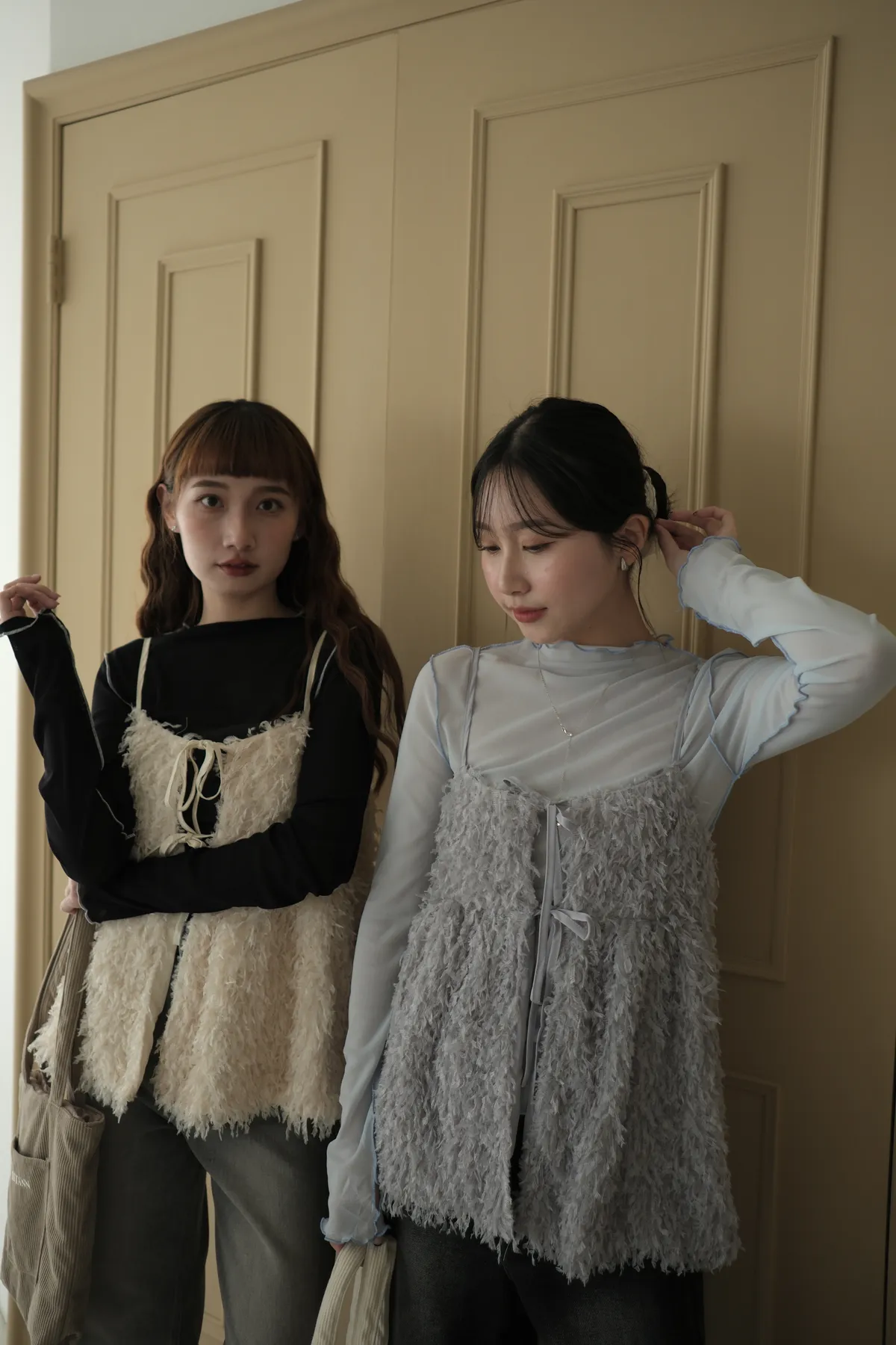 YY選品點綴浪漫羽毛系列[綁帶]長背心