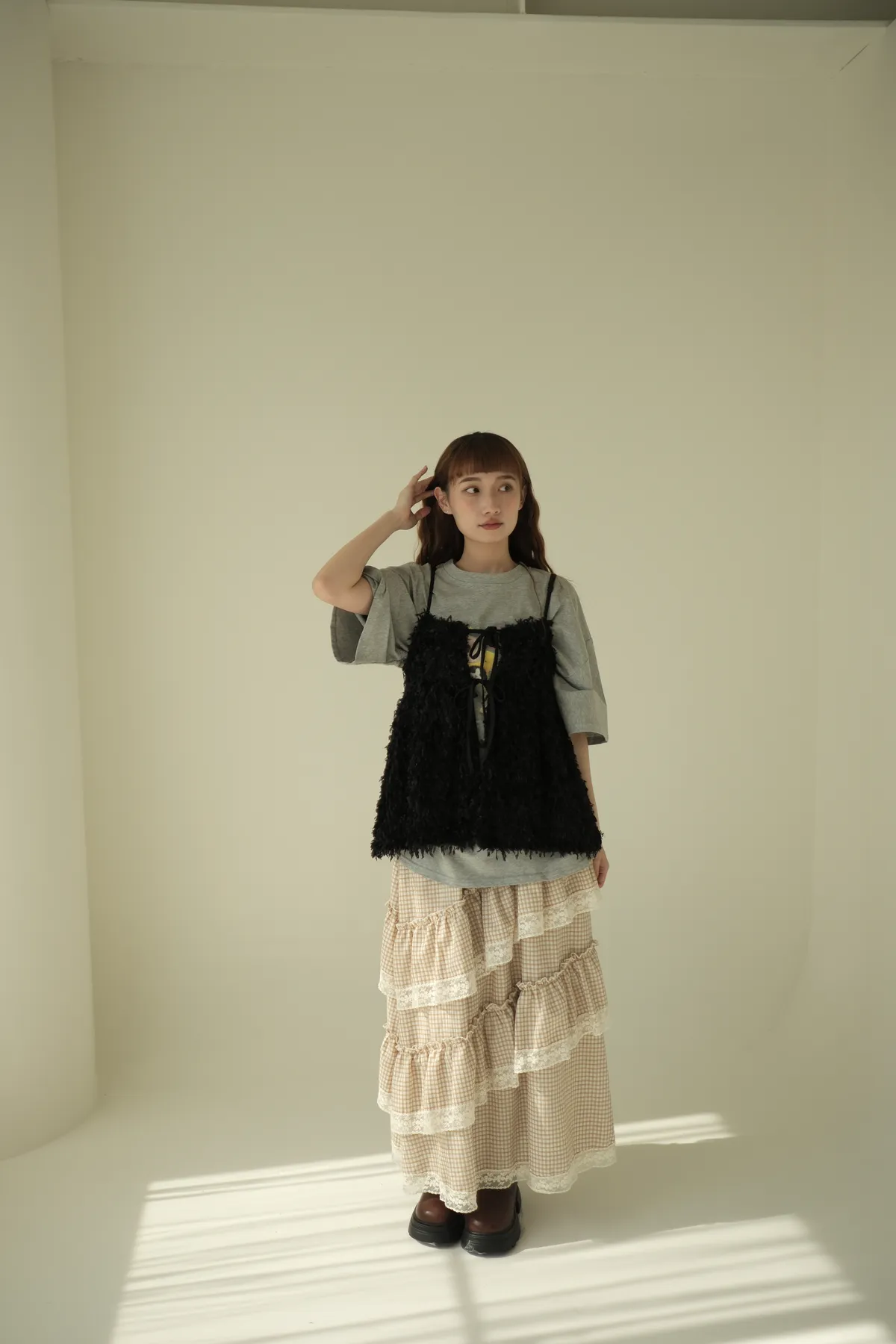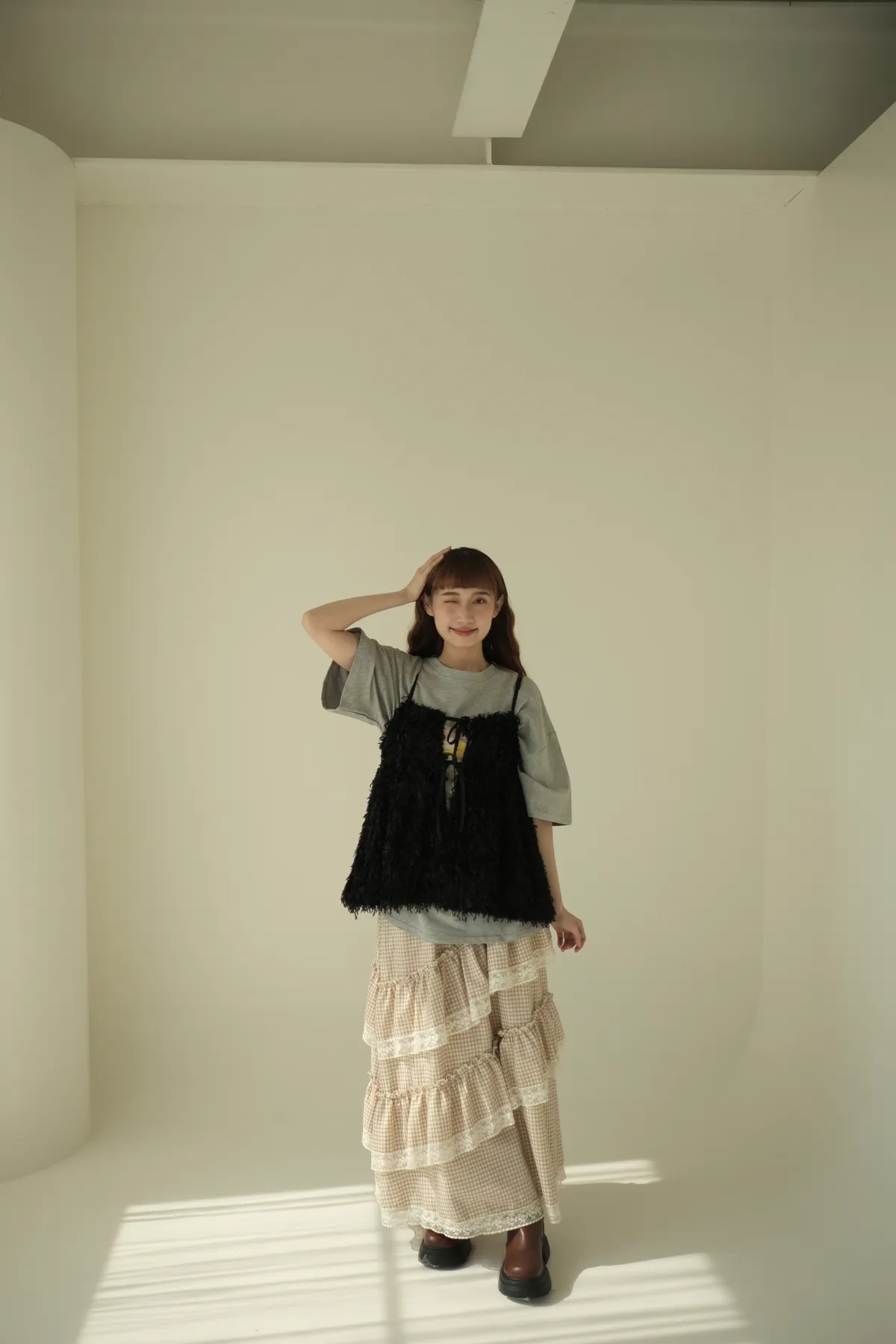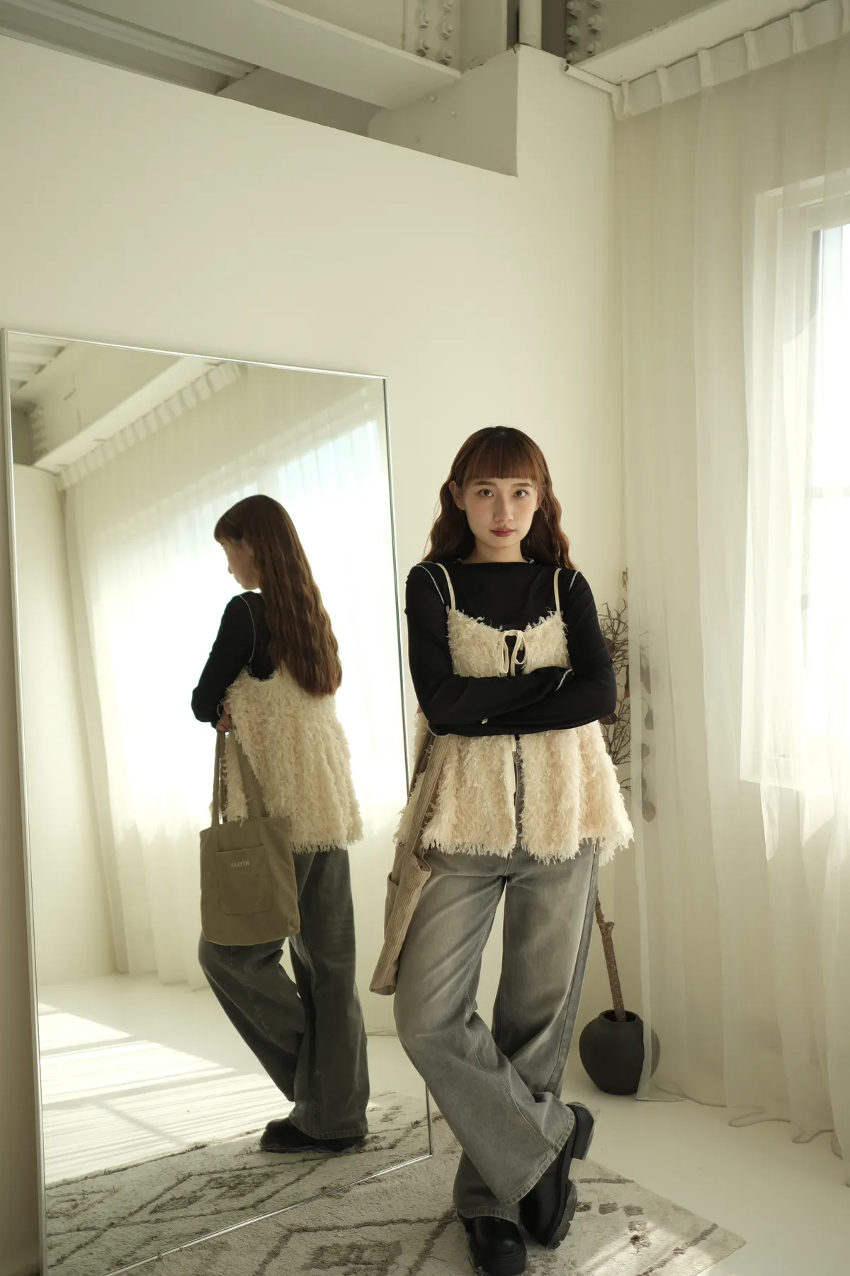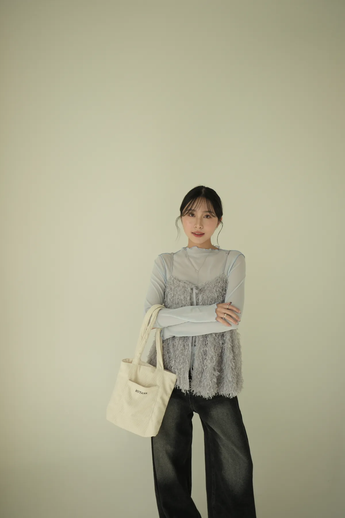 YY選品點綴浪漫羽毛系列[綁帶]長背心