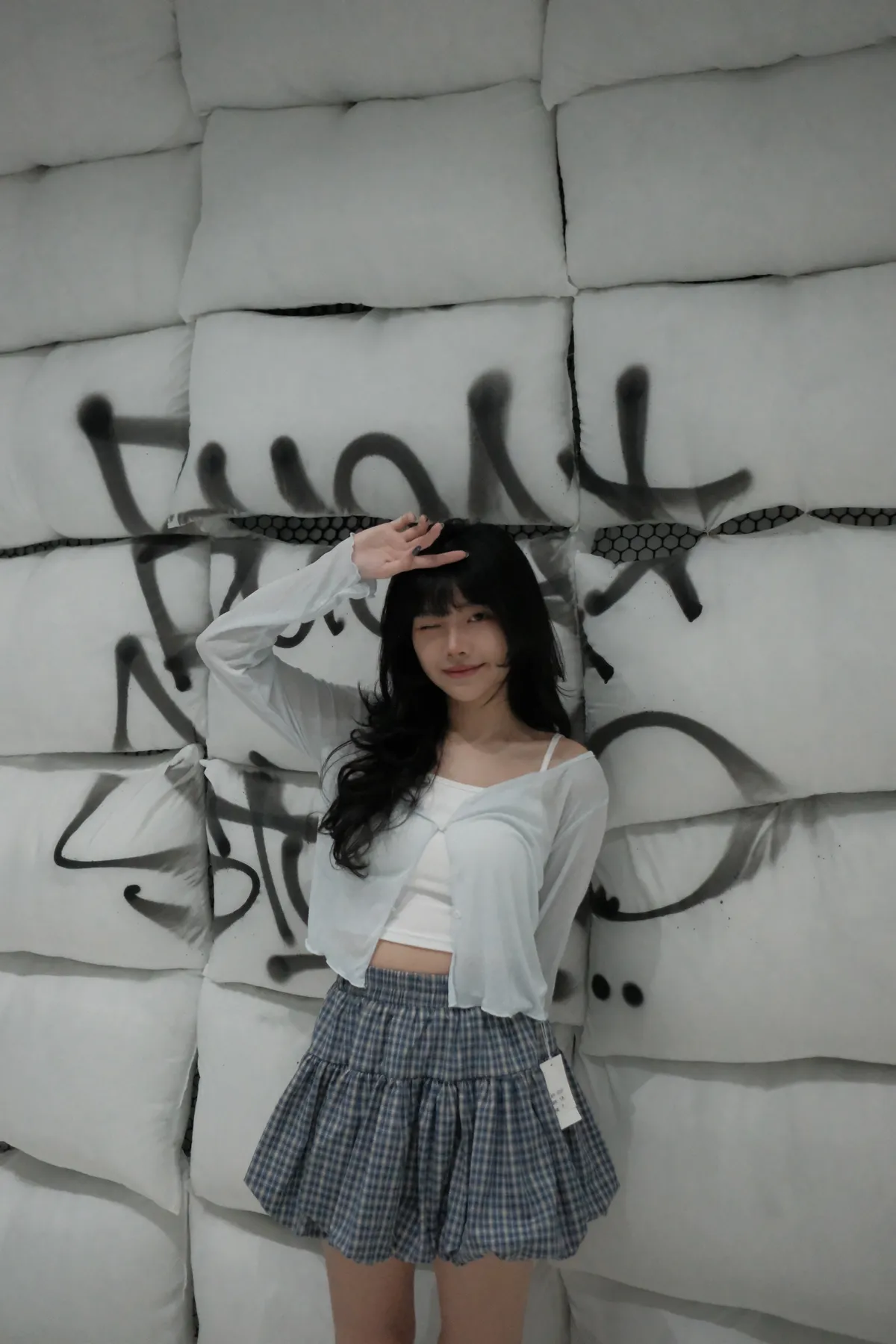 回到18歲格紋氣球短裙