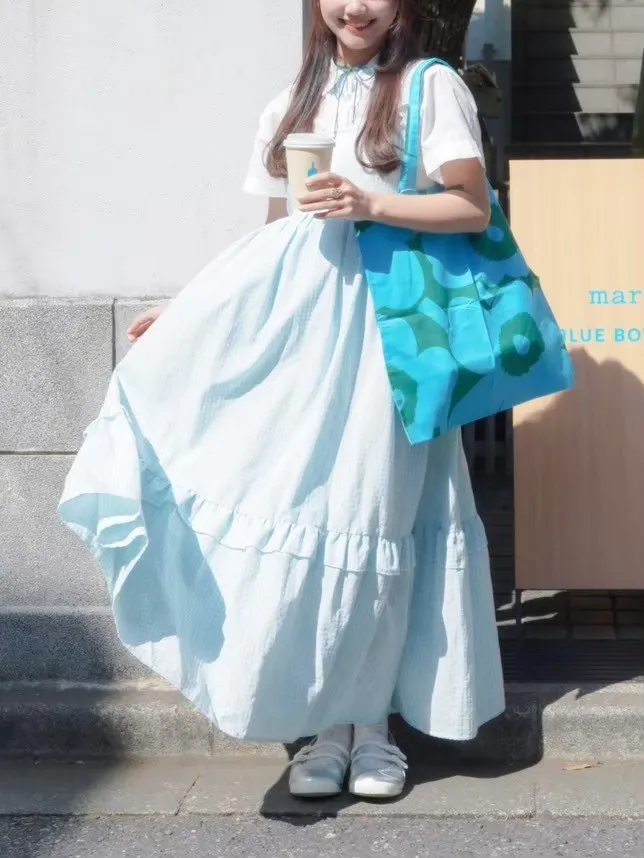 姿佑選品 - 今年大推!夏季繽紛樂格紋荷葉長洋裝