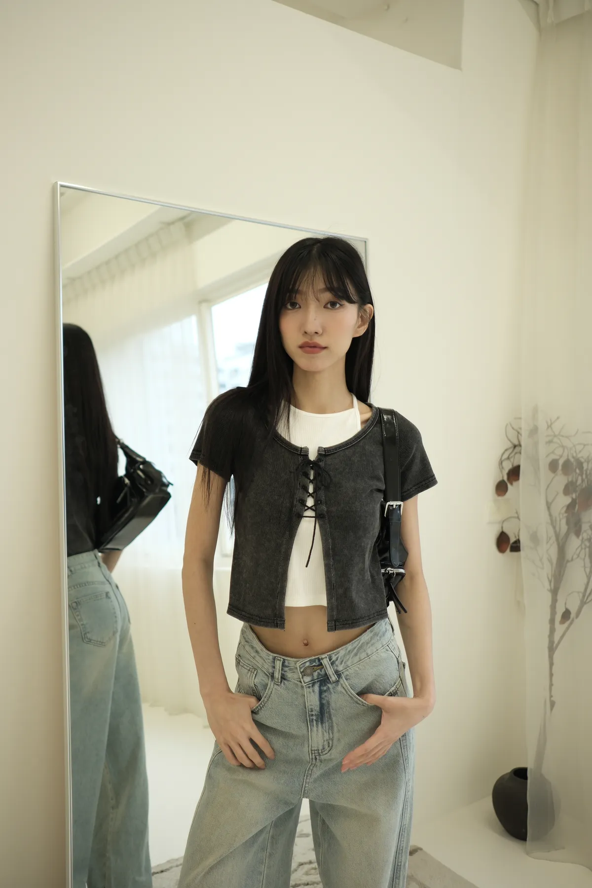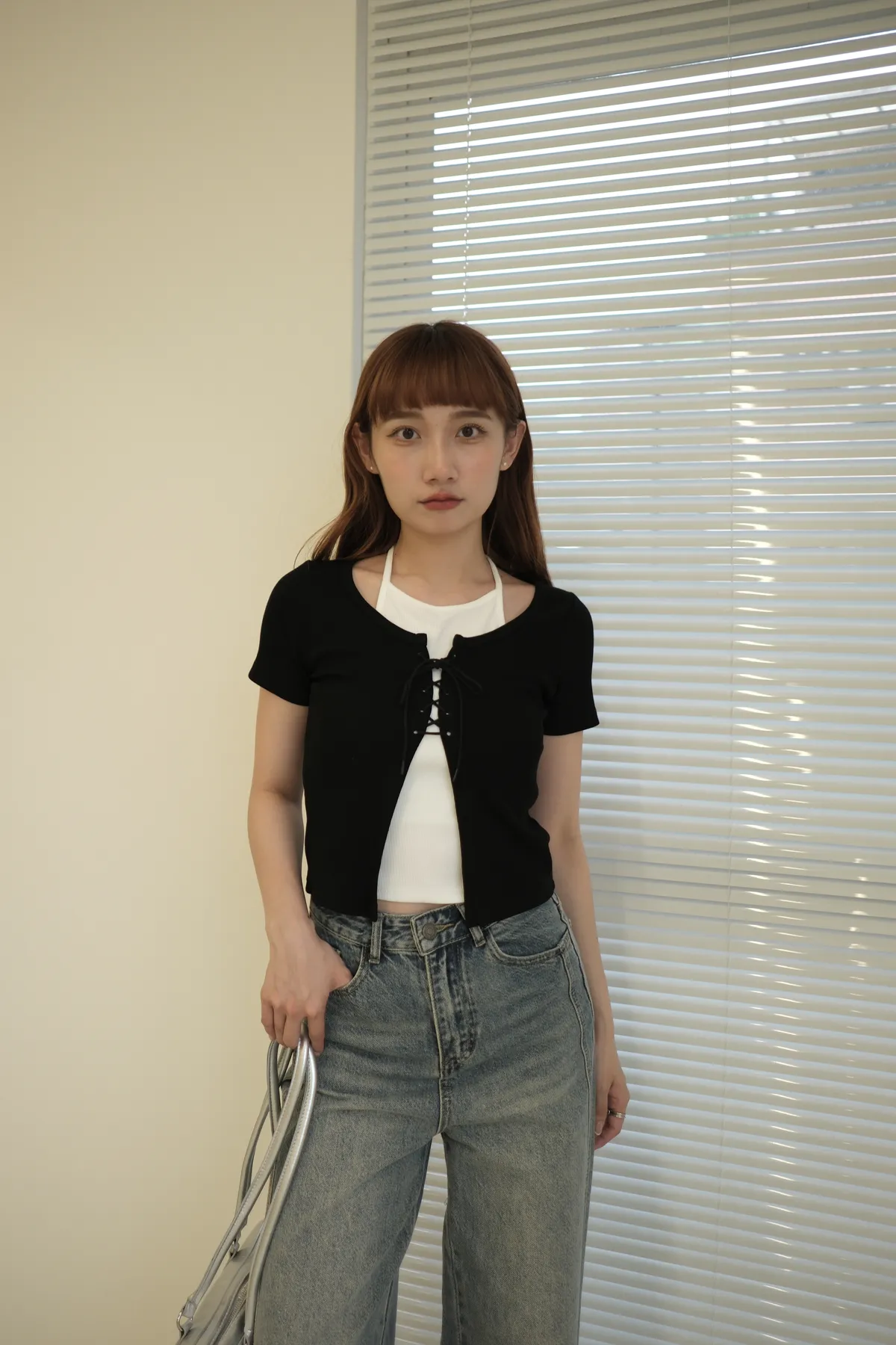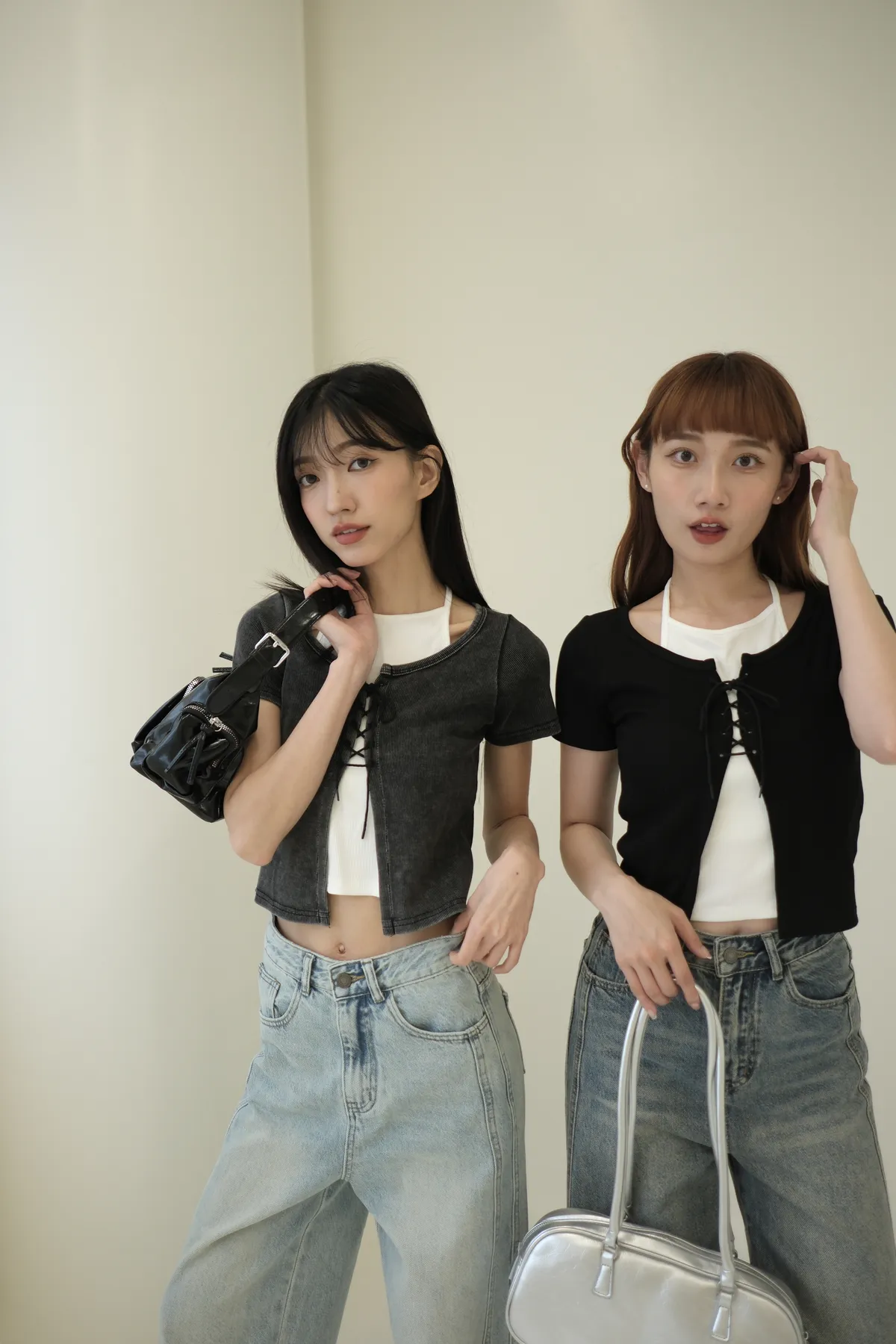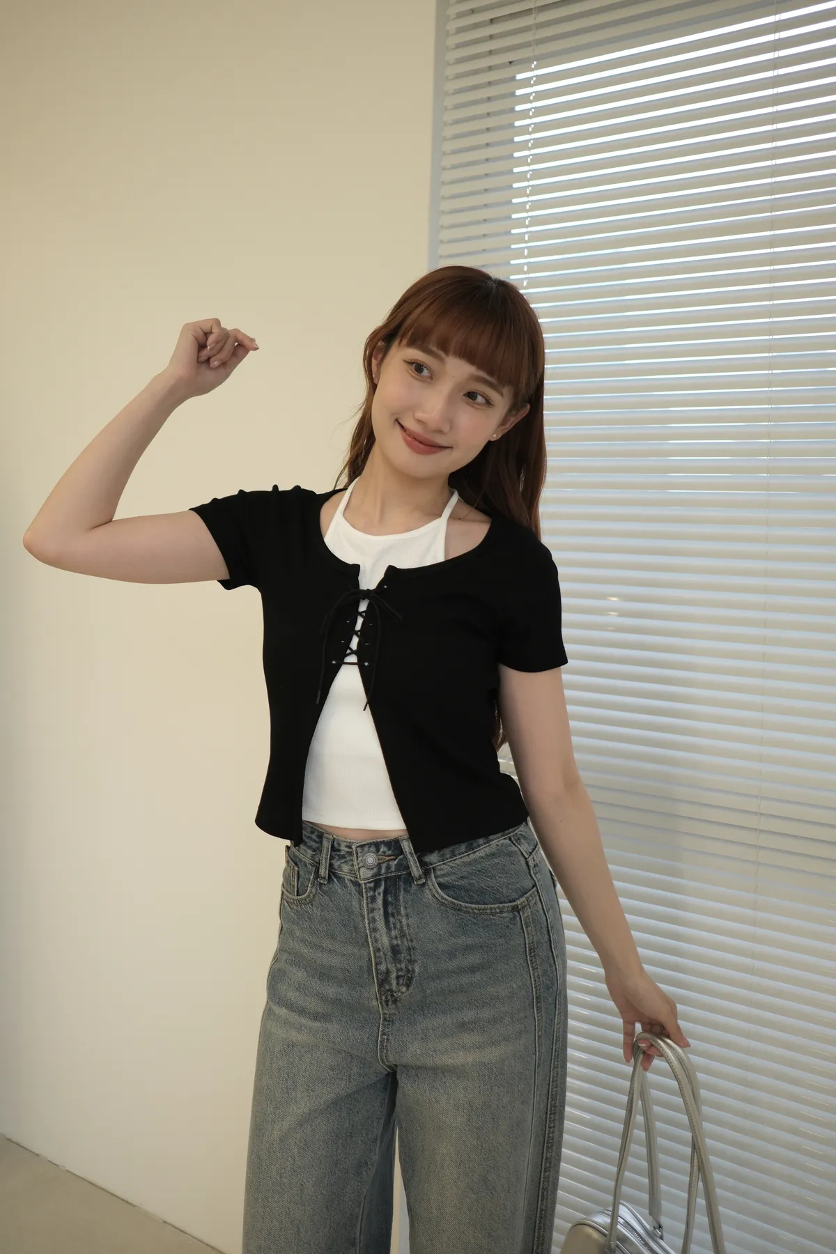 大推!微辣氛圍綁繩繞脖假兩件式上衣