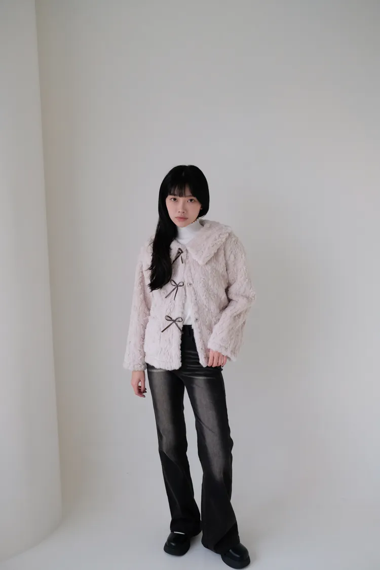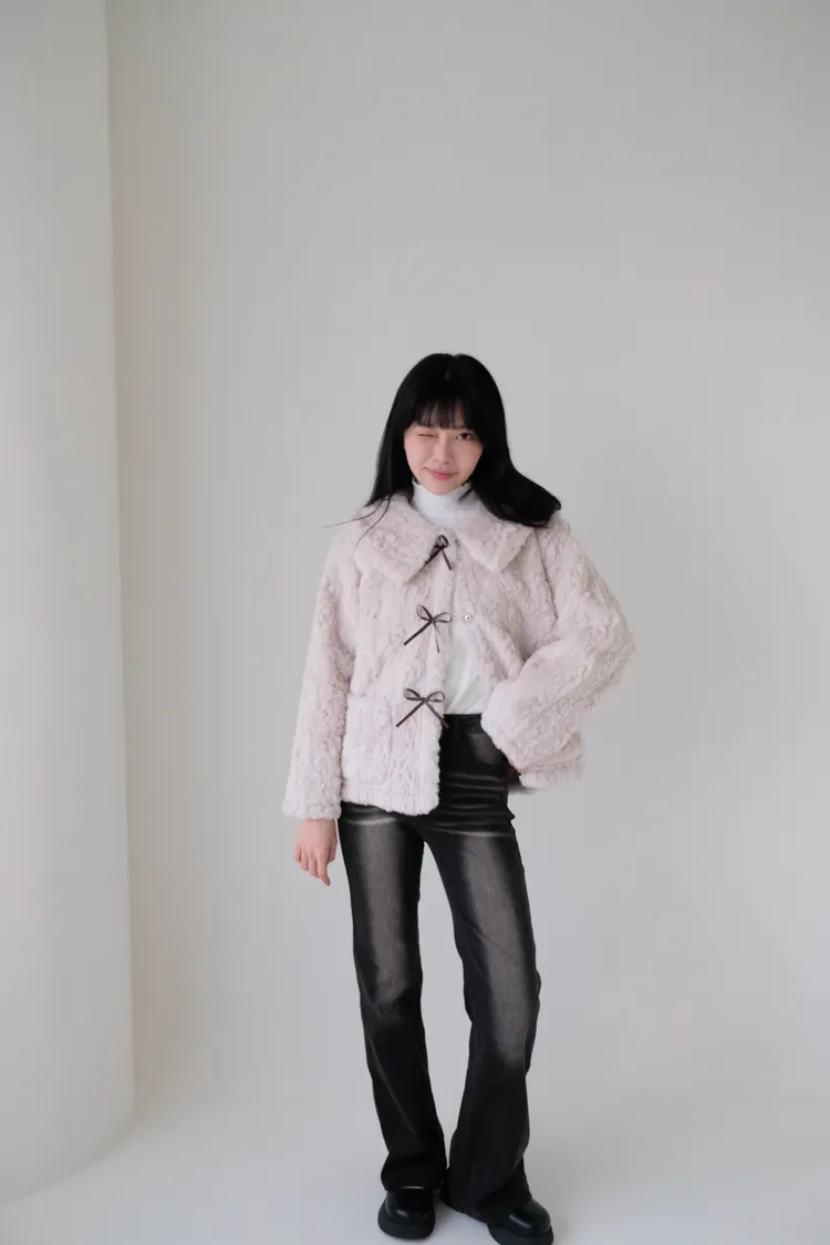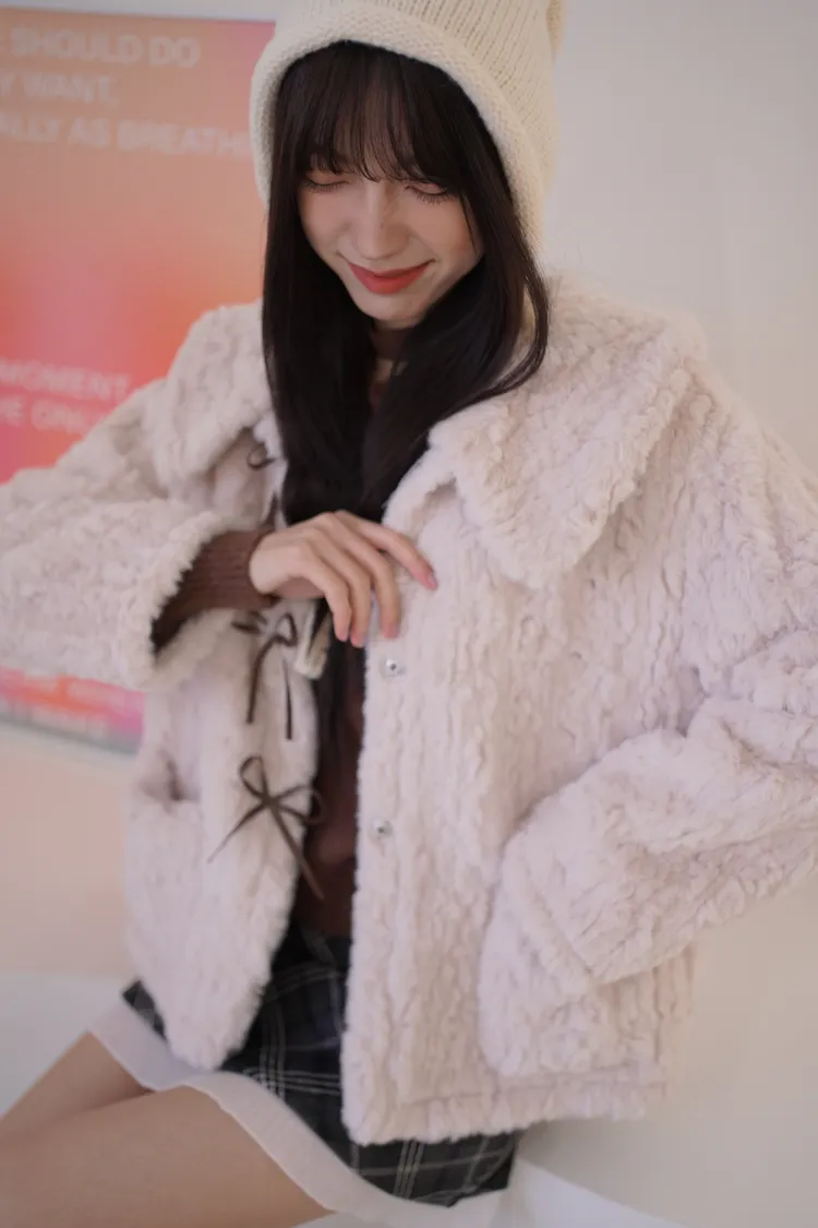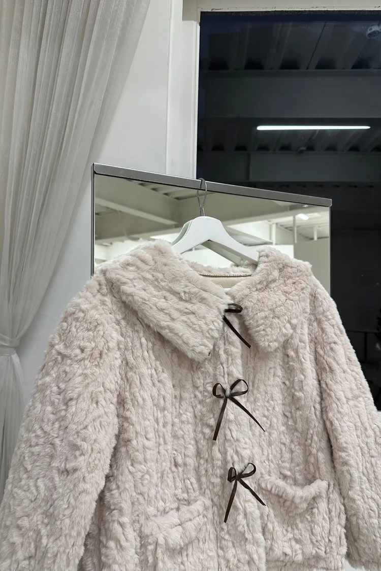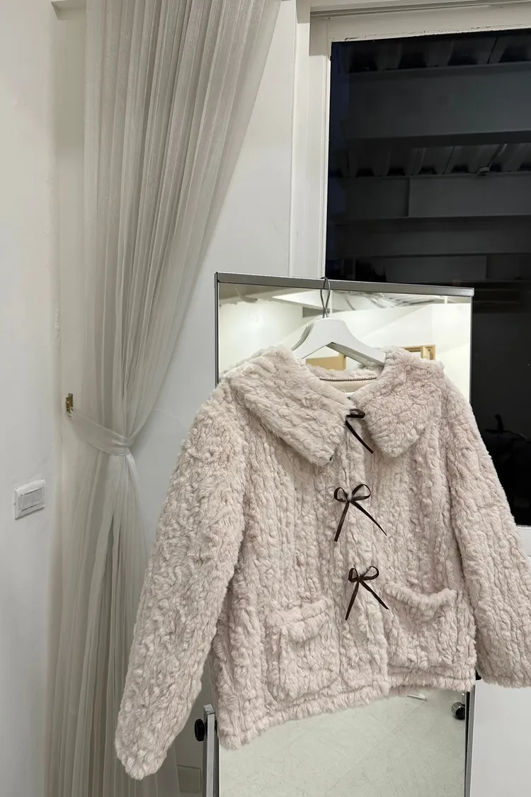 甜入你心!蝴蝶結毛毛外套