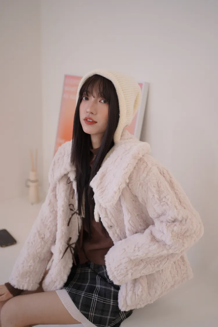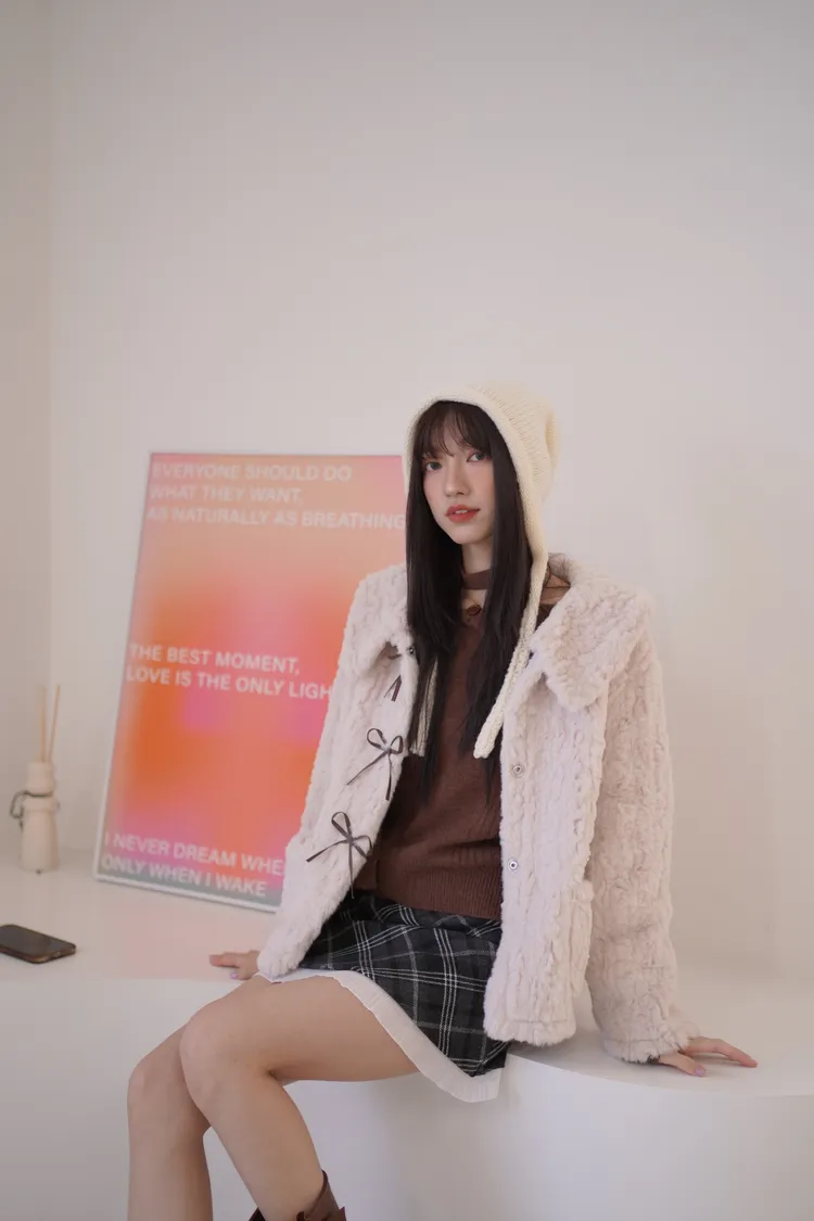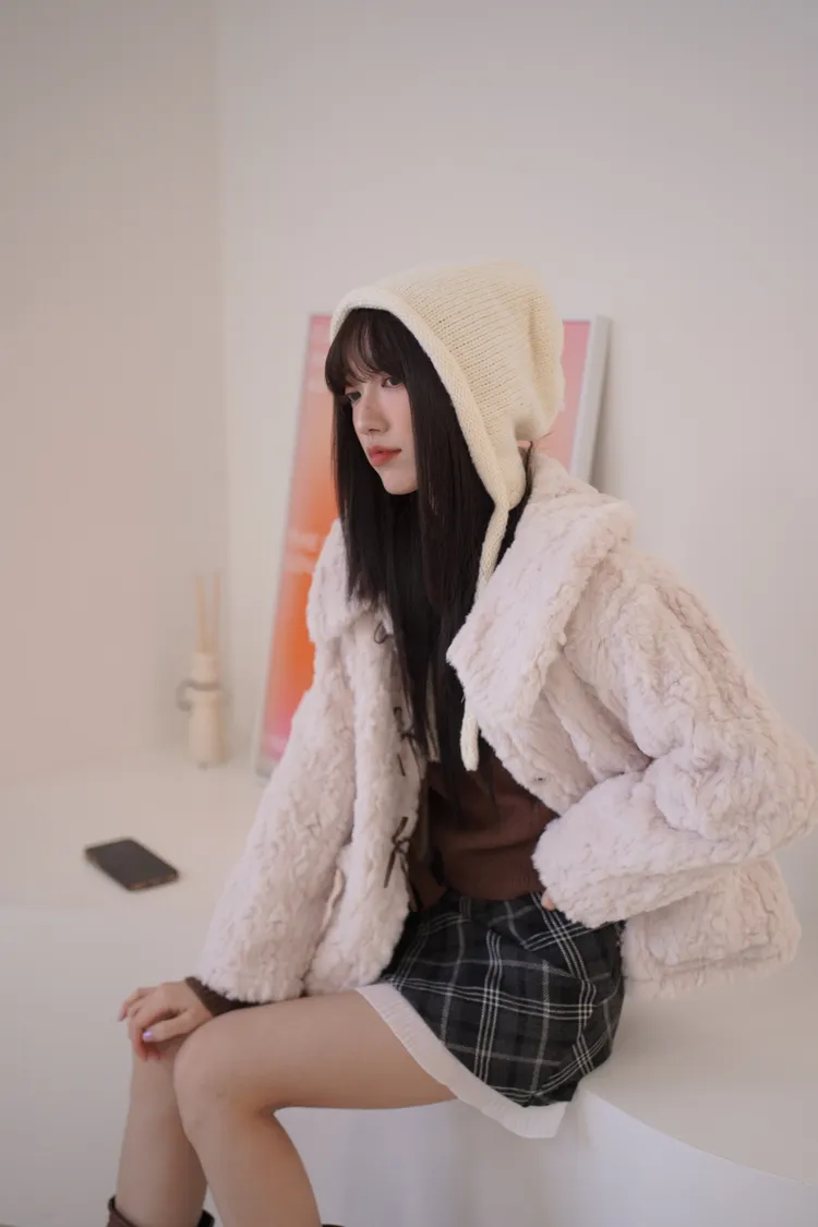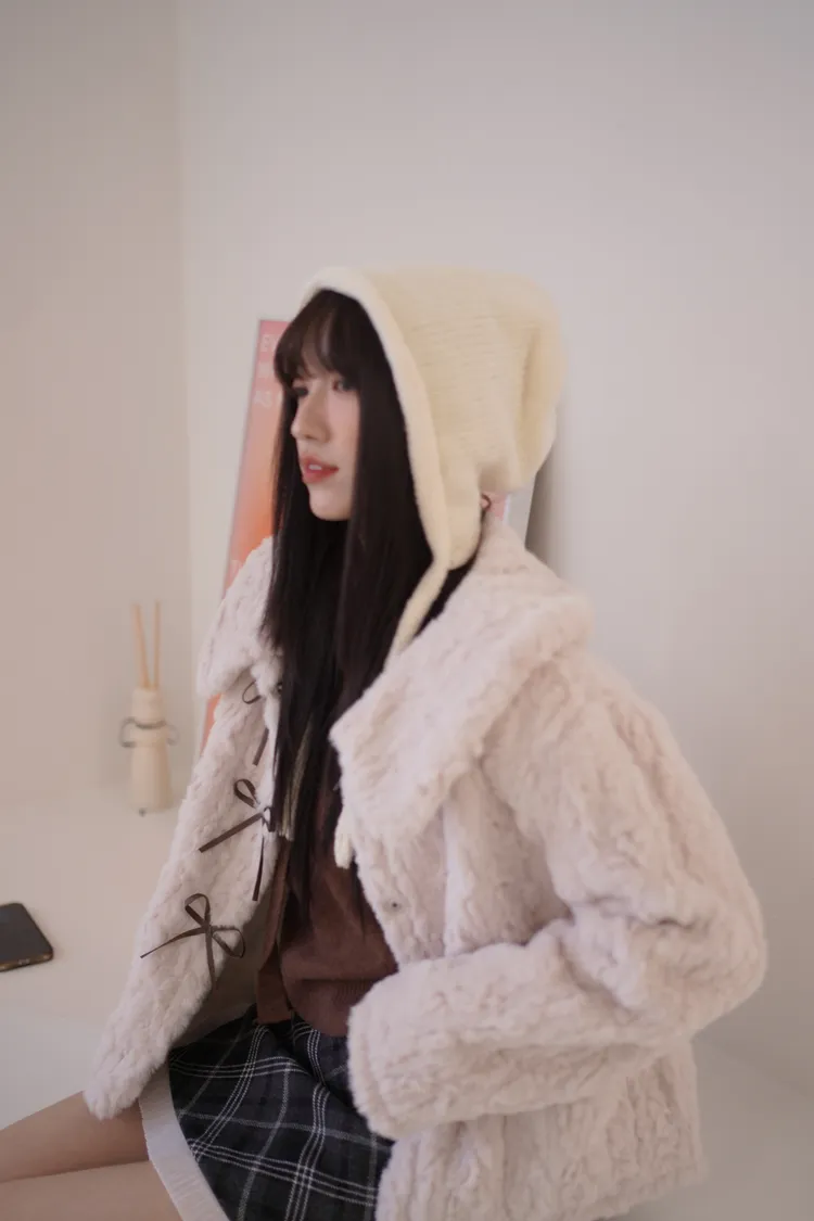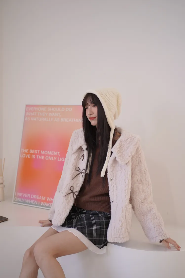 甜入你心!蝴蝶結毛毛外套
