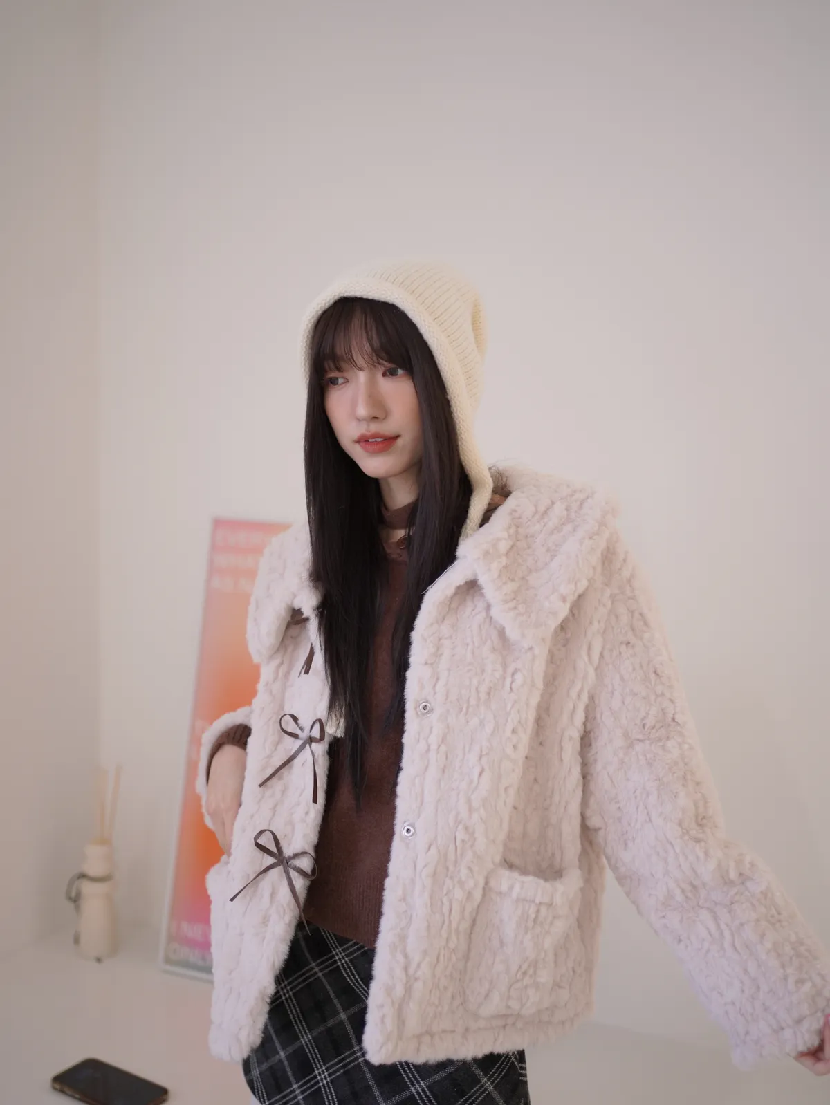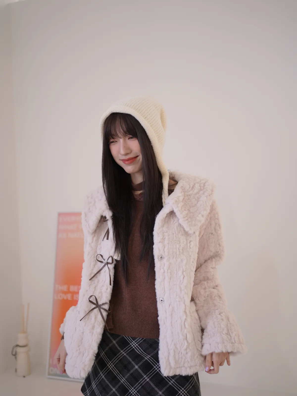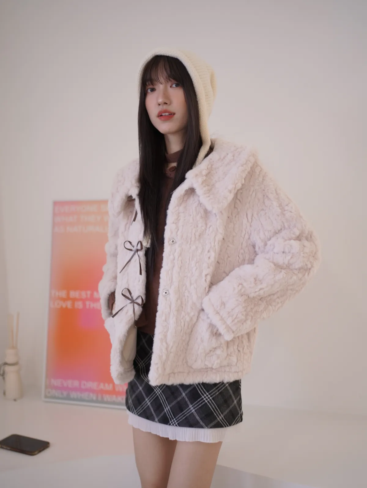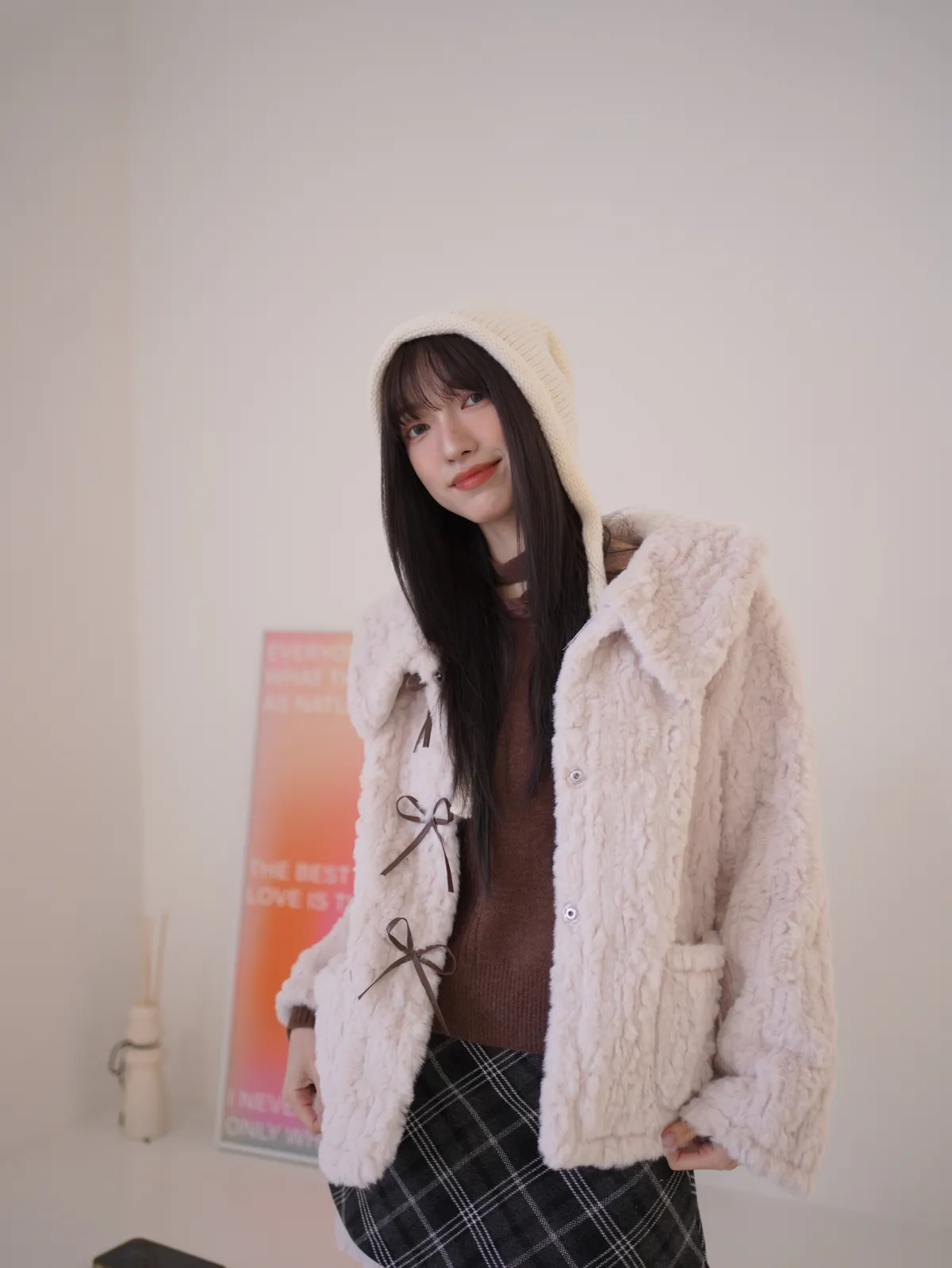 甜入你心!蝴蝶結毛毛外套