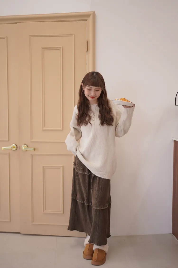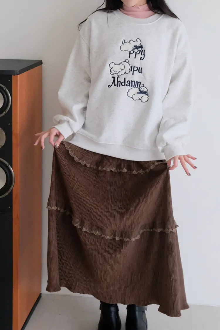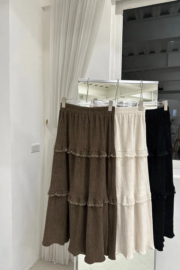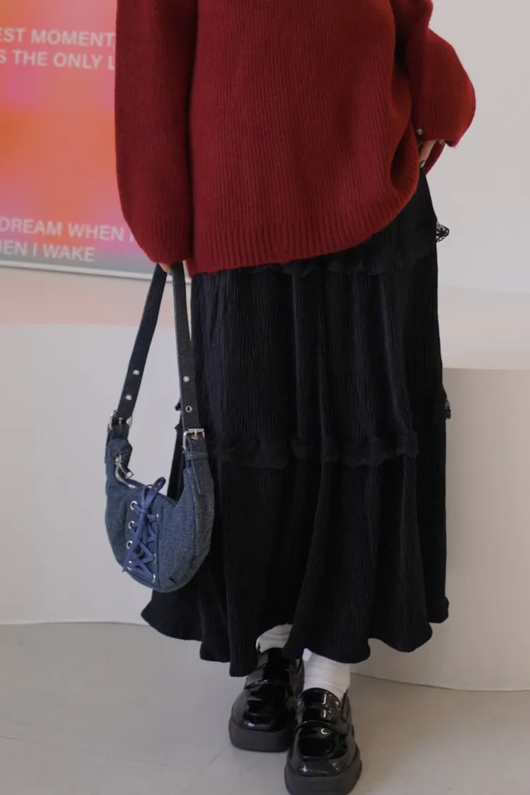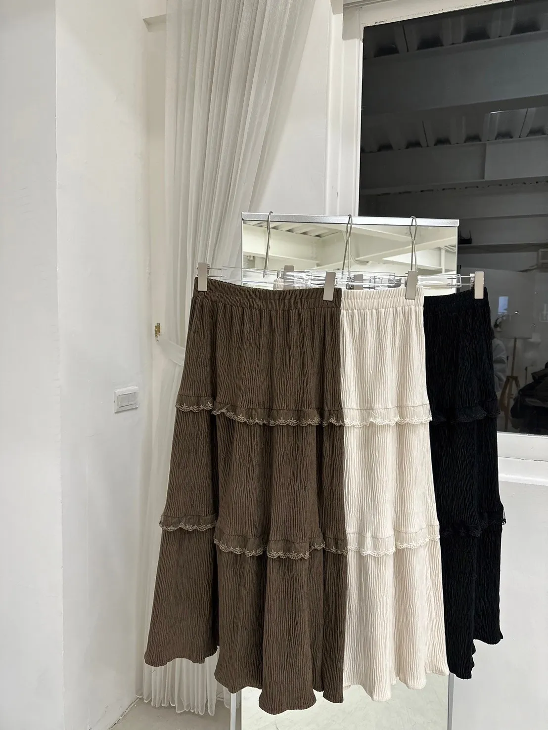 收獲漂亮 - 燈芯絨小花邊蛋糕長裙