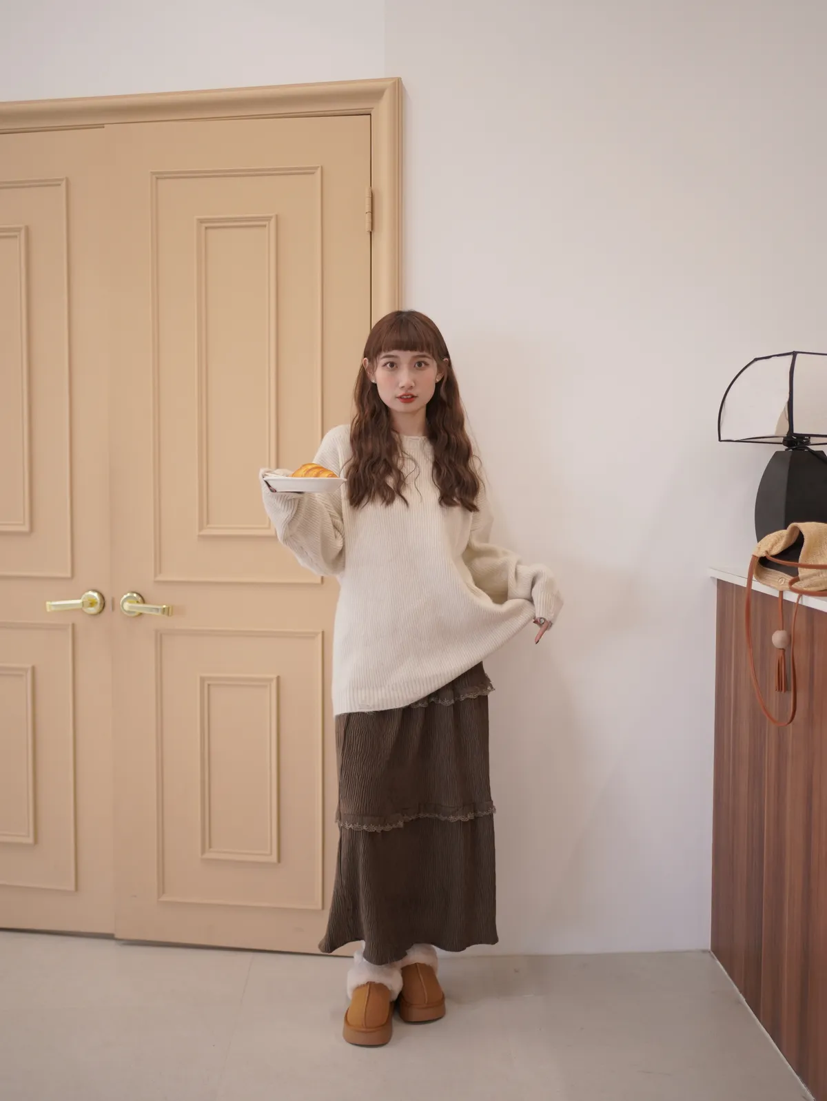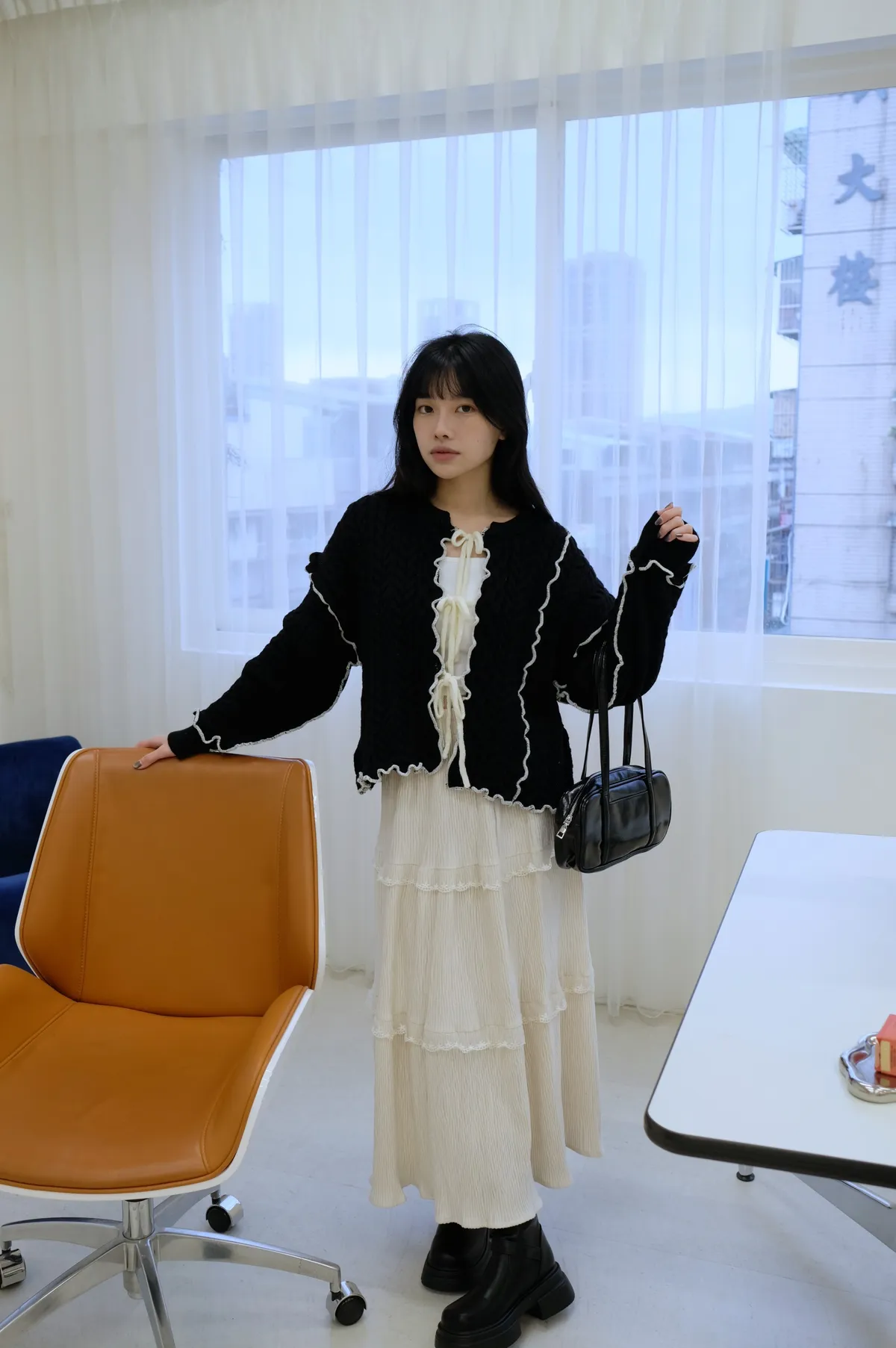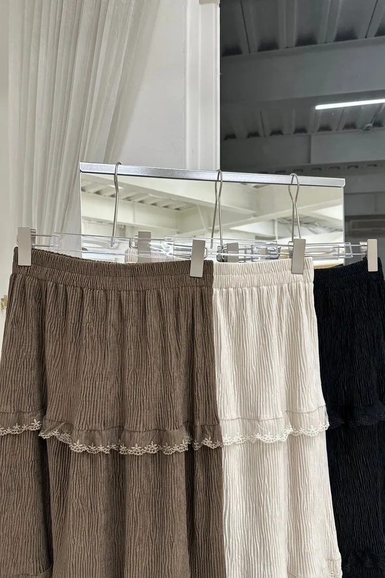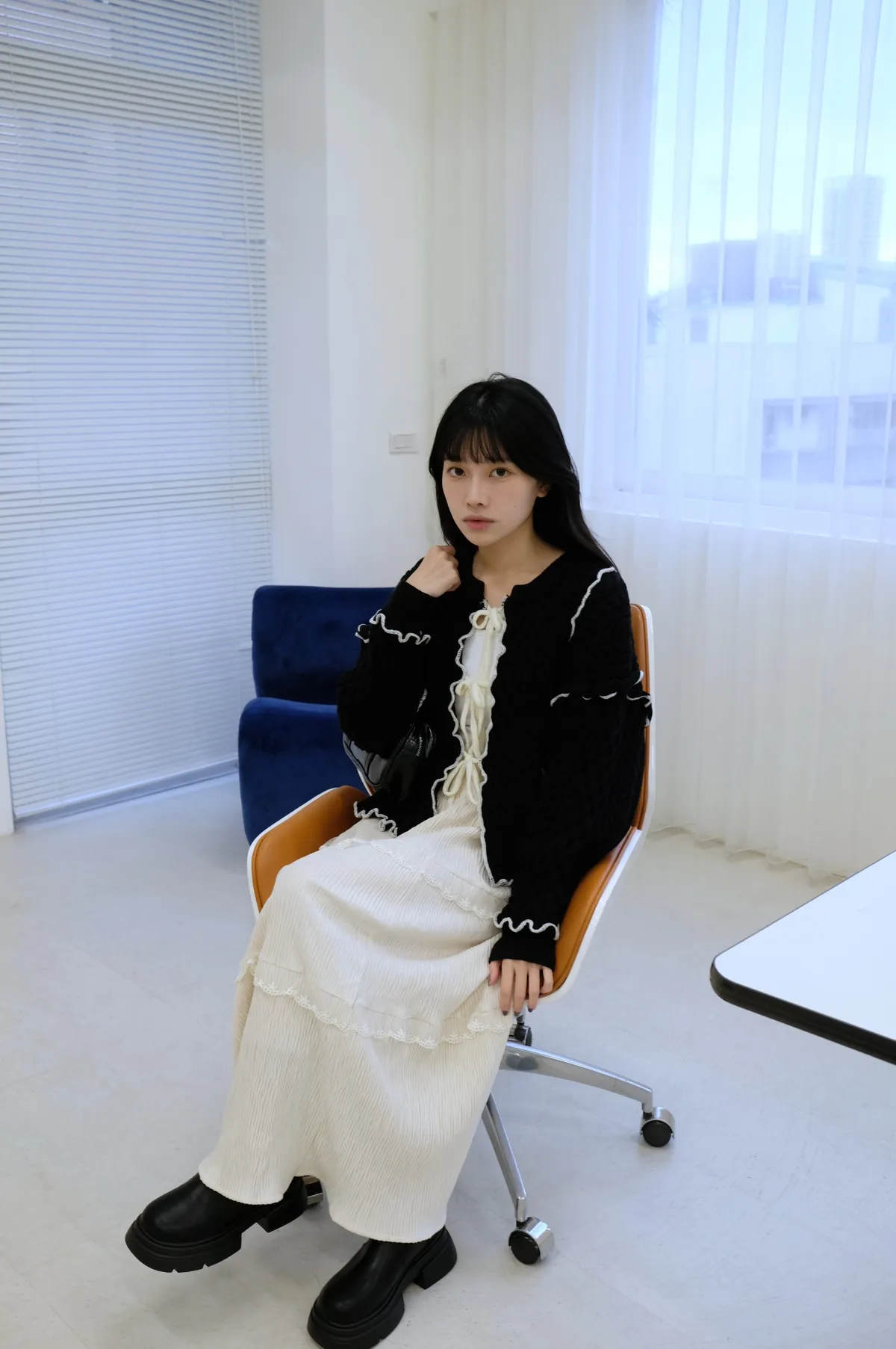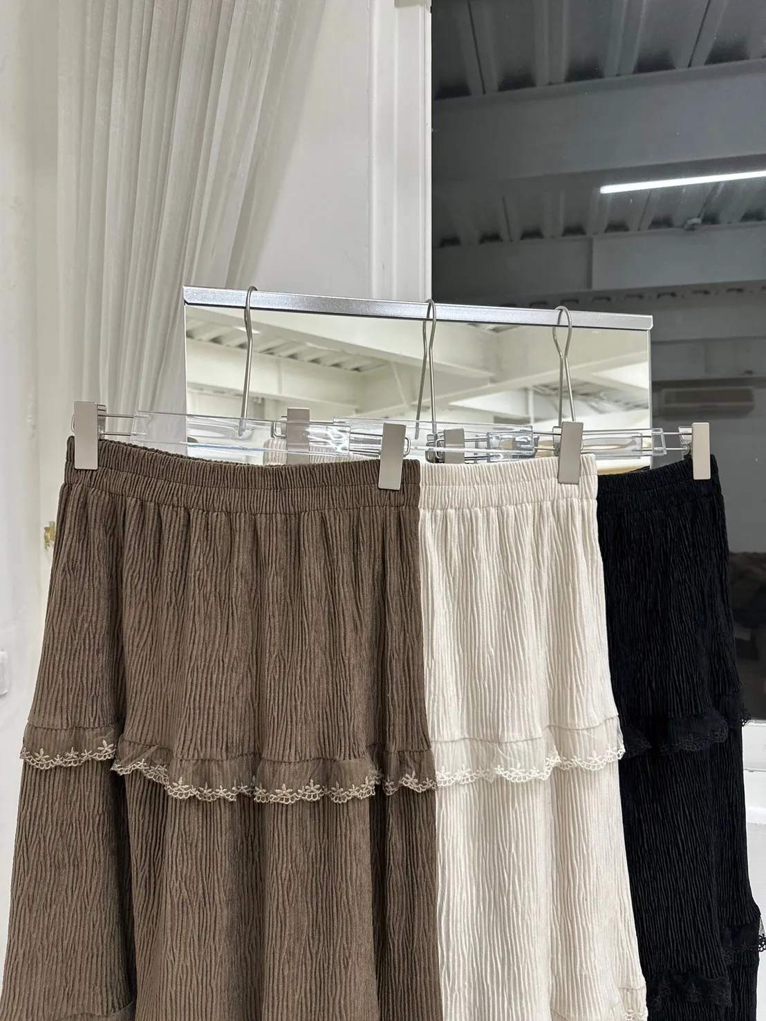 收獲漂亮 - 燈芯絨小花邊蛋糕長裙