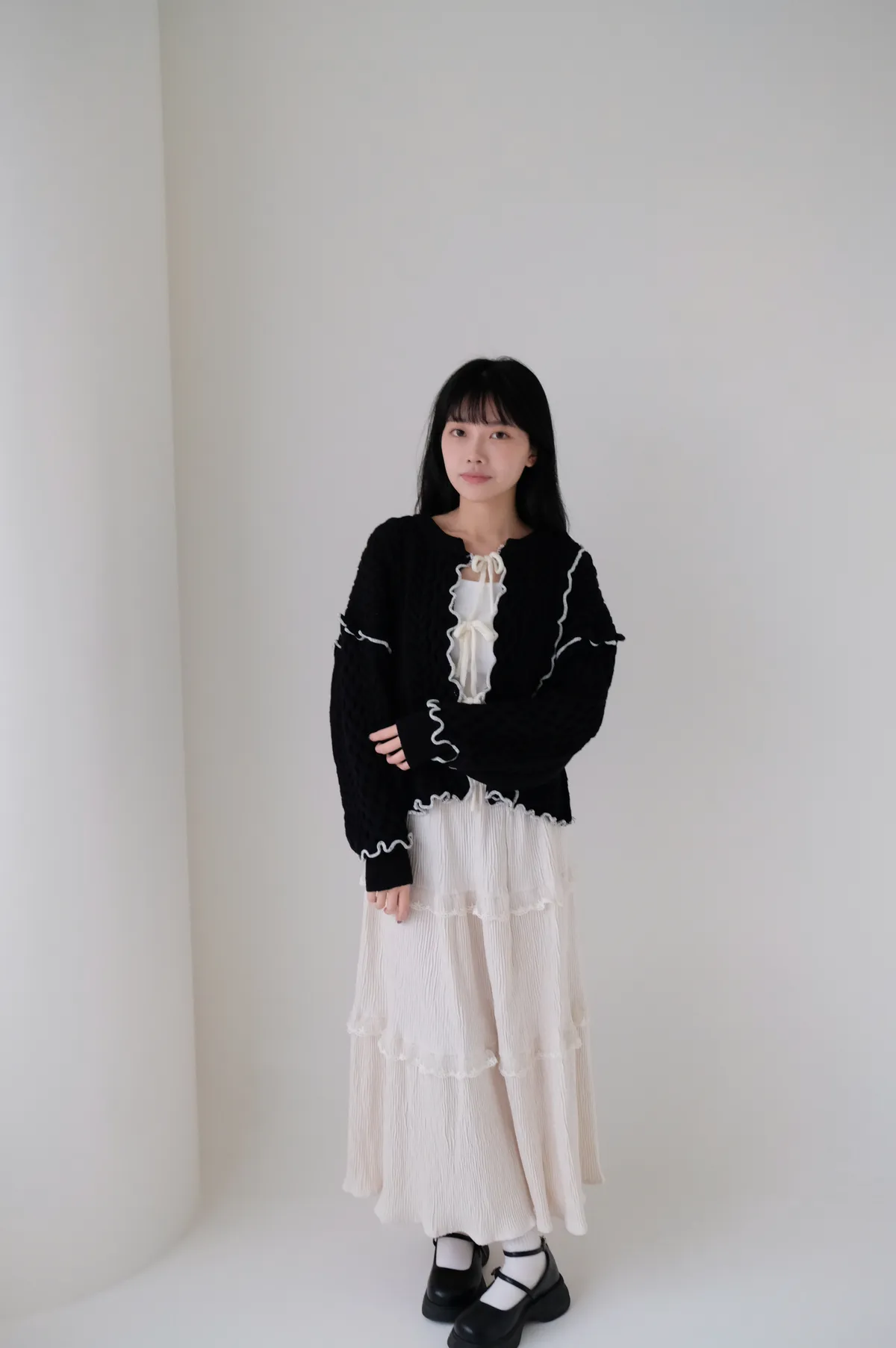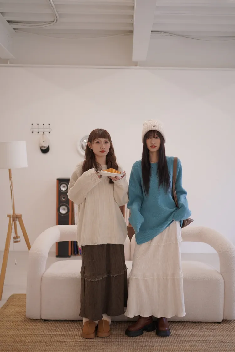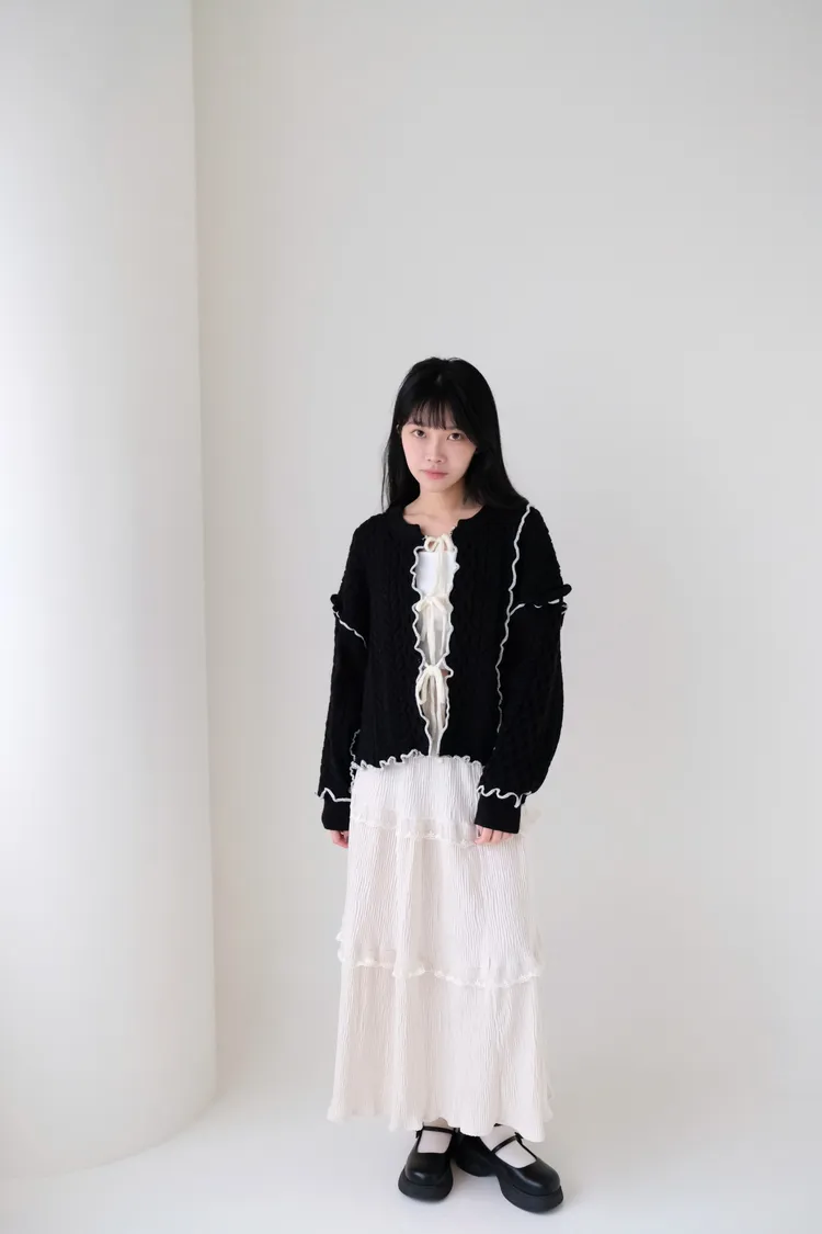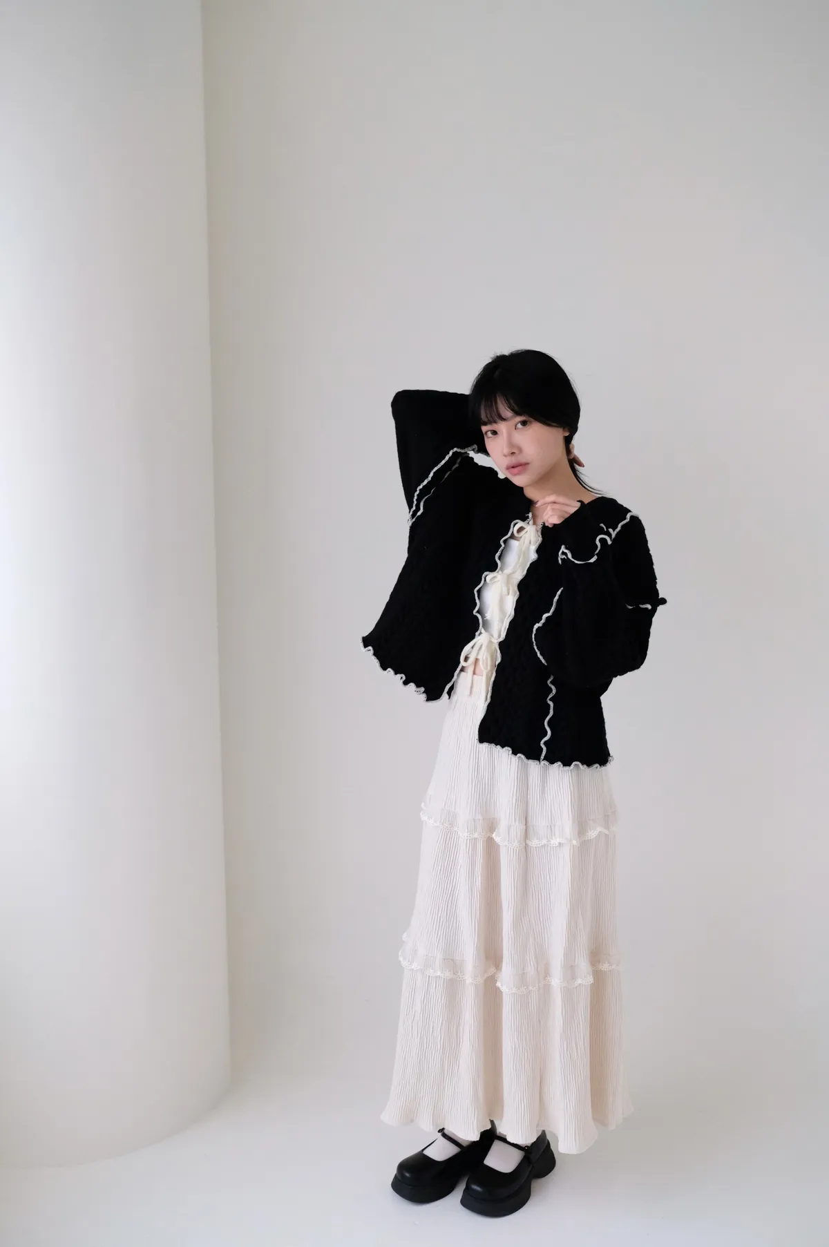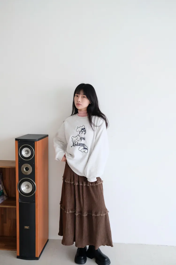 收獲漂亮 - 燈芯絨小花邊蛋糕長裙