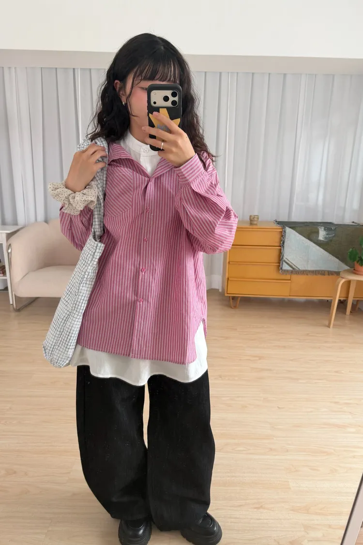 盛夏光譜直條紋長袖襯衫