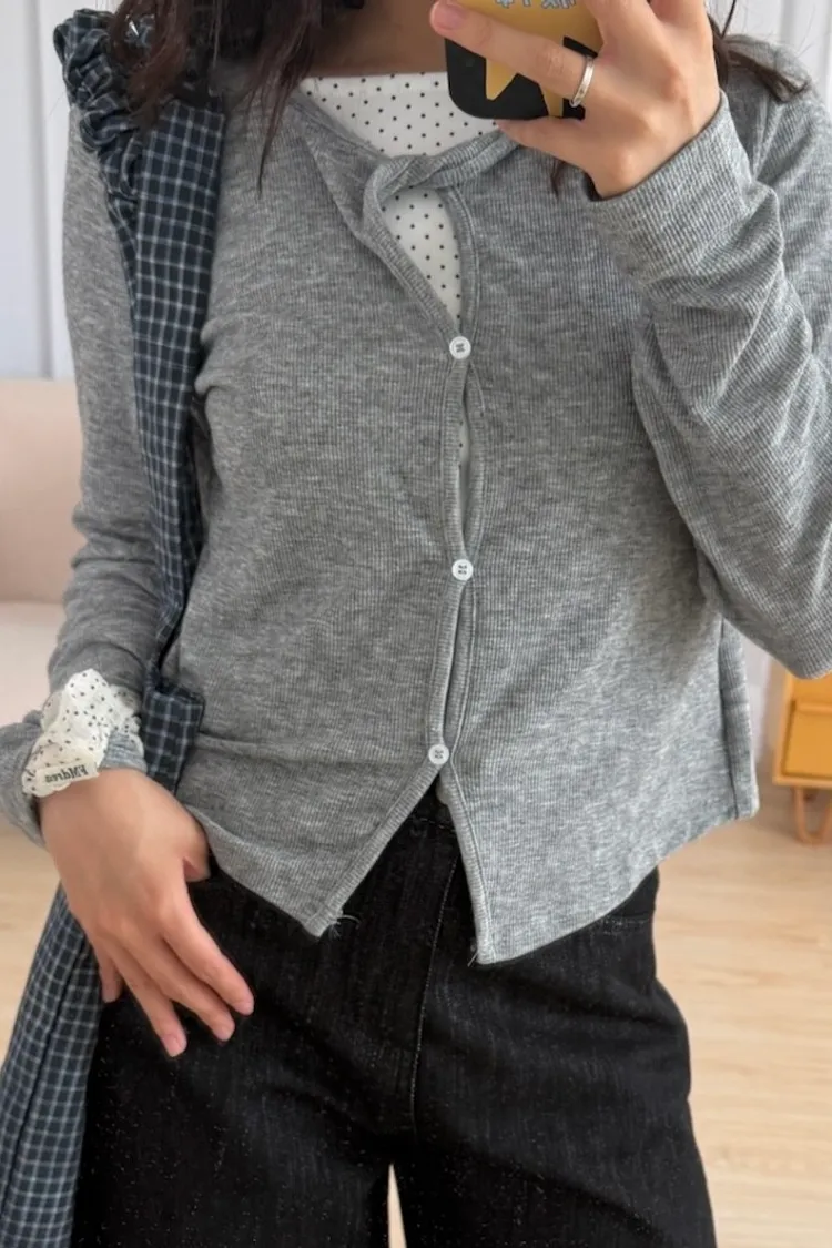 微甜心動假兩件扭結上衣