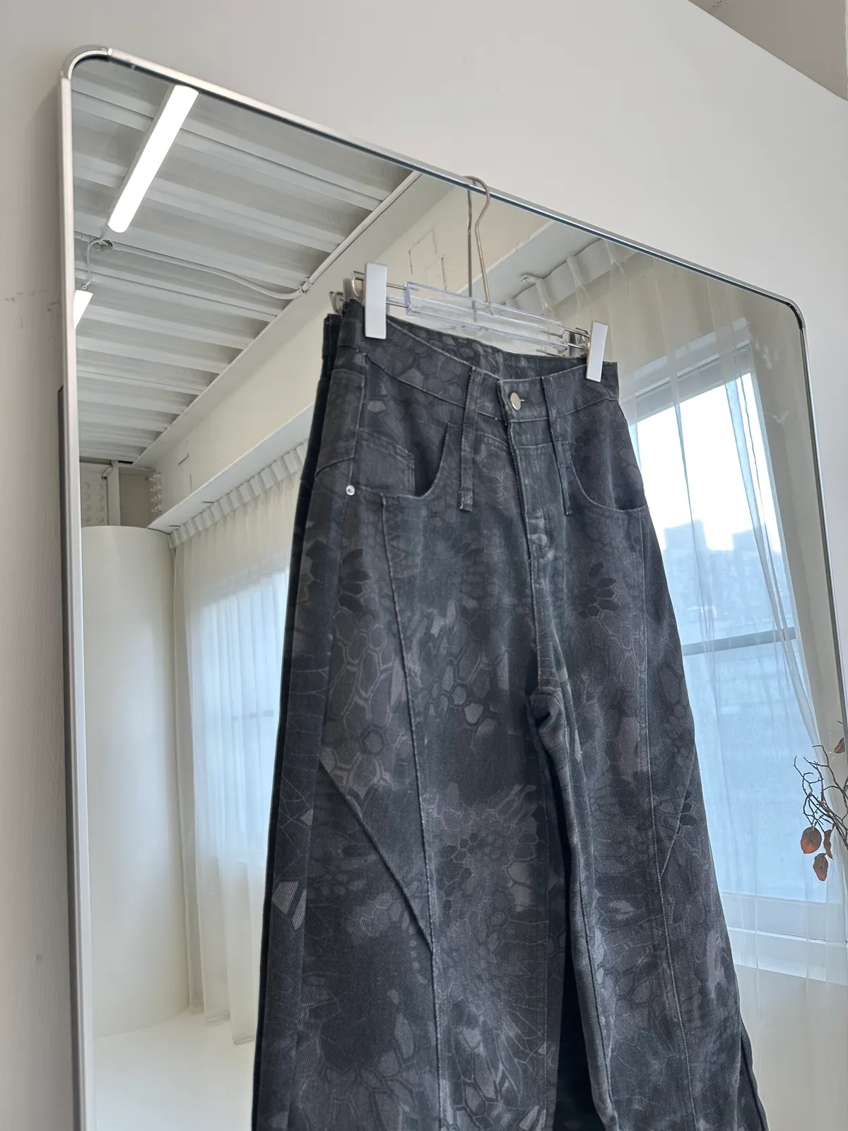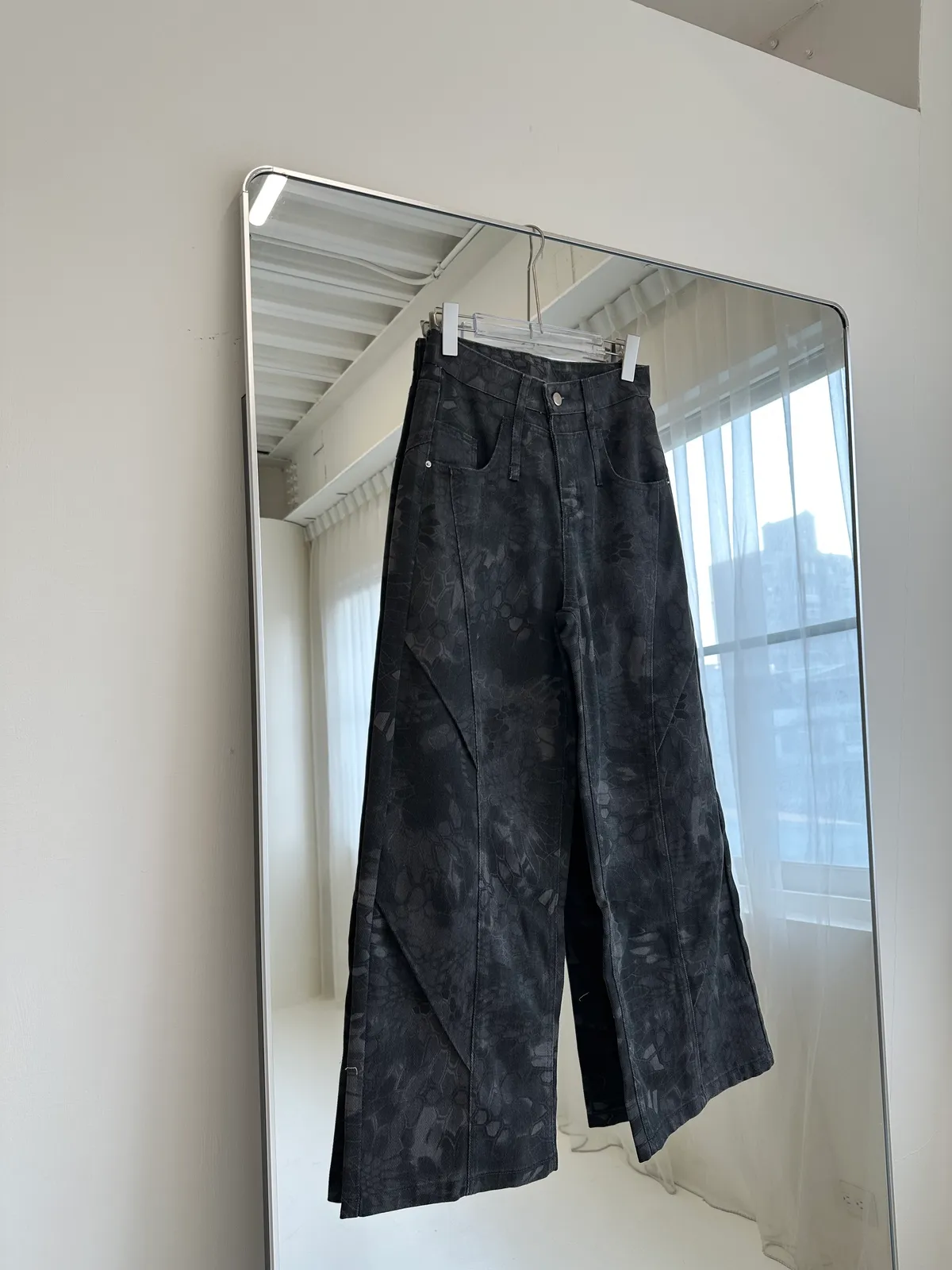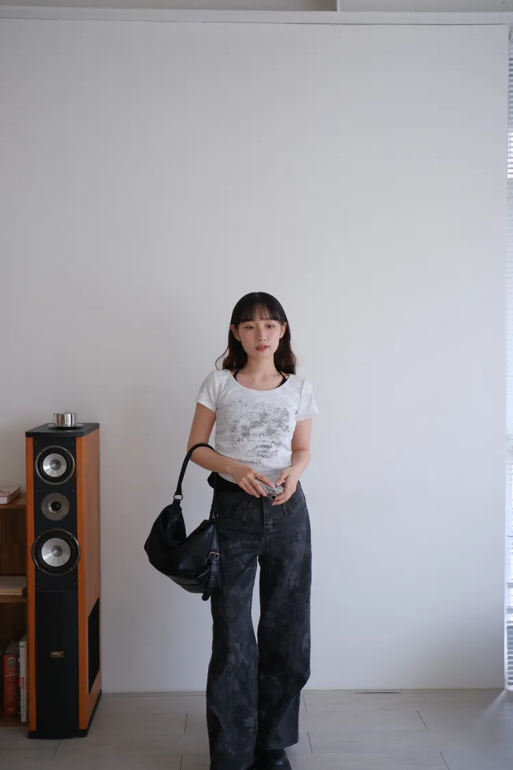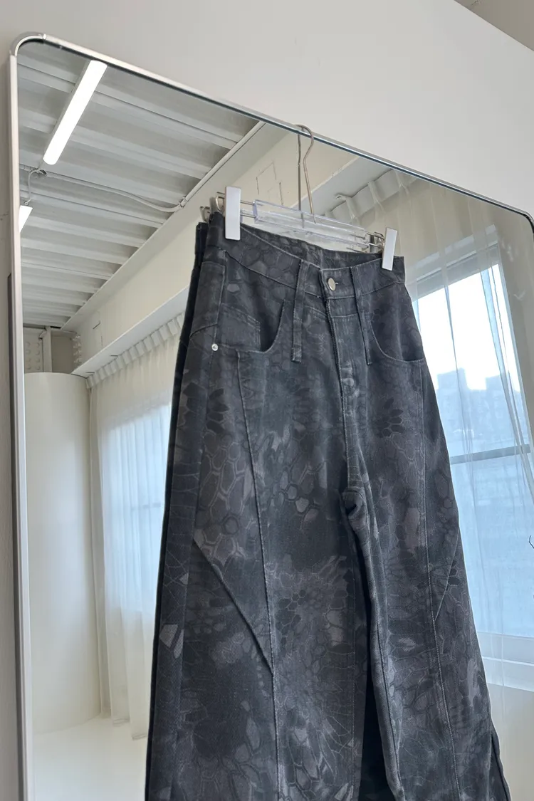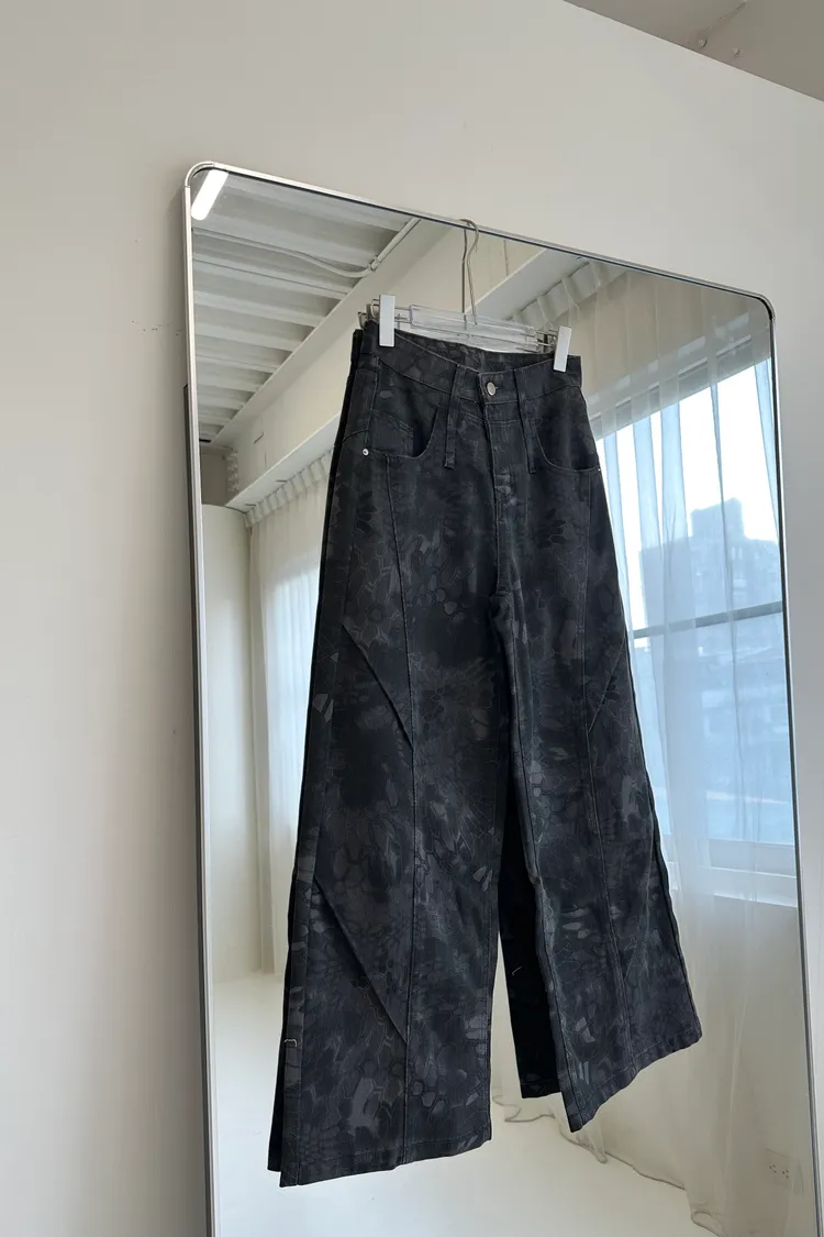 墨染之刃印花暗紋彎刀褲